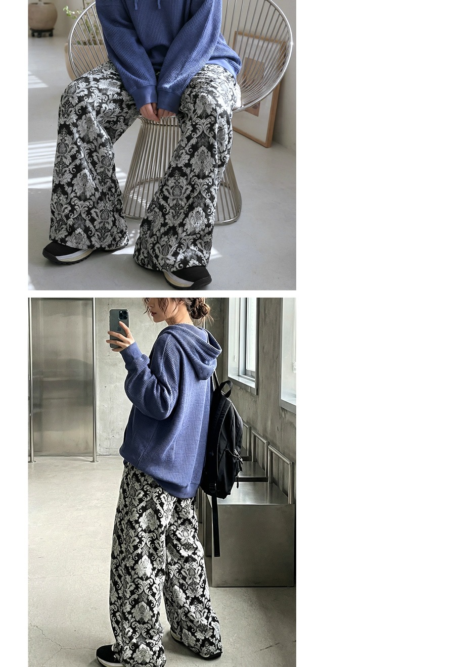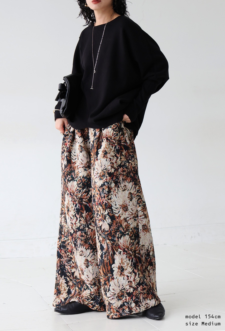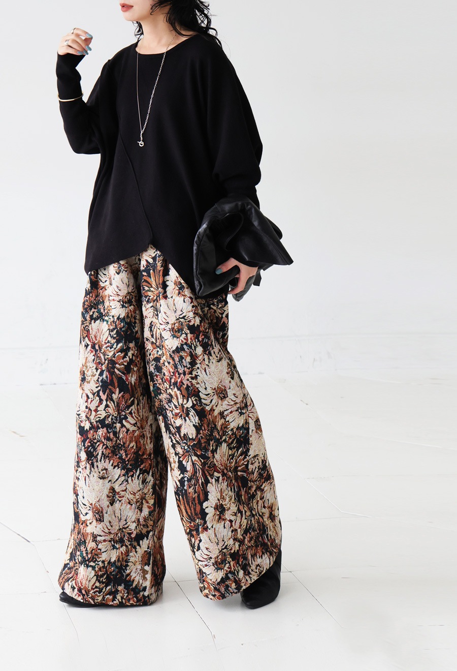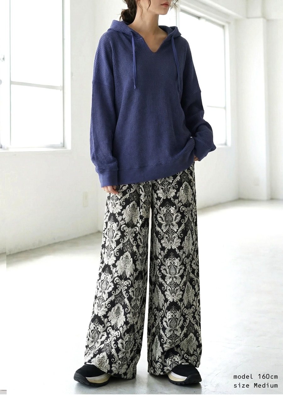 大柄 ジャガード ワイドパンツ レディース ロング 送料無料・再入荷 メール便不可