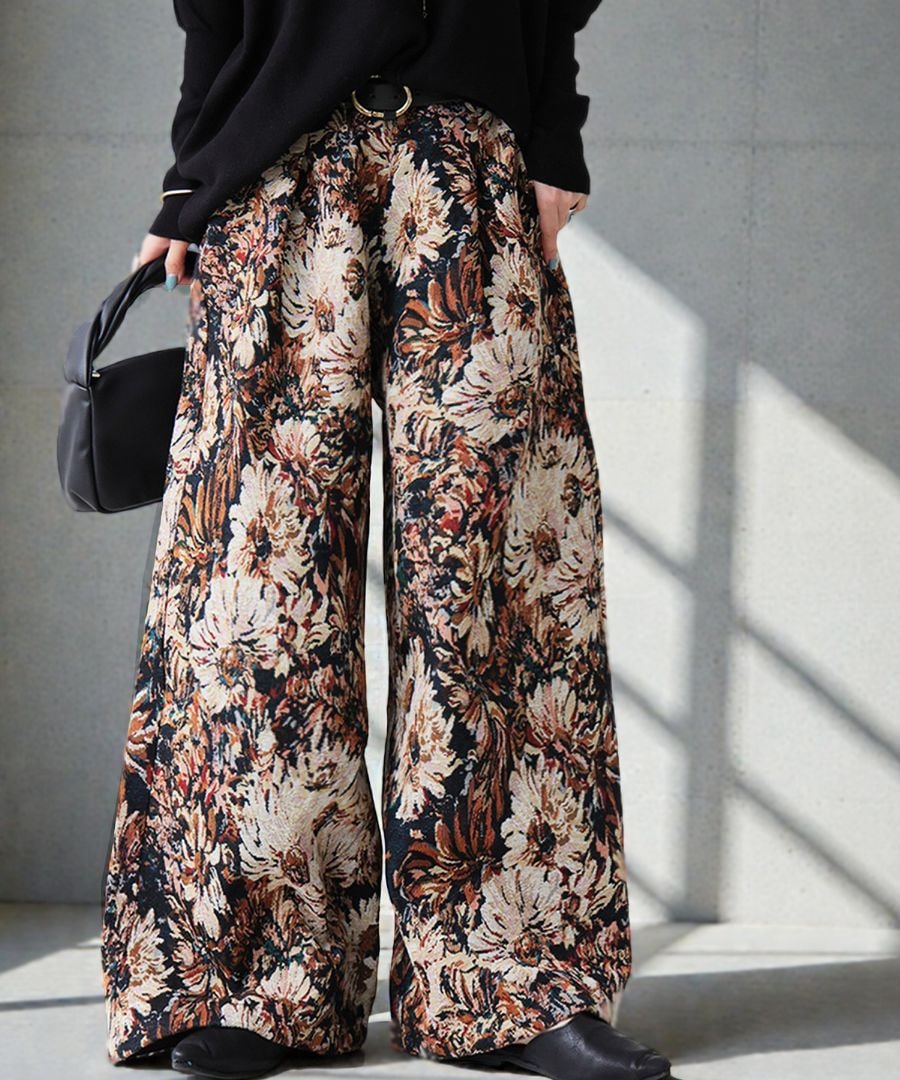 存在感ある花柄やダマスク柄などの柄が魅力のロングパンツは、穿くだけでコーデを華やかに格上げしてくれる一着です。