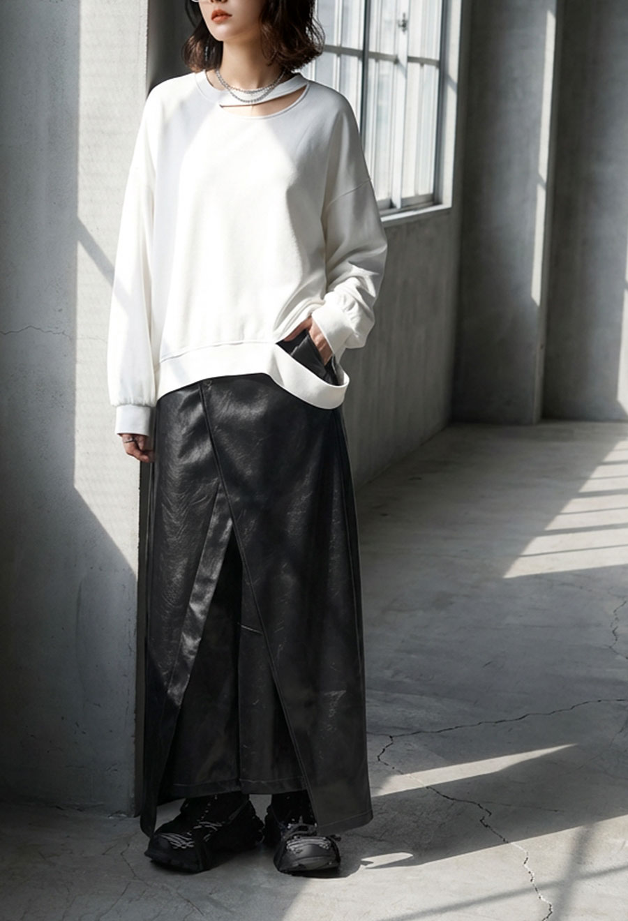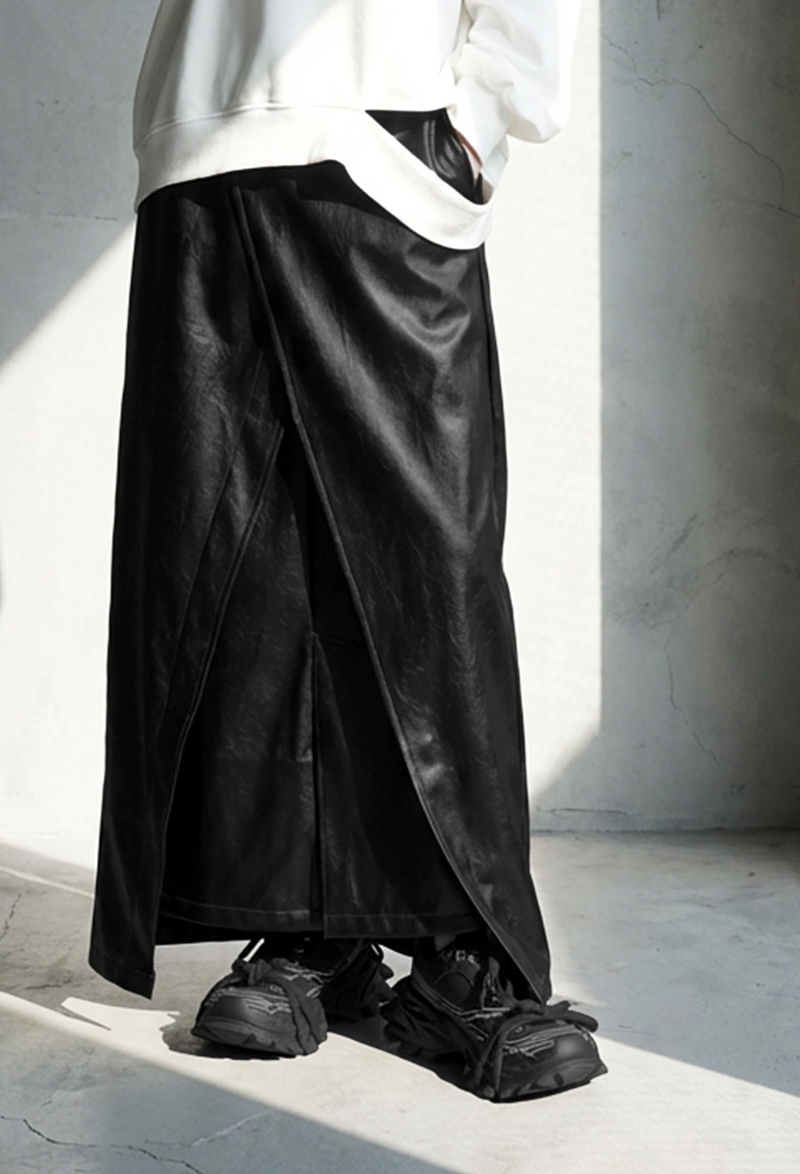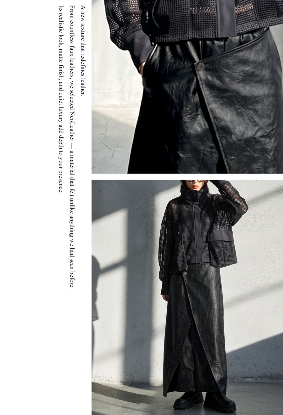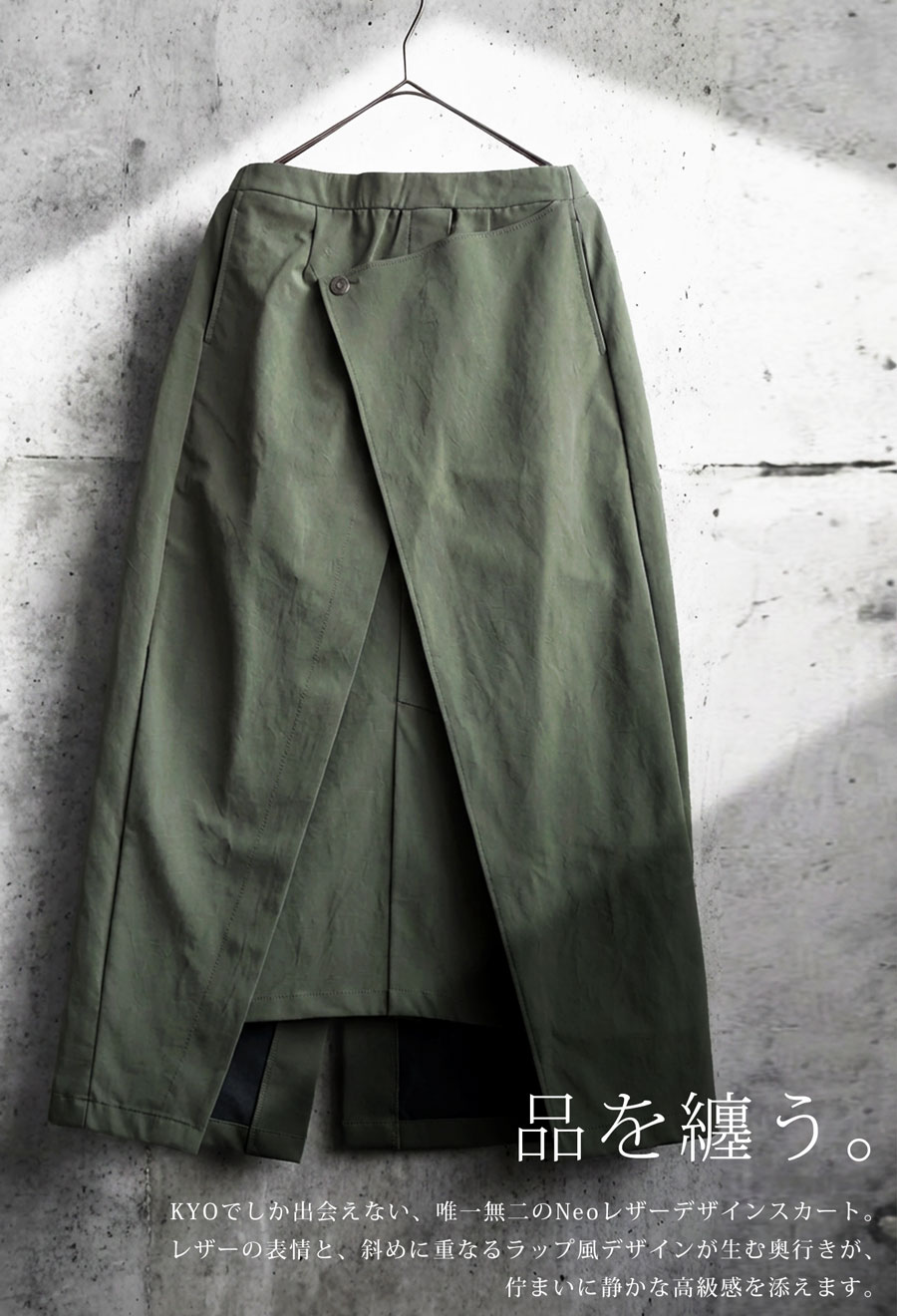 上質感と機能美を兼ね備えた、唯一無二のネオレザーデザインスカートです。