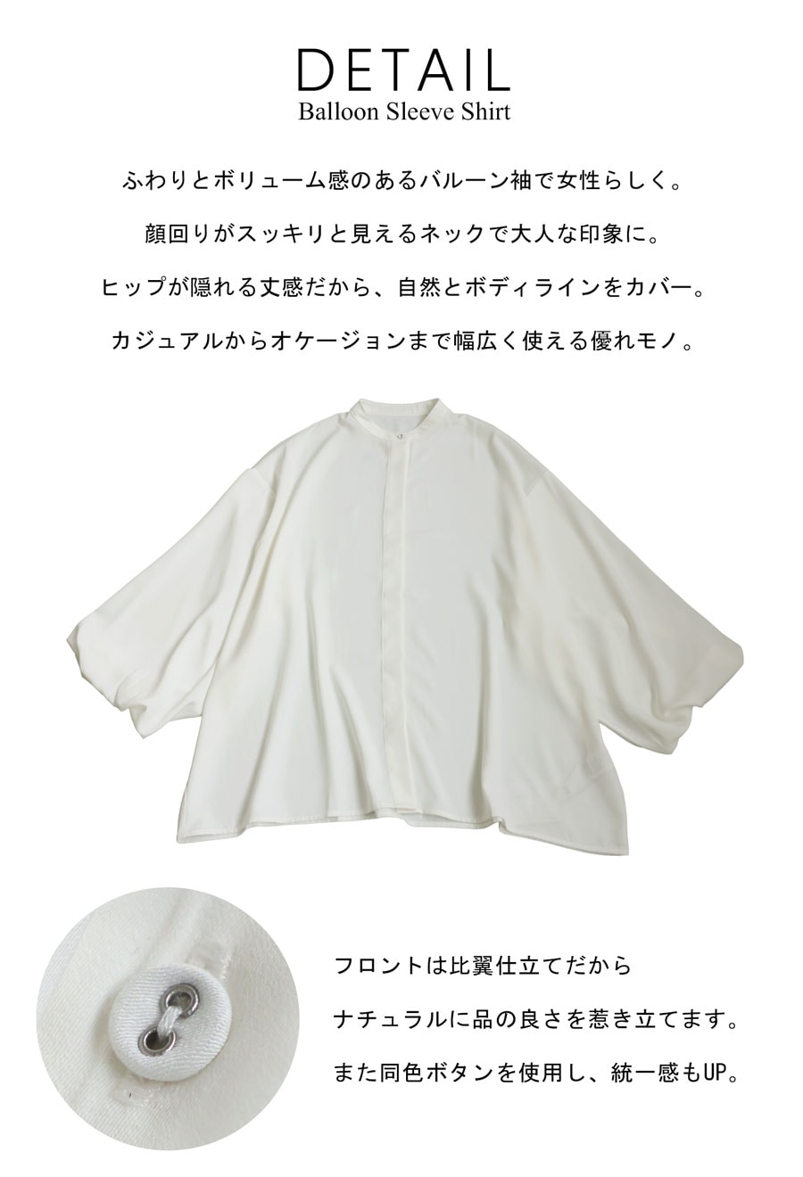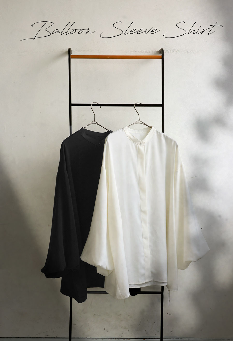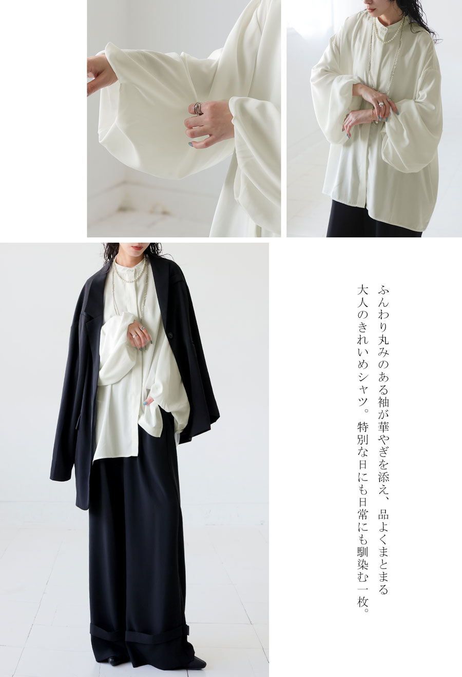 ゆったりとした身幅とふんわり広がるバルーンスリーブが印象的な長袖シャツです。