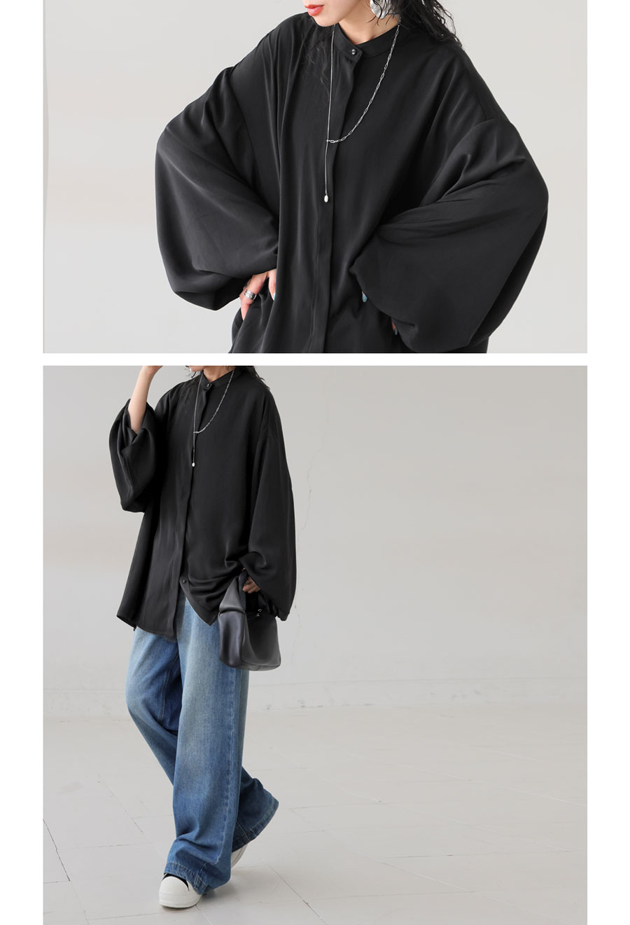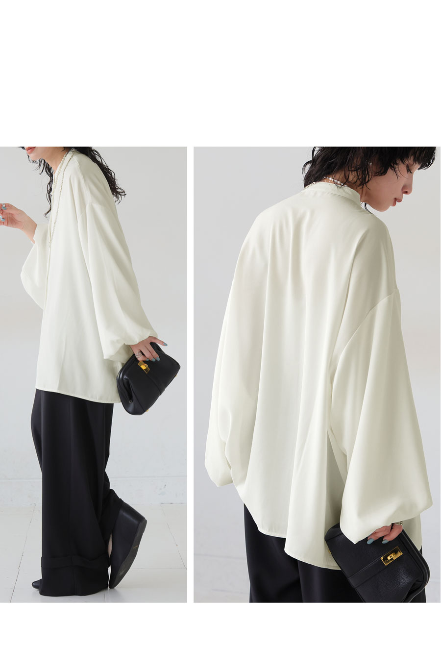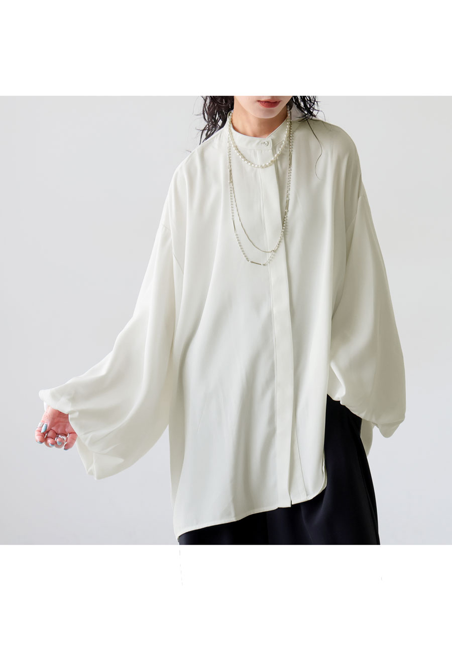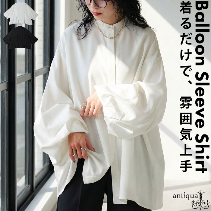 ゆったりとした身幅とふんわり広がるバルーンスリーブが印象的な長袖シャツです。