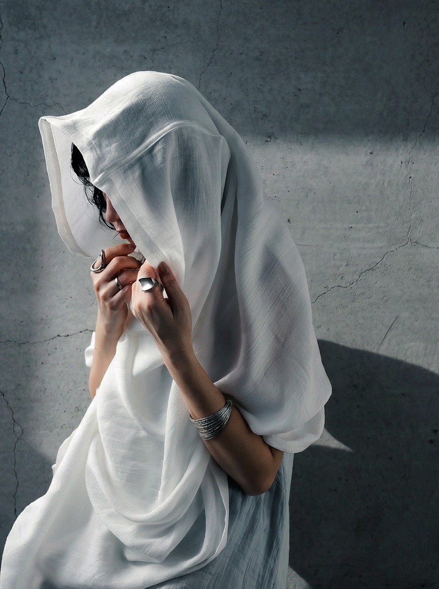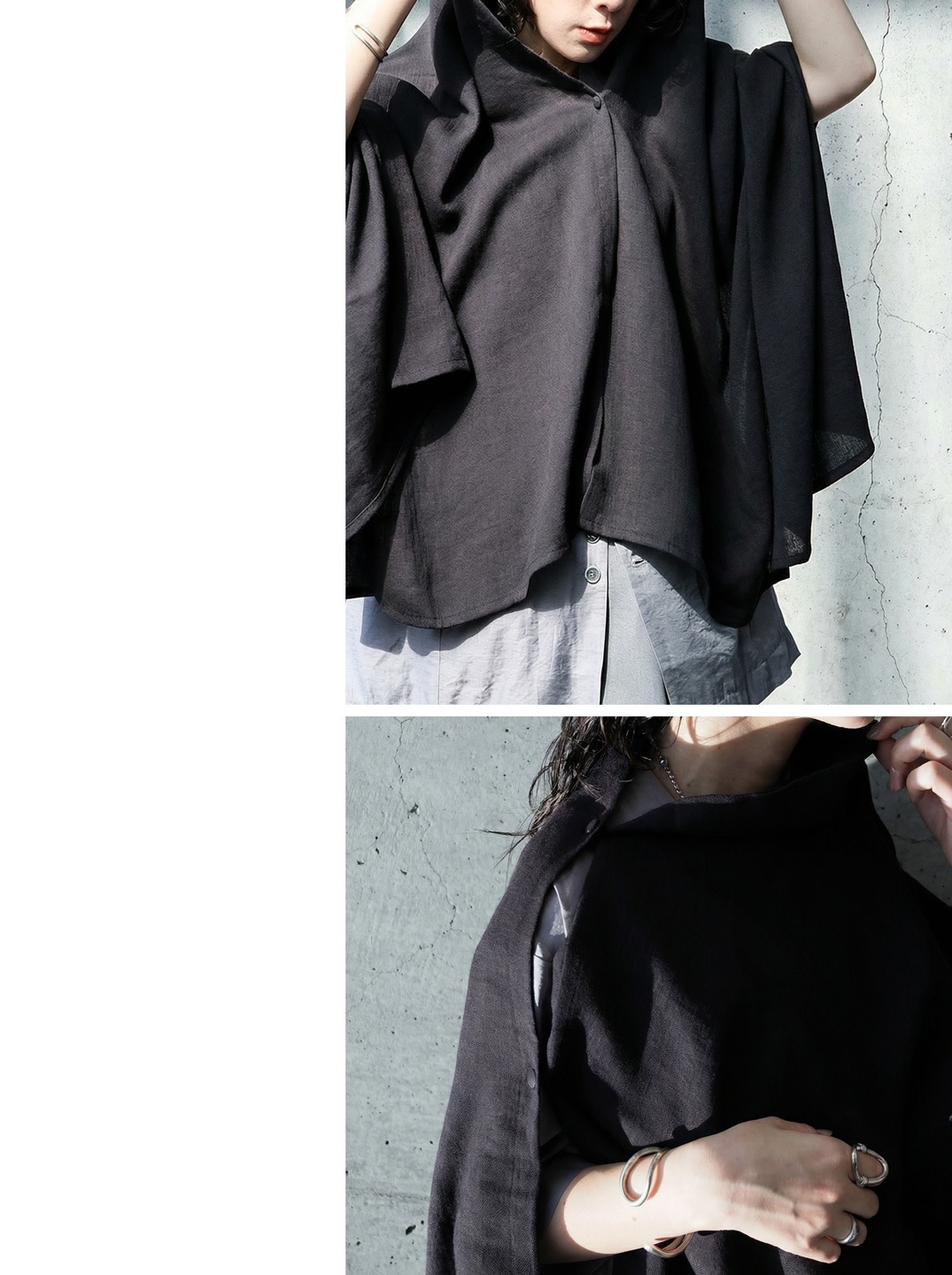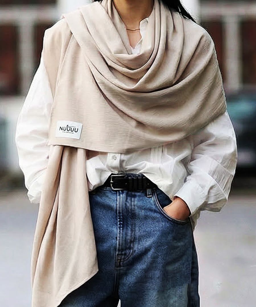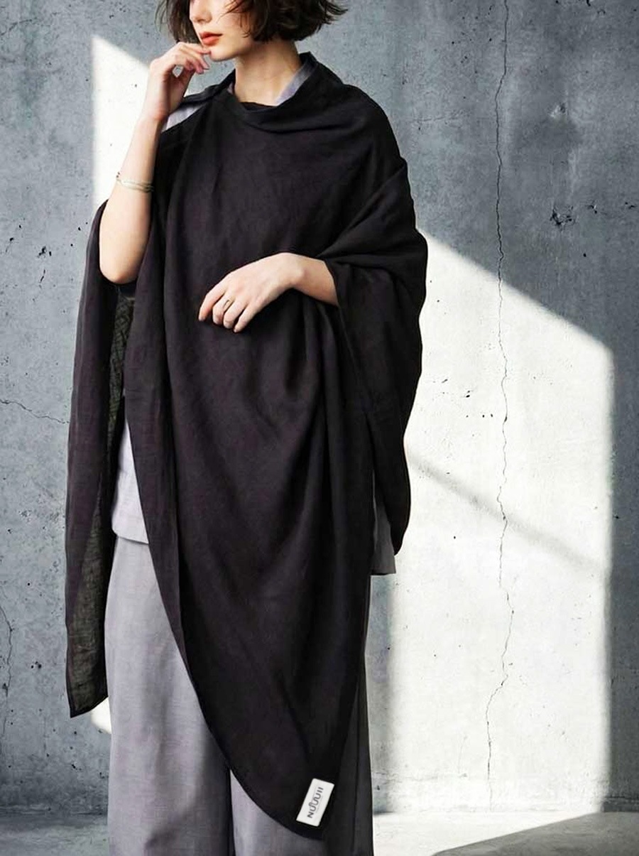 日差しから守りながら装いに個性を添える、フード付きのUVカットストールです。