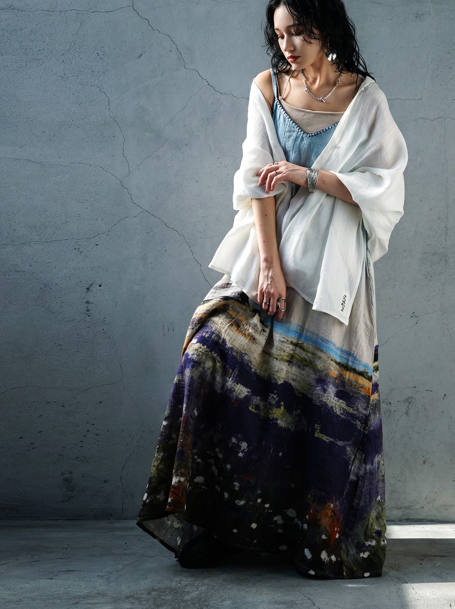 さらりとした軽やかな素材感で、季節の変わり目にも使いやすい一枚です。