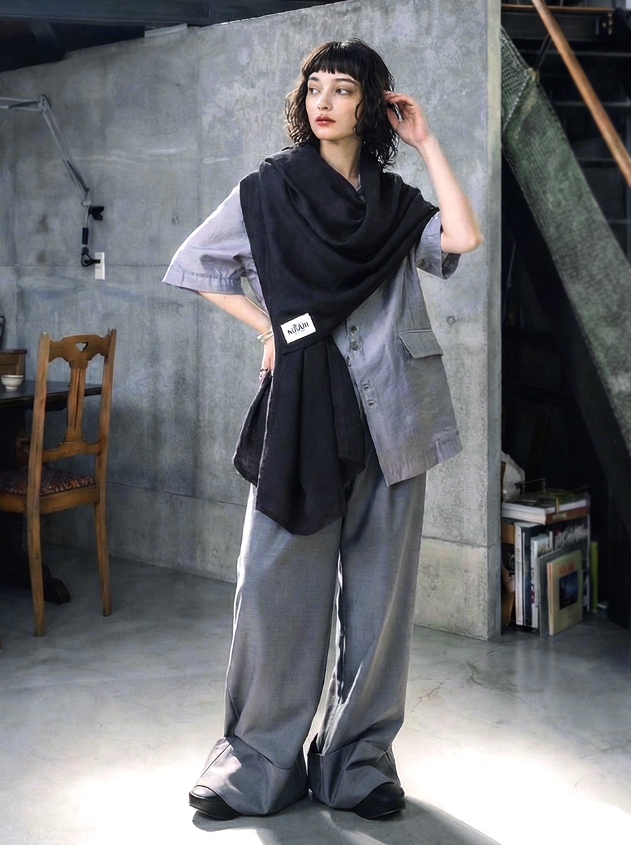 ブランドロゴのタグがさりげないアクセントとなり、巻いたときに覗くデザイン性も魅力です。