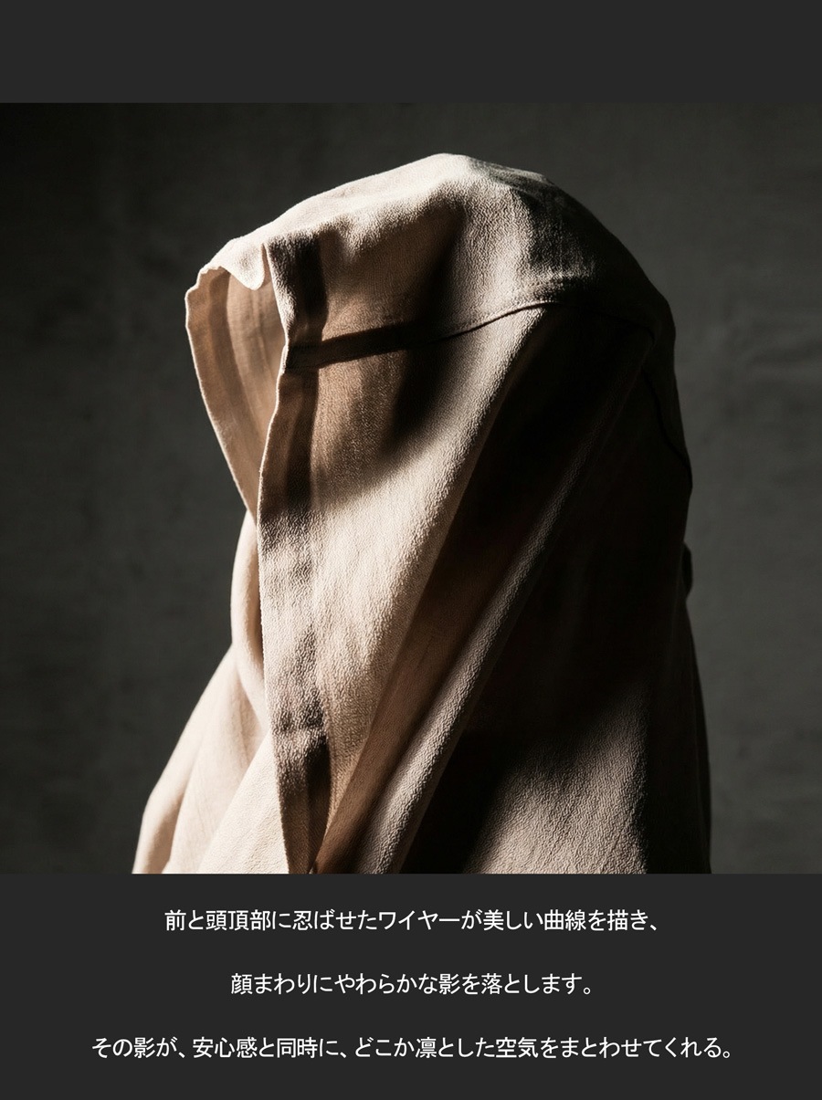 前部分にワイヤーを施した形状で、立体的なシルエットをキープしつつ顔まわりをすっきり見せます。