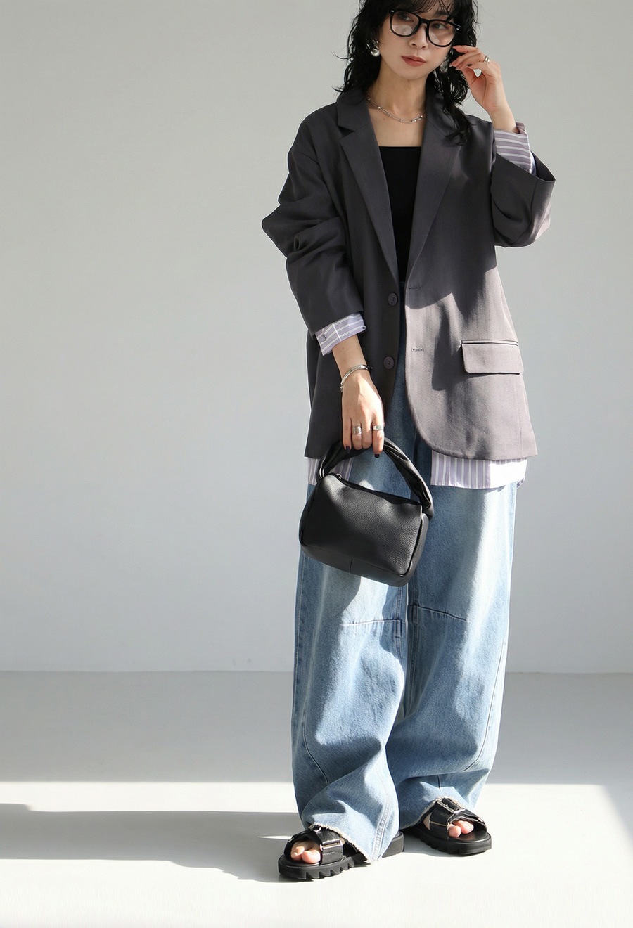 オーバーサイズでゆったりと着られ、体型を自然にカバーしながら大人カジュアルなスタイルが完成。