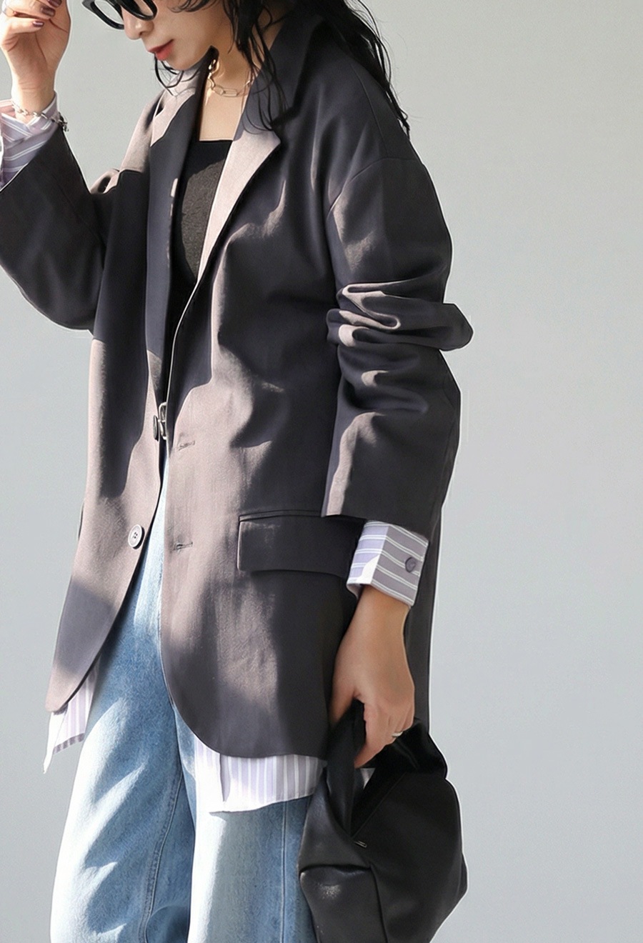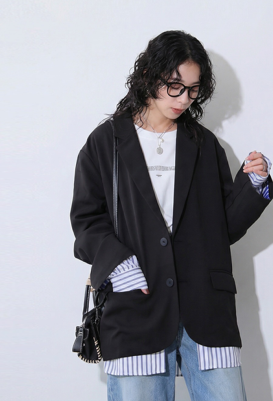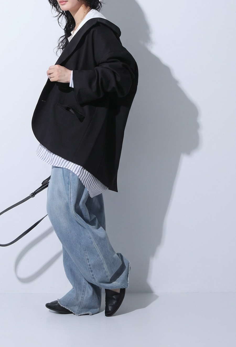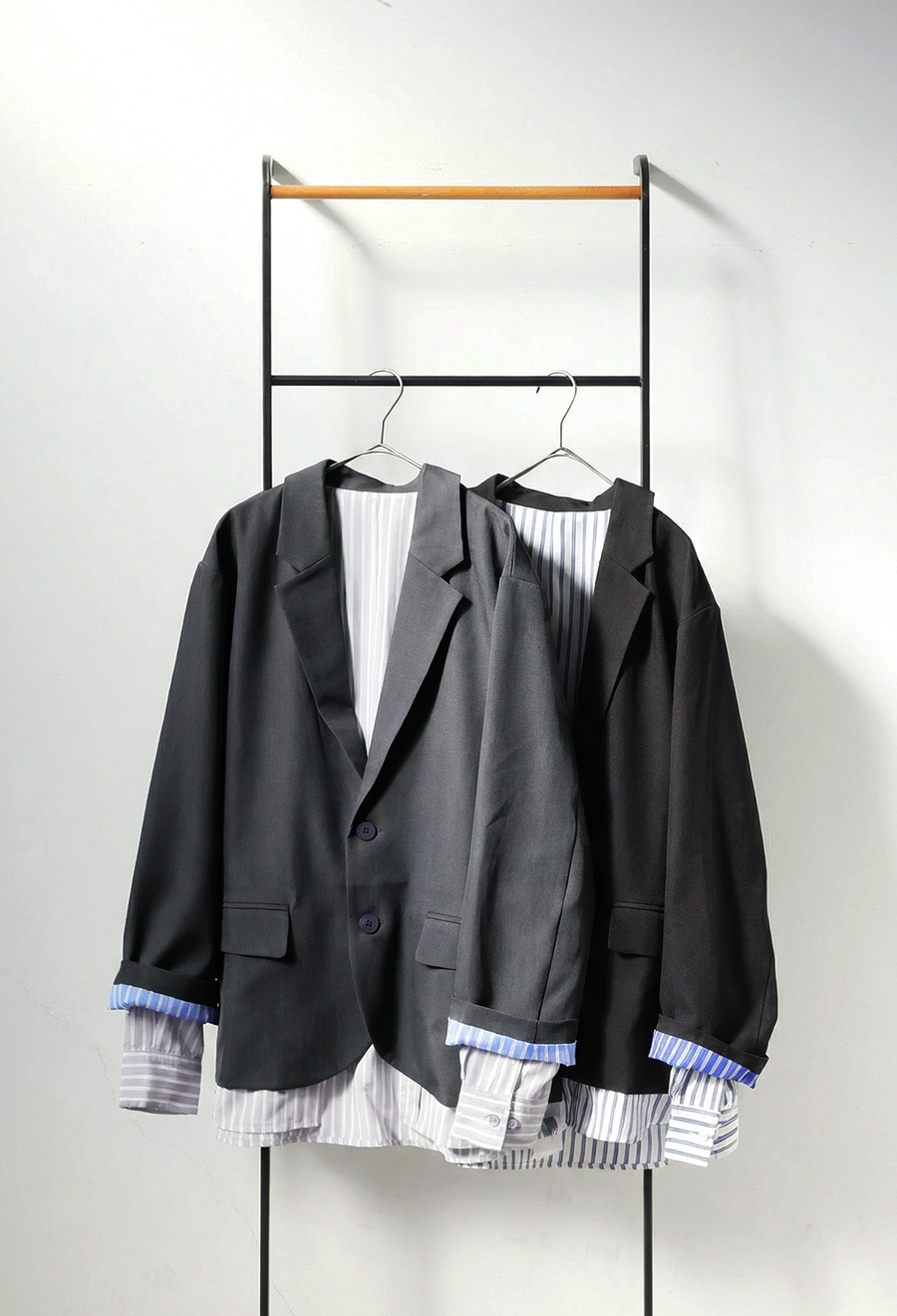 きちんと感と遊び心を両立した、テーラードカラーのレイヤード風ジャケットです。