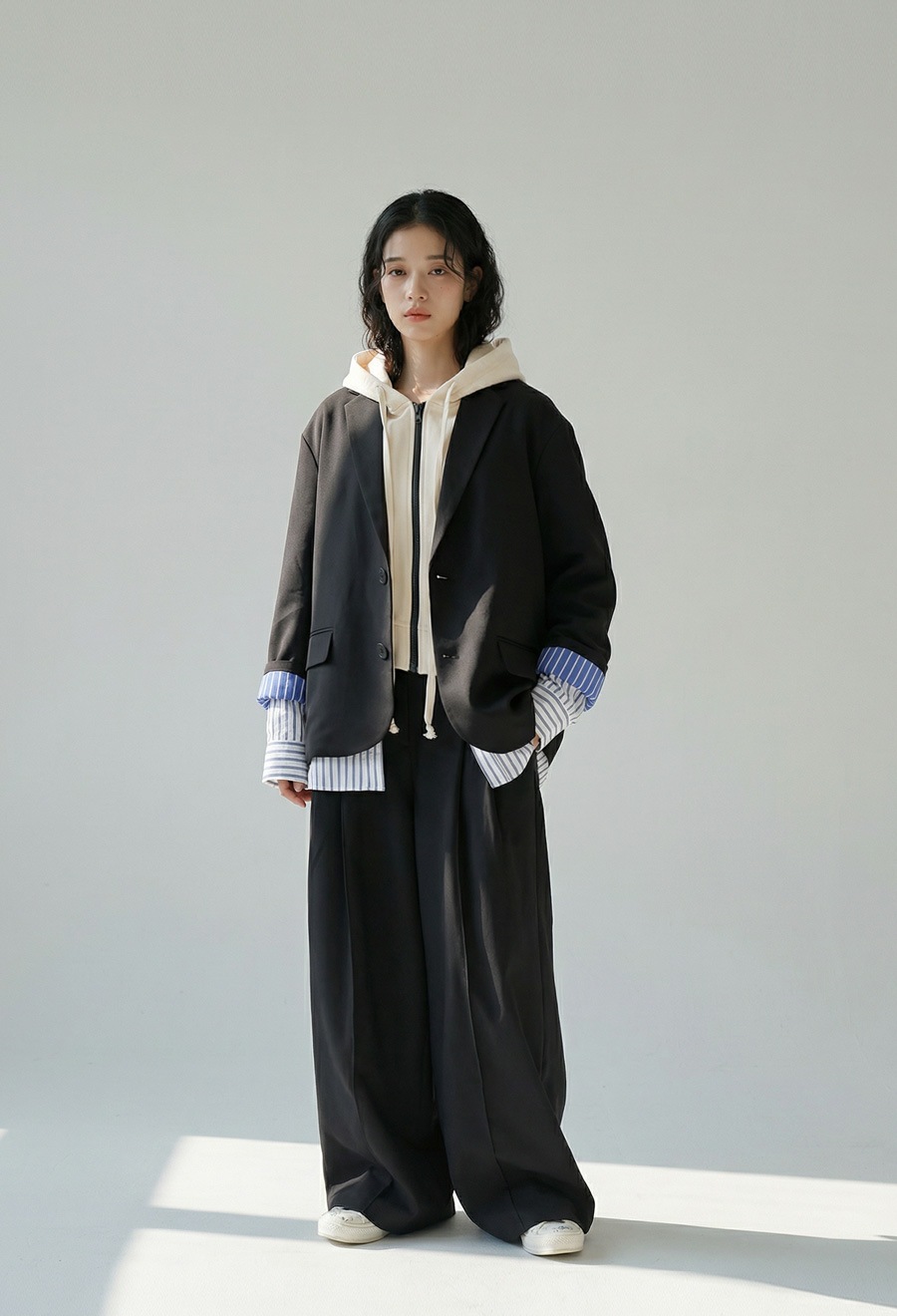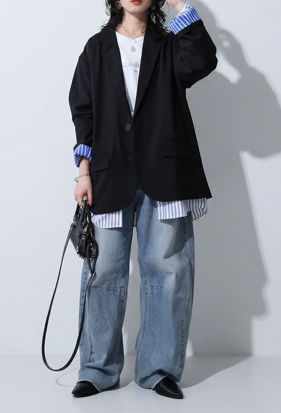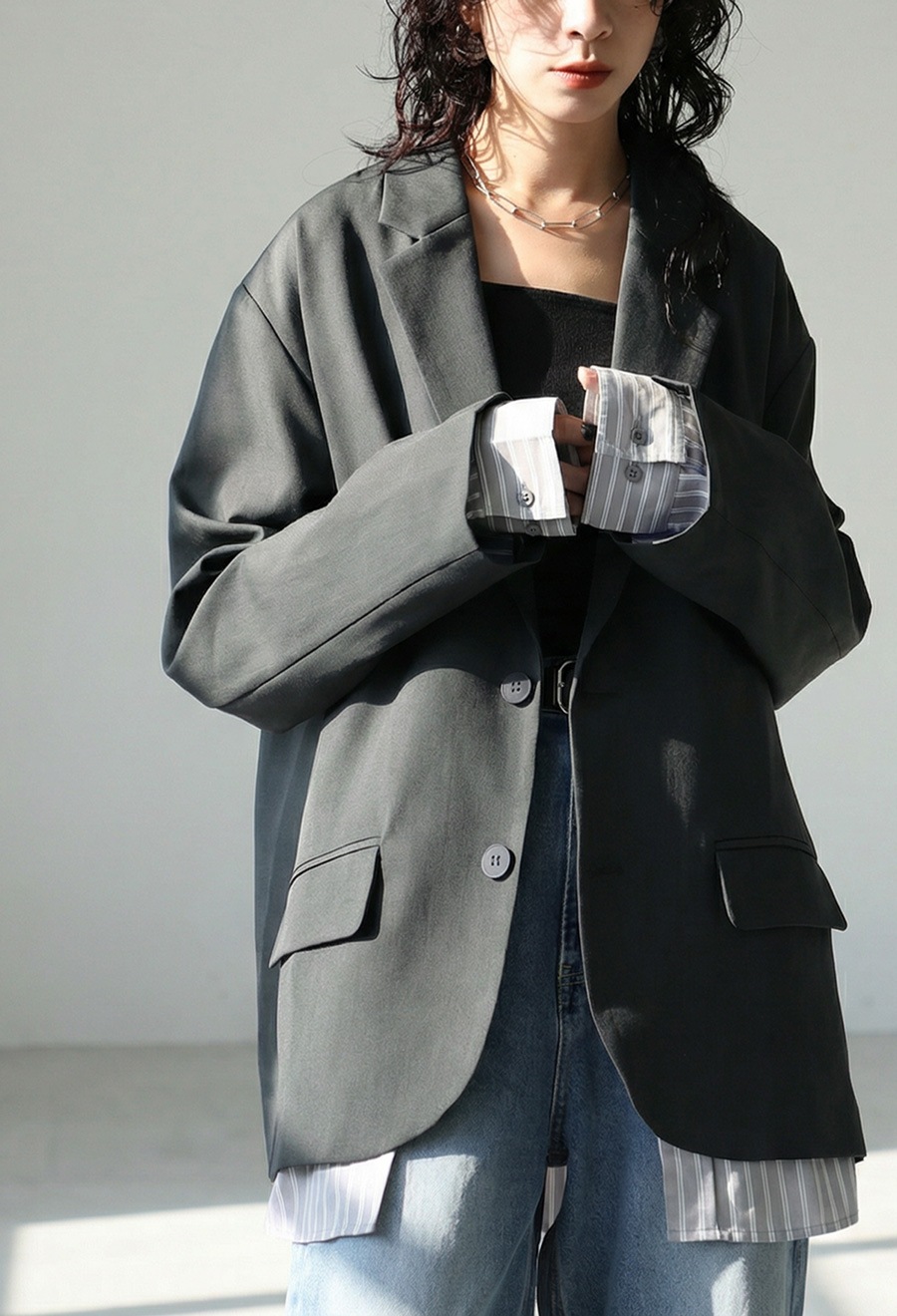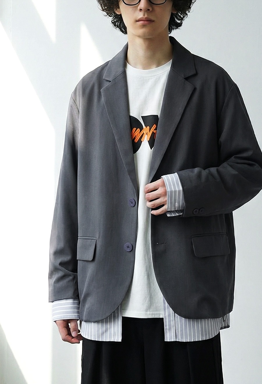 きちんと感と遊び心を両立した、テーラードカラーのレイヤード風ジャケットです。