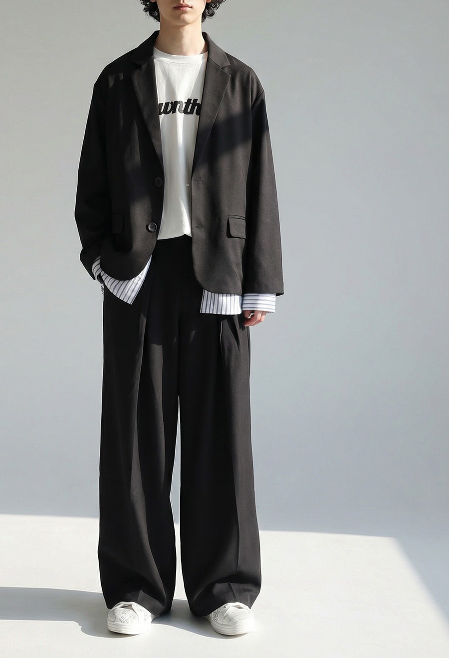 袖口や裾から覗く柄と無地の絶妙なバランスが、きれいめな中にもモードなエッセンスをプラスします。
