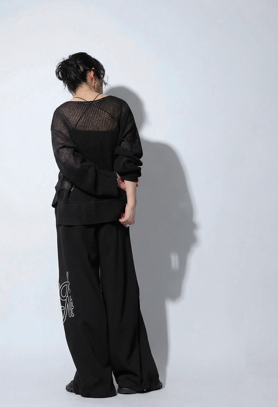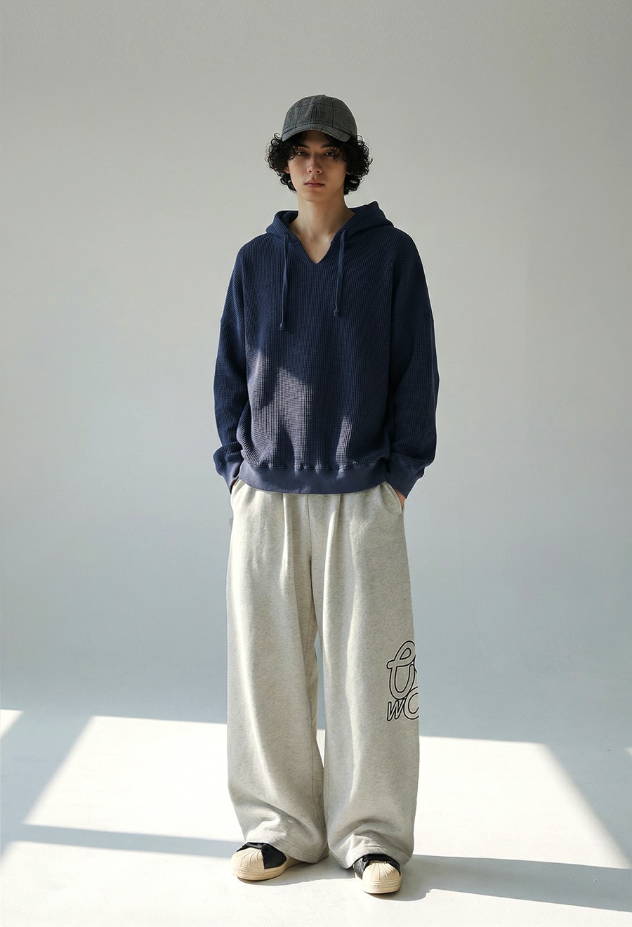 脇には異素材のワッフル切替を施し、動きのある立体感と抜け感を加えています。