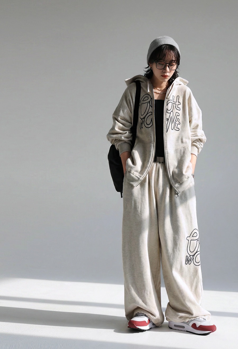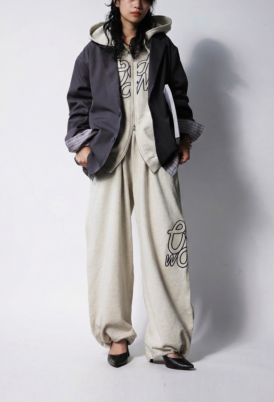同デザインのジップフーディーとのセットアップも可能で、メンズ品番も展開。ユニセックス対応で着用いただけます。