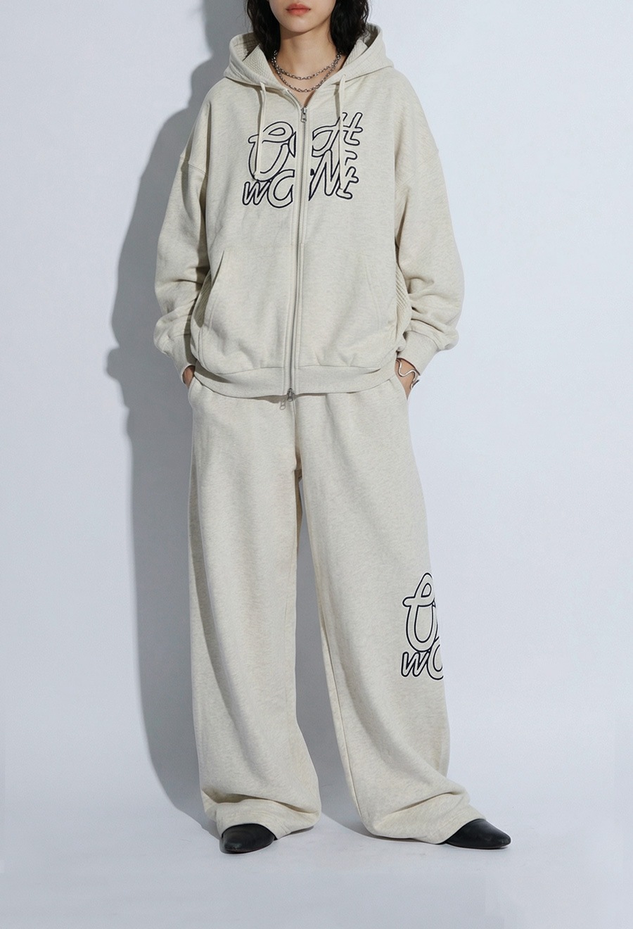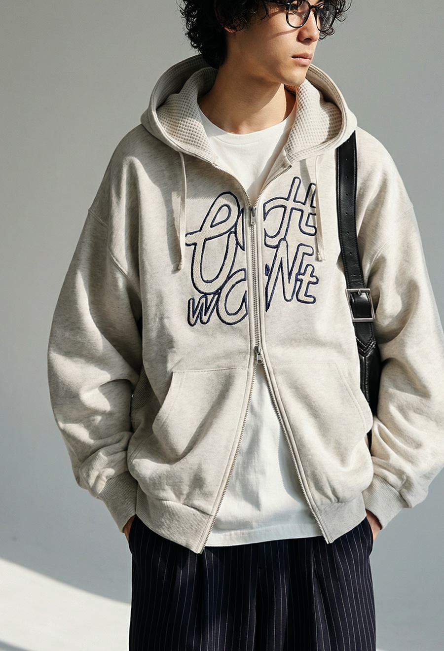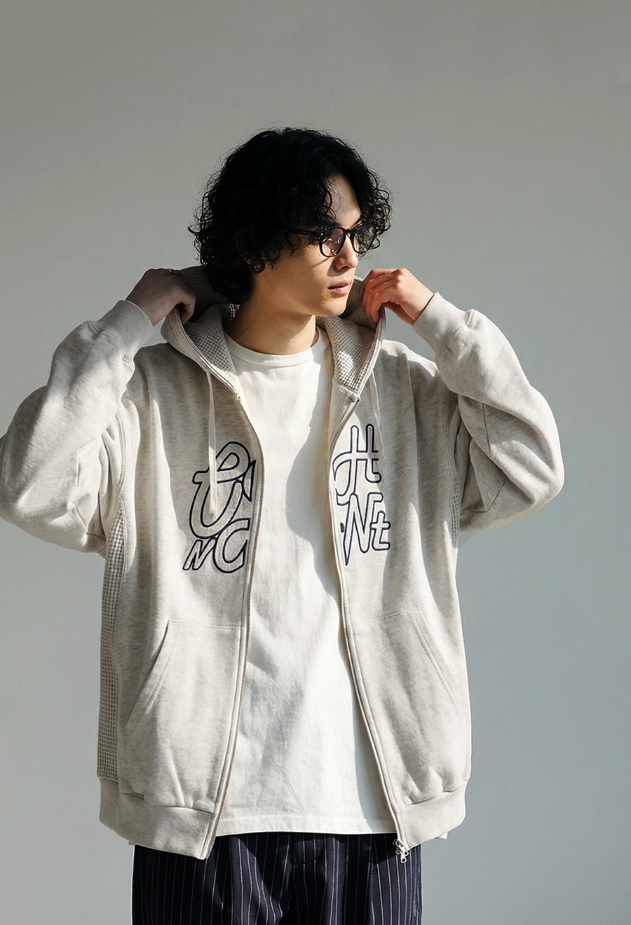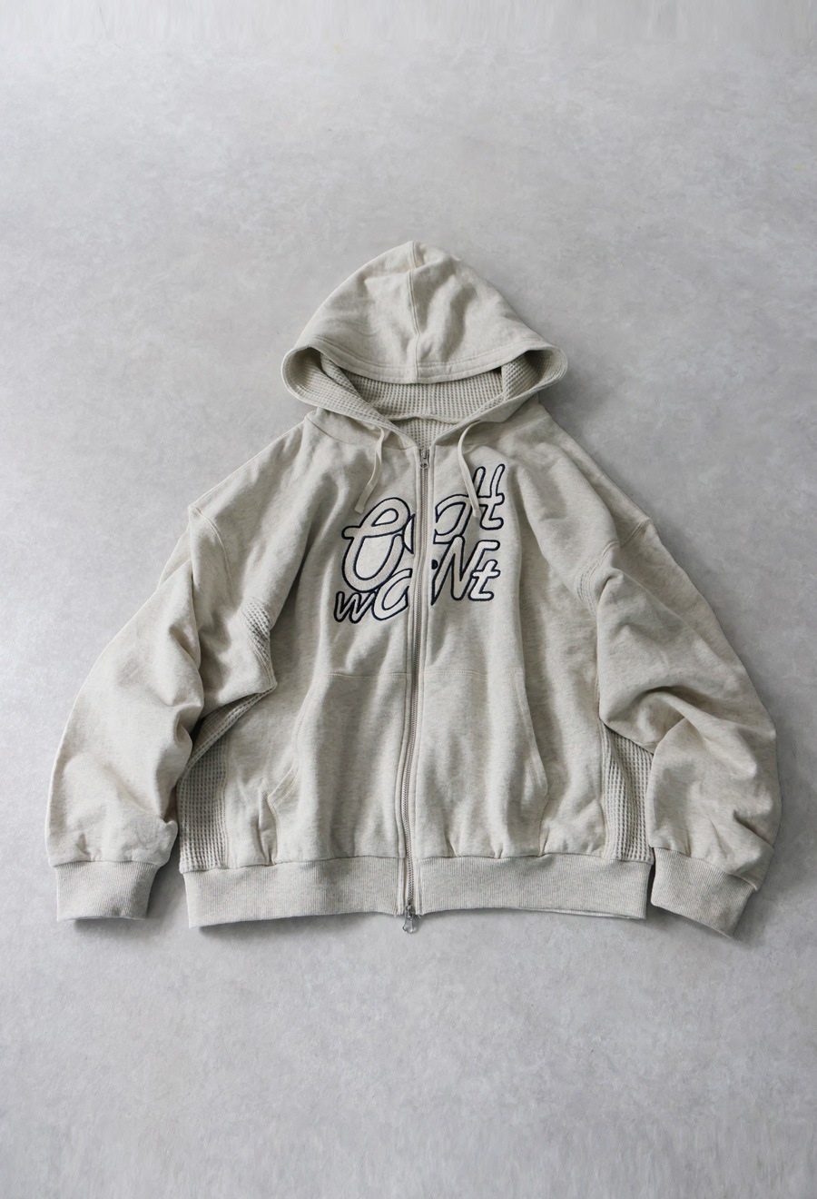 フロントには「OWNth」のロゴ刺繍を配置し、刺繍の中にあえて裏毛の裏側を使うことで素材感が際立つアクセントに。