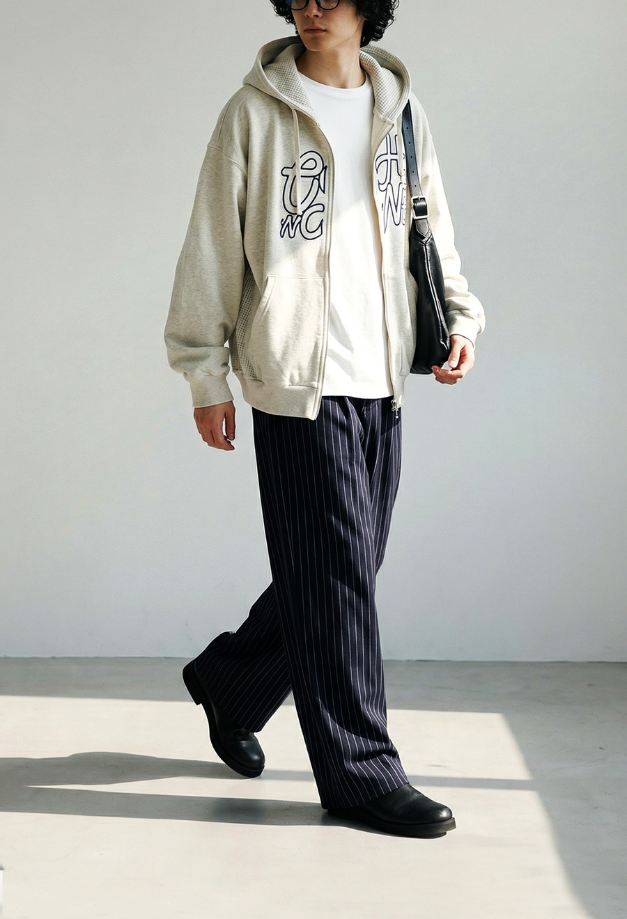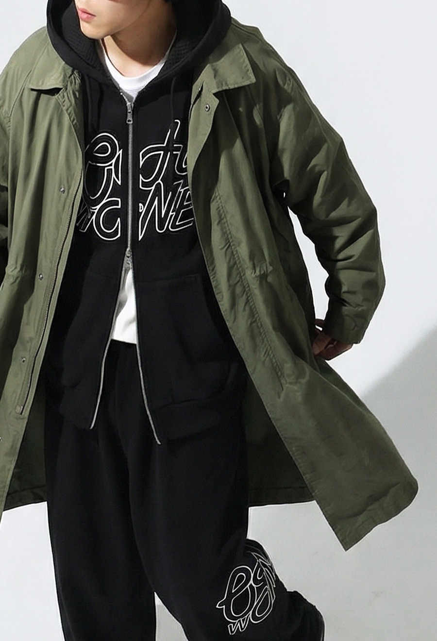 形状はゆったりとした大きめサイズ設計で、ユニセックスながら女性が着てもきれいめにまとまる絶妙なバランスに仕上げました。