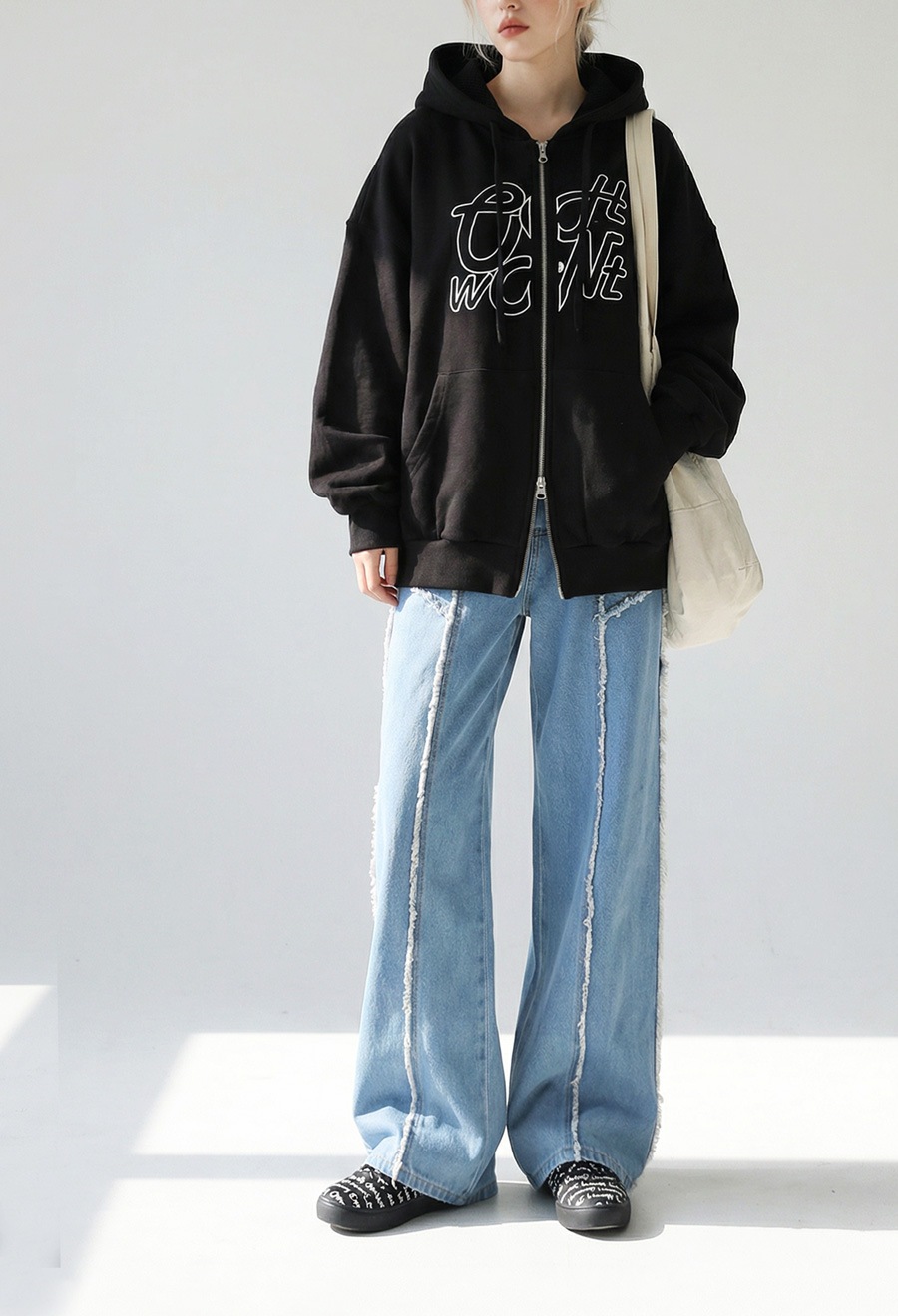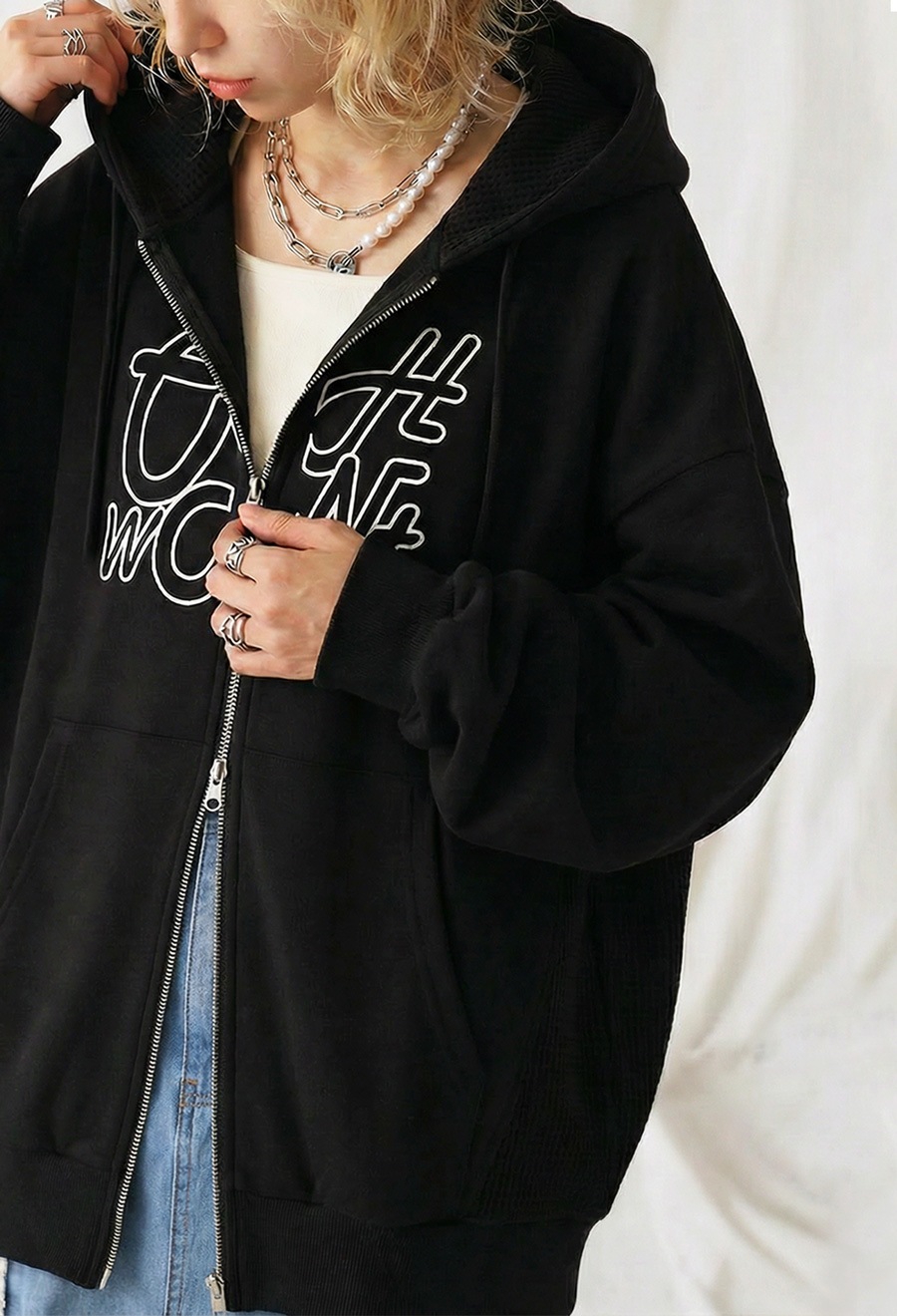 前開きのダブルジップ仕様でバランスのアレンジがしやすく、軽い羽織りとしてもトップス感覚でも着回せます。
