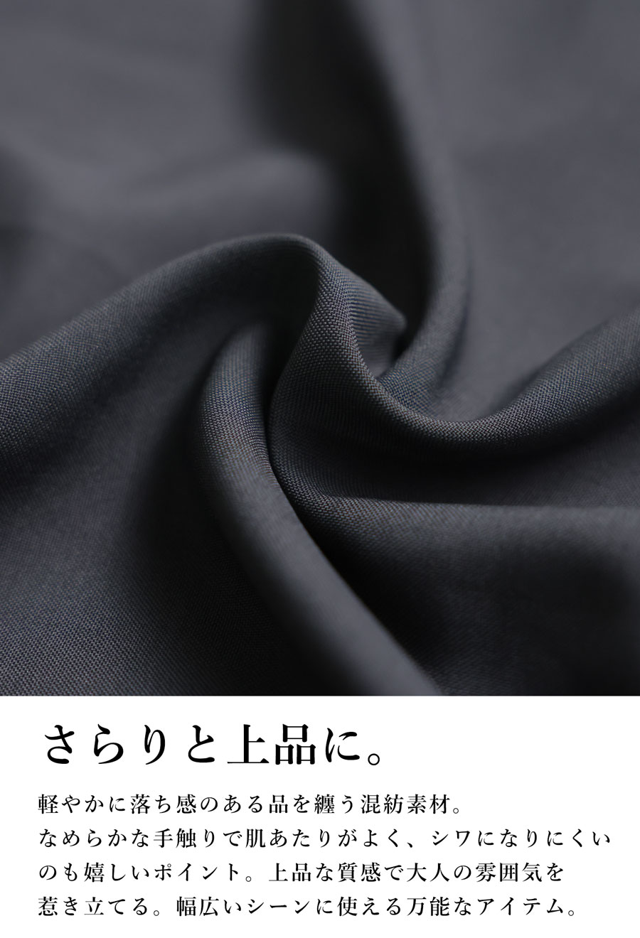 素材はシワになりにくく、上品な落ち感とともになめらかな肌触りでデイリーに最適です。