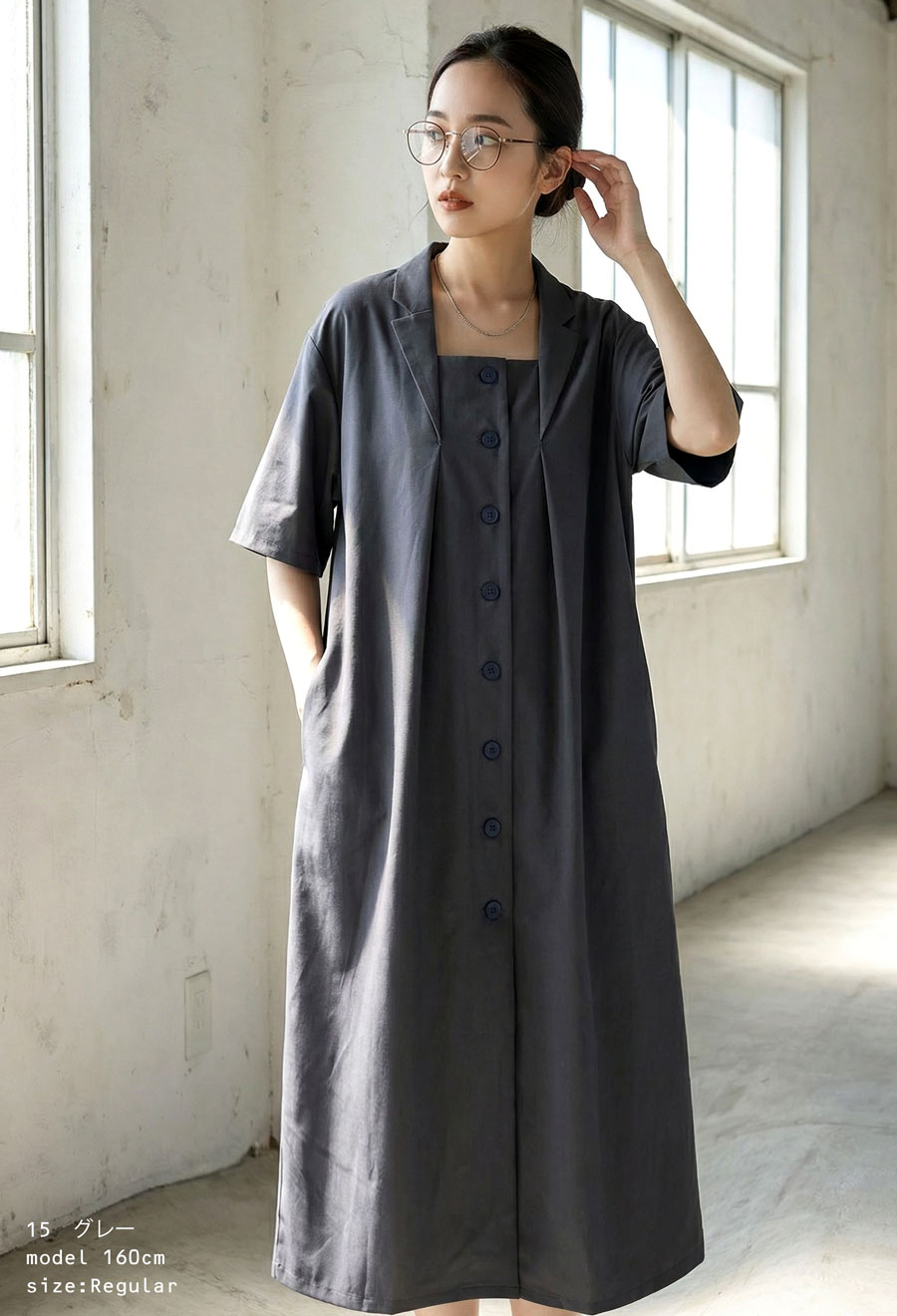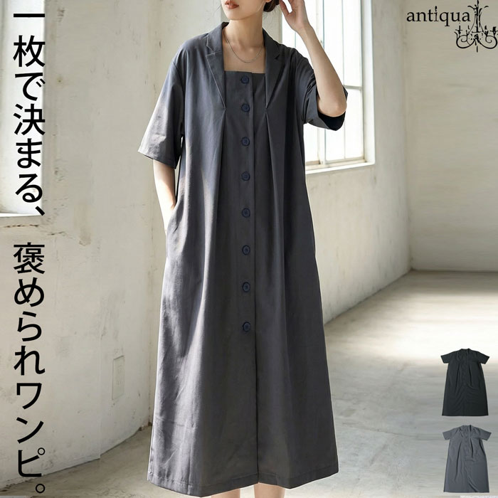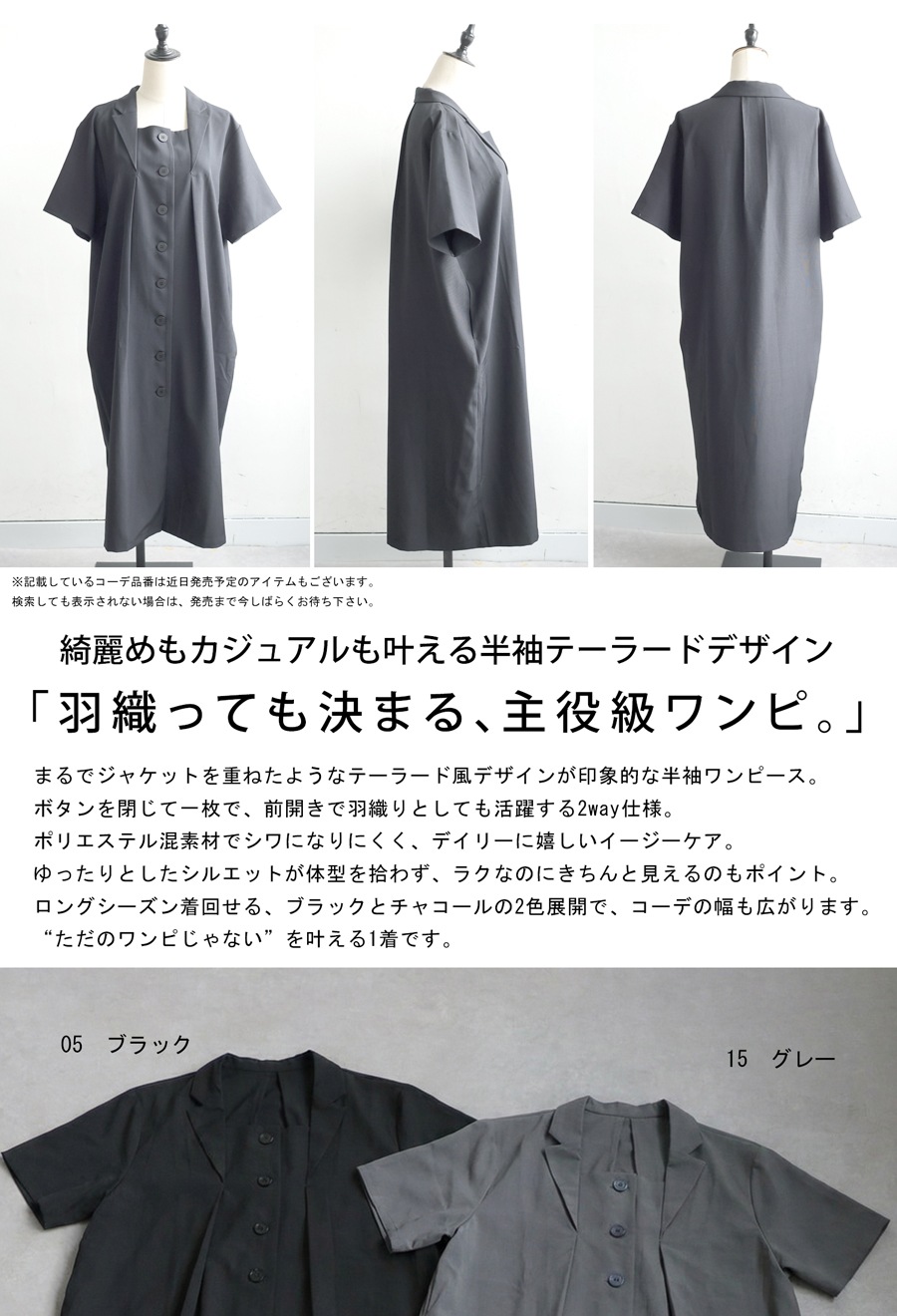 【予約:1月下旬納期】テーラード ワンピース レディース 半袖 ロング 送料無料・メール便不可