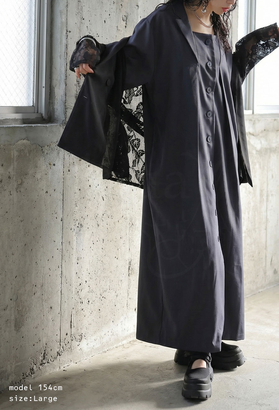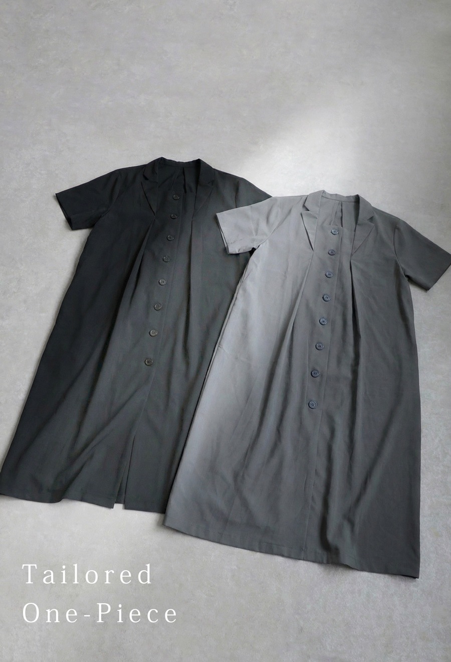シャープなテーラードカラーが印象的な無地のロングワンピースです。