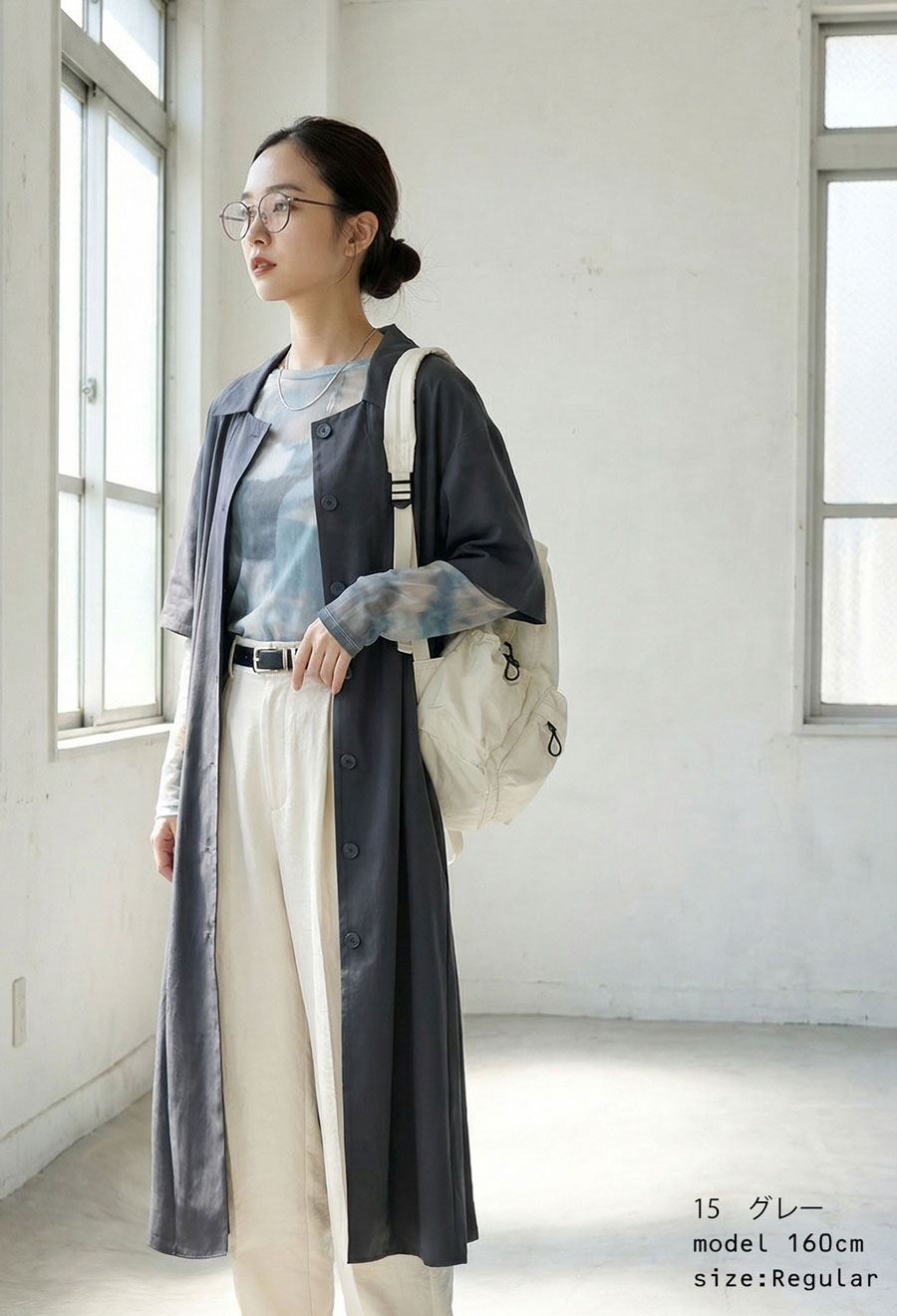 ゆったりとした身幅とマキシ丈のロングシルエットで、体型カバーと着心地の良さを両立。