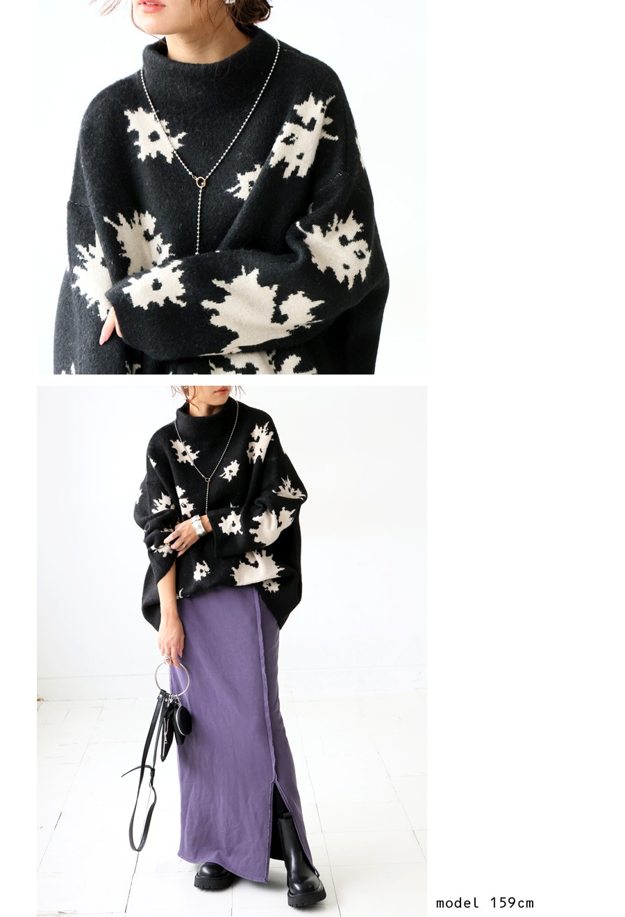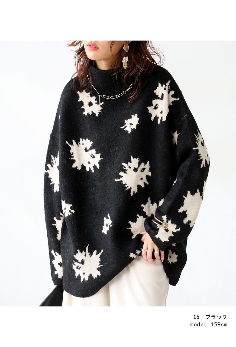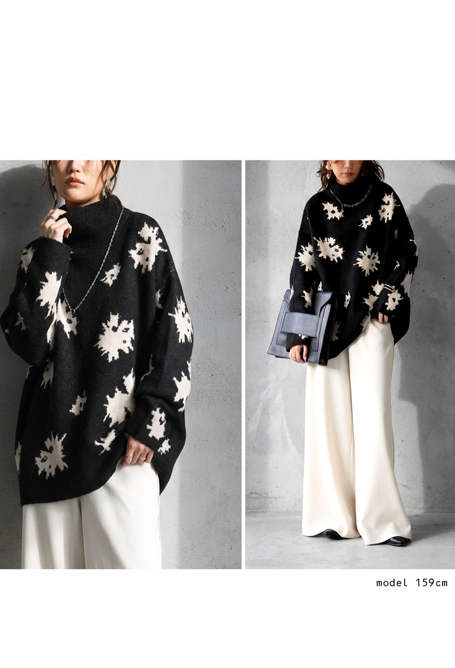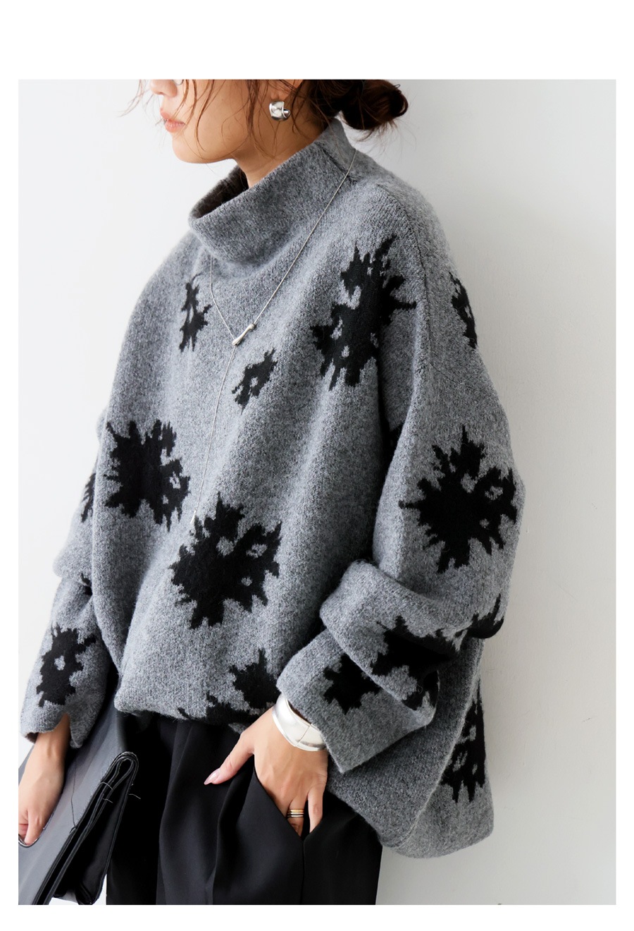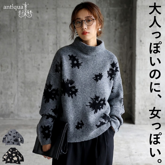 花柄 ニット トップス レディース ボトルネック 長袖 送料無料・メール便不可