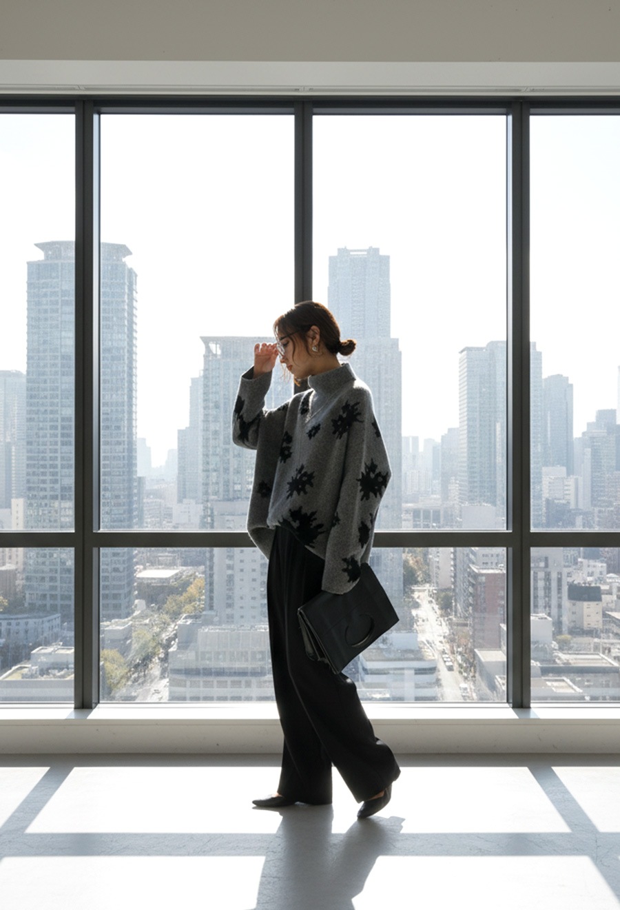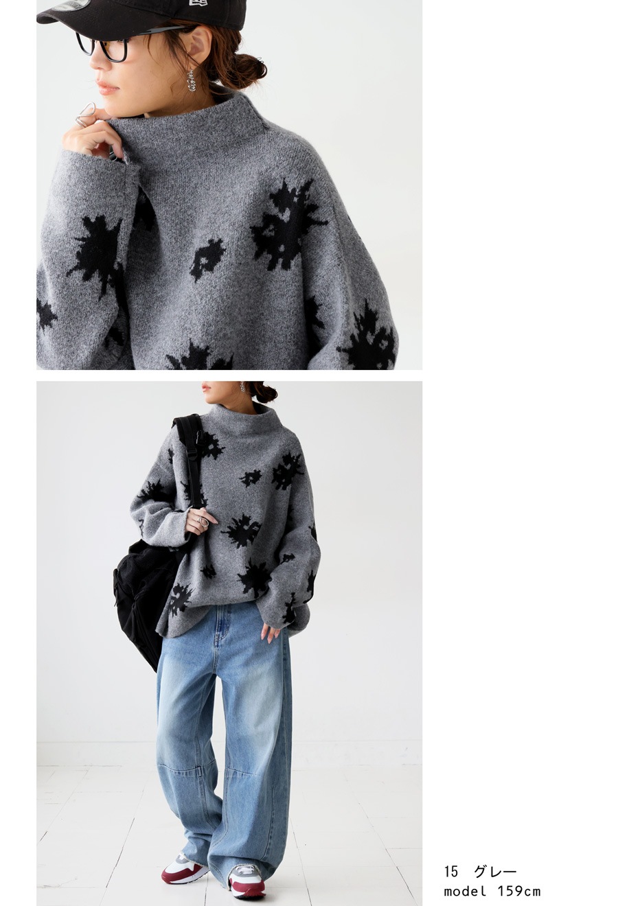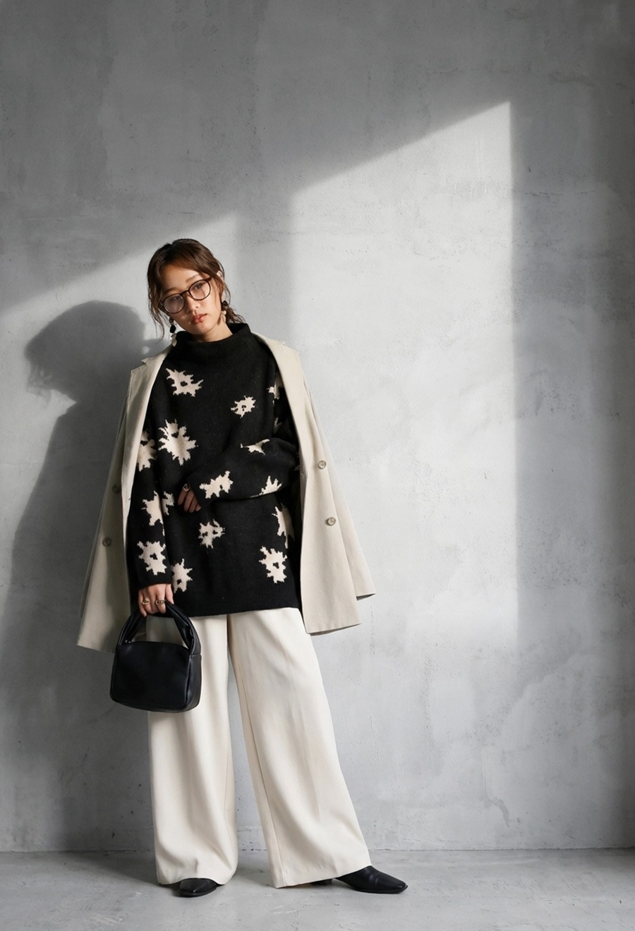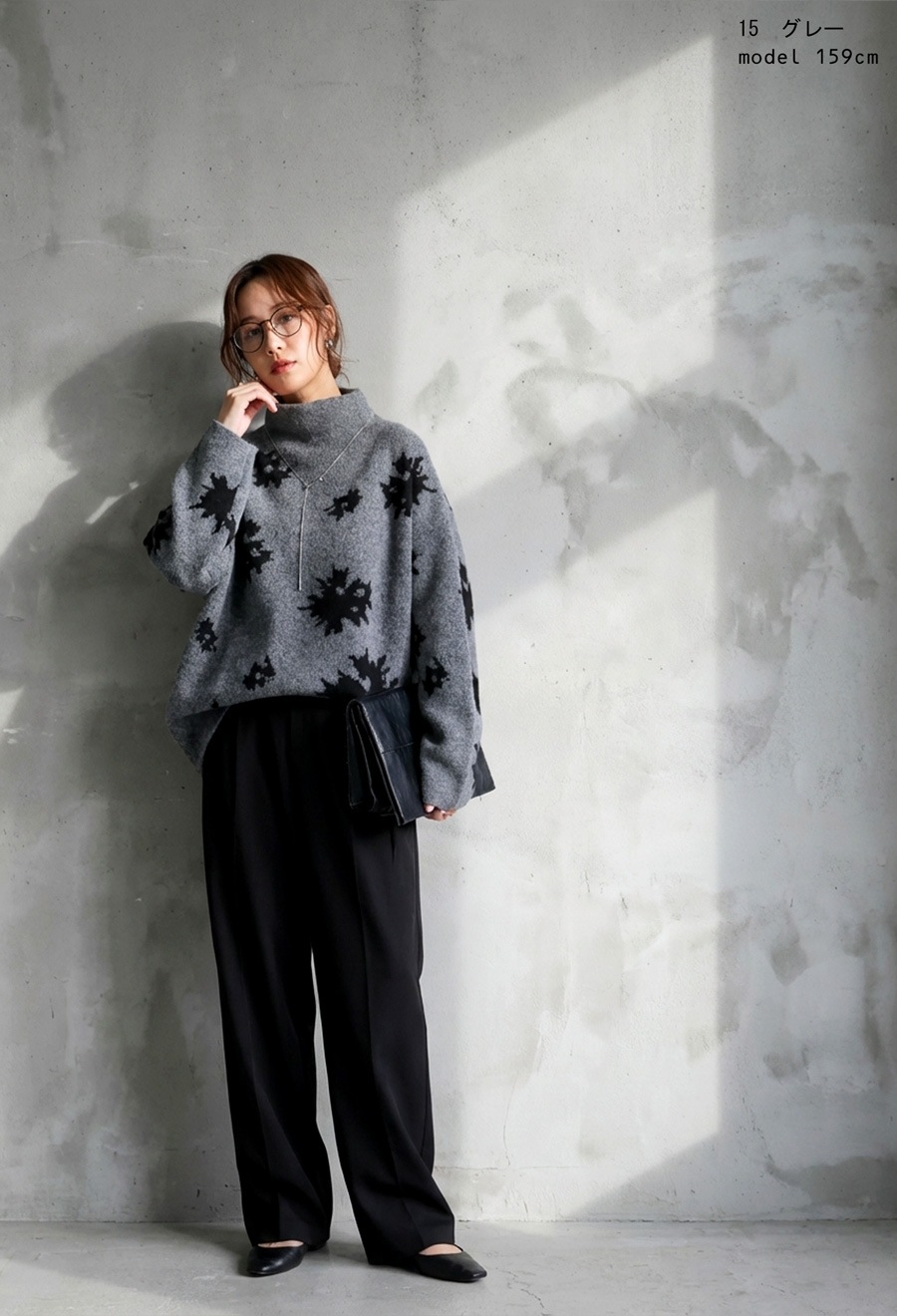 ゆったりとした形状で抜け感を演出し、大人のこなれたスタイルが完成します。