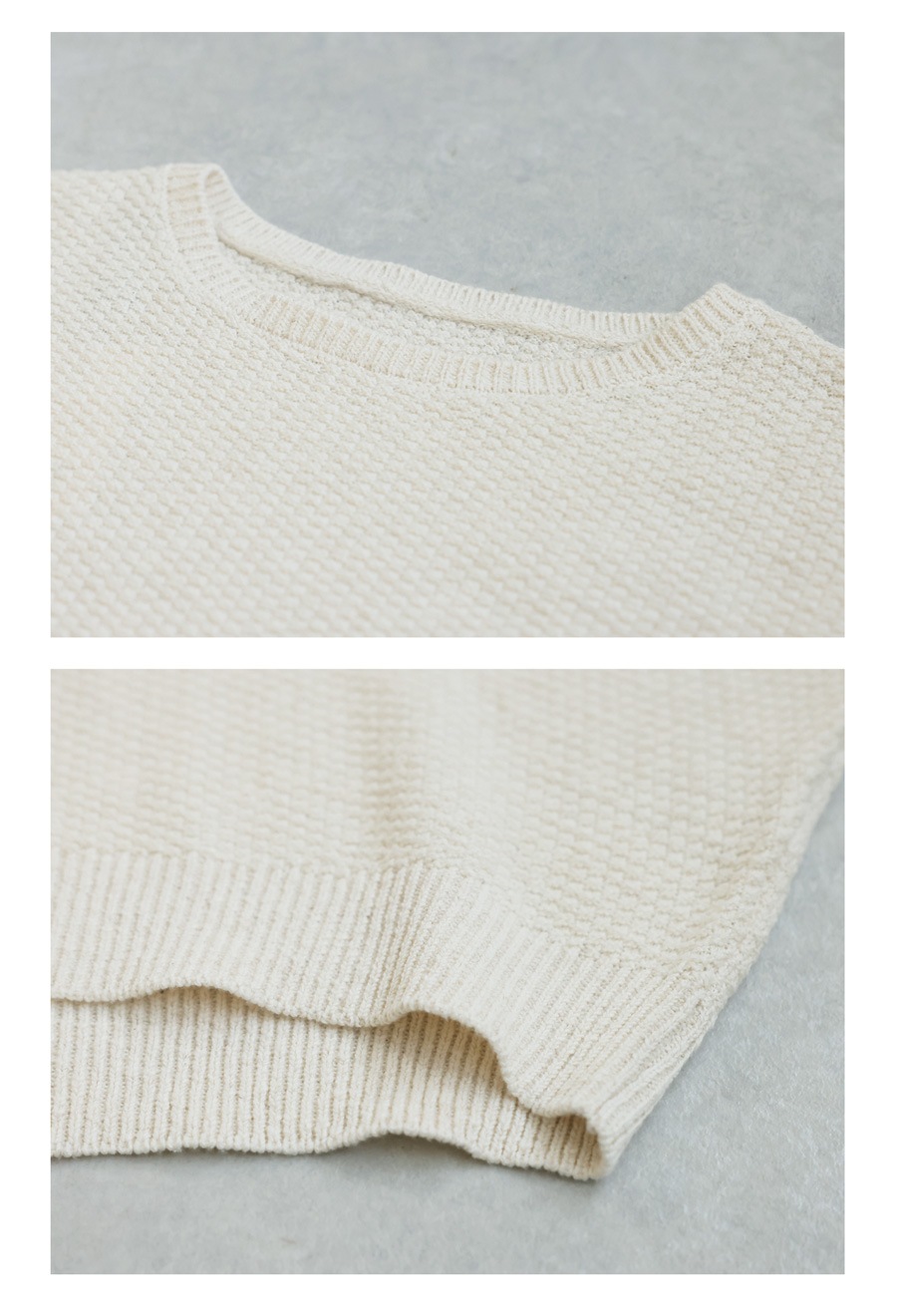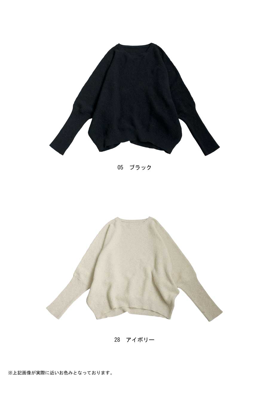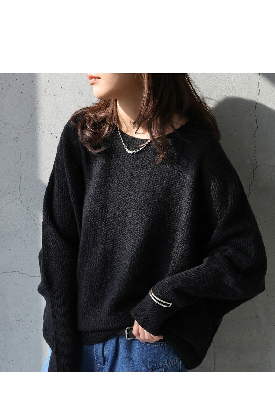 立体感ある鹿の子編みがやさしい印象を与えるニットトップス(セーター)です。