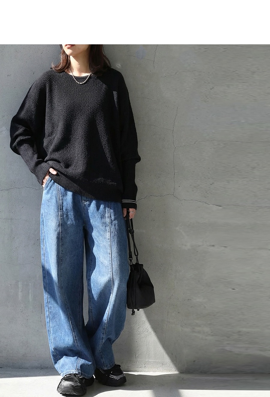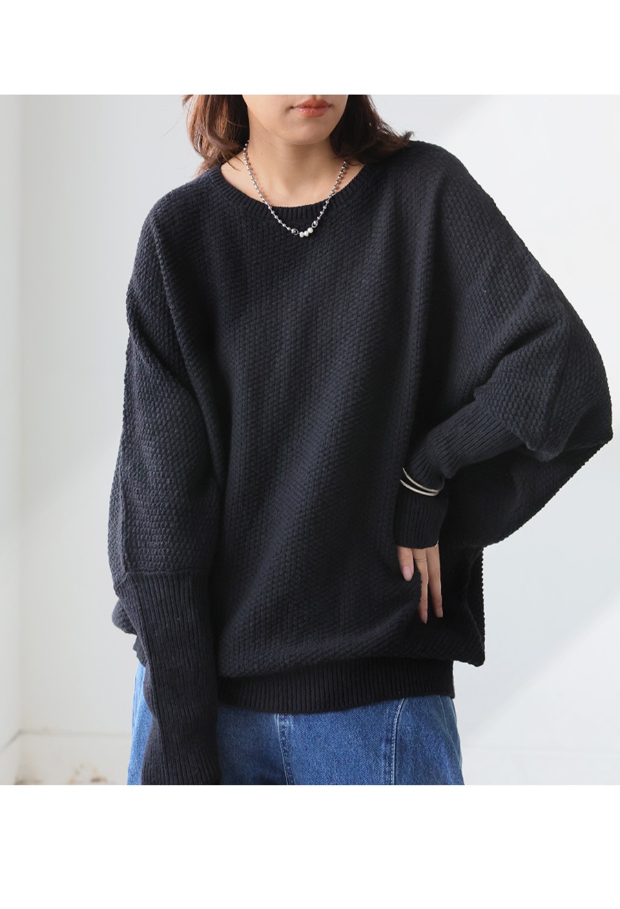 袖丈は手首までの長袖仕様で、ゆったりとしたドルマンスリーブが抜け感を演出します。