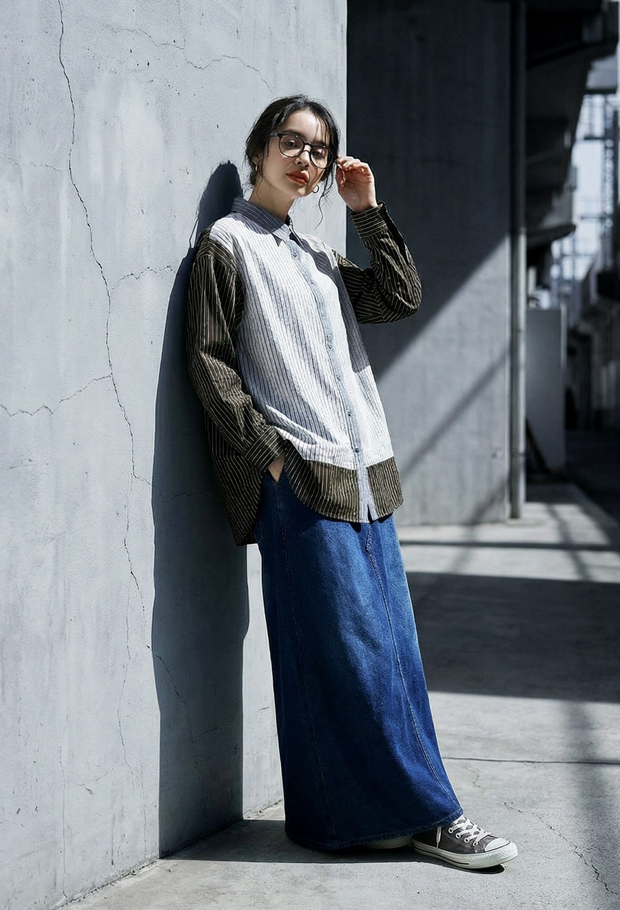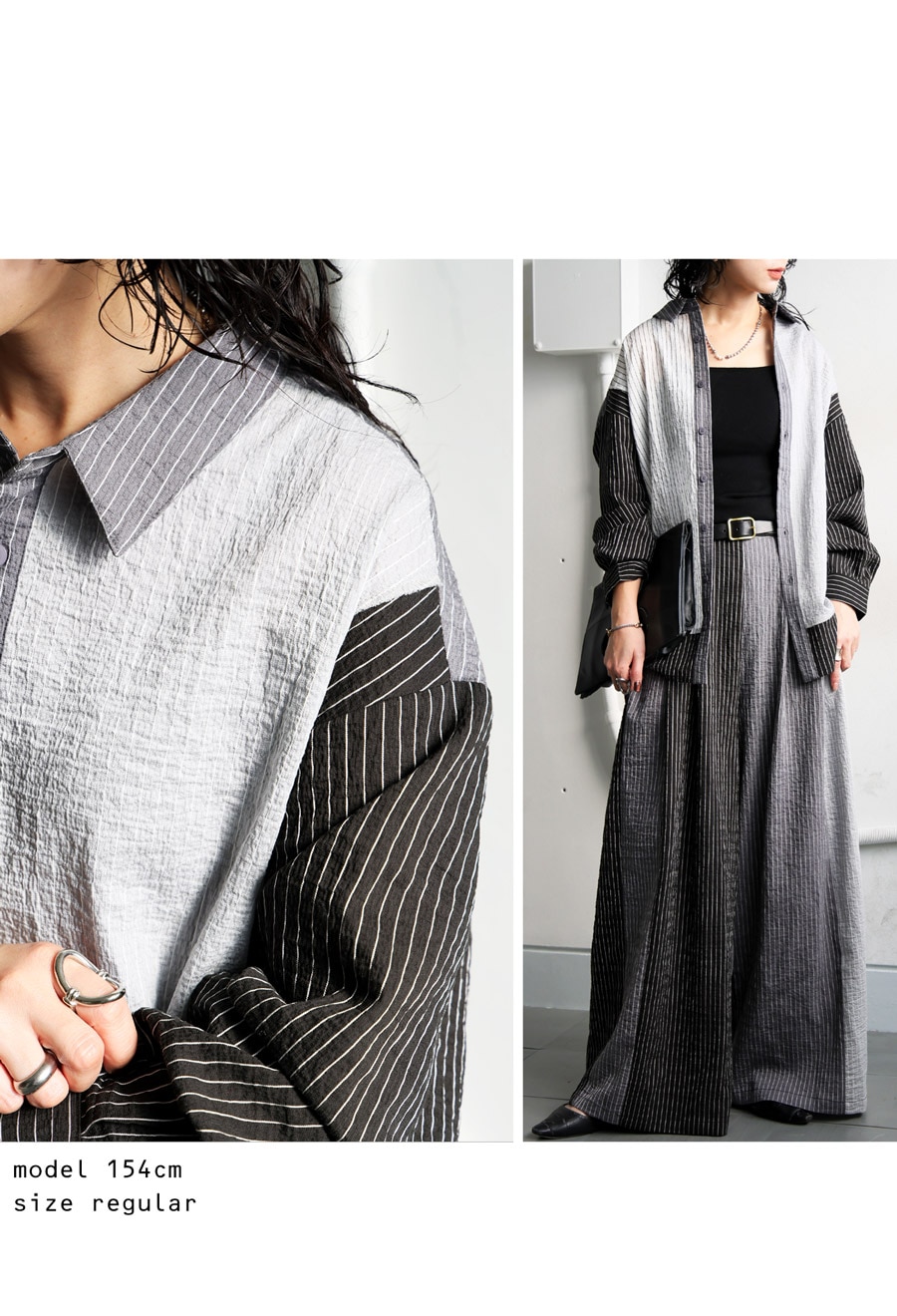 異なるストライプ柄と配色の組み合わせにより、奥行きのあるデザイン性が際立ちます。