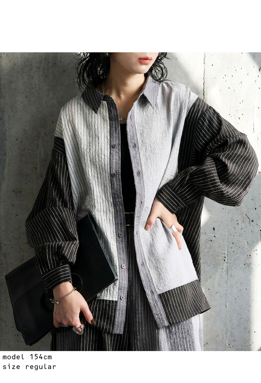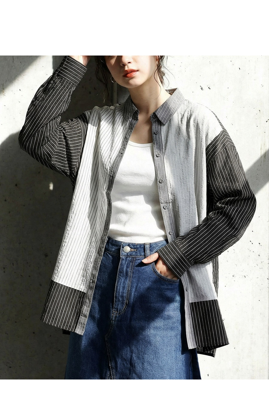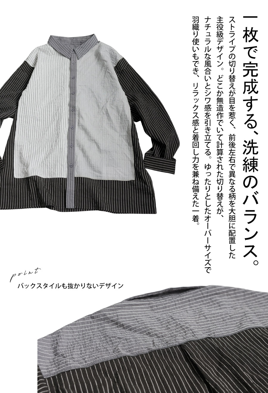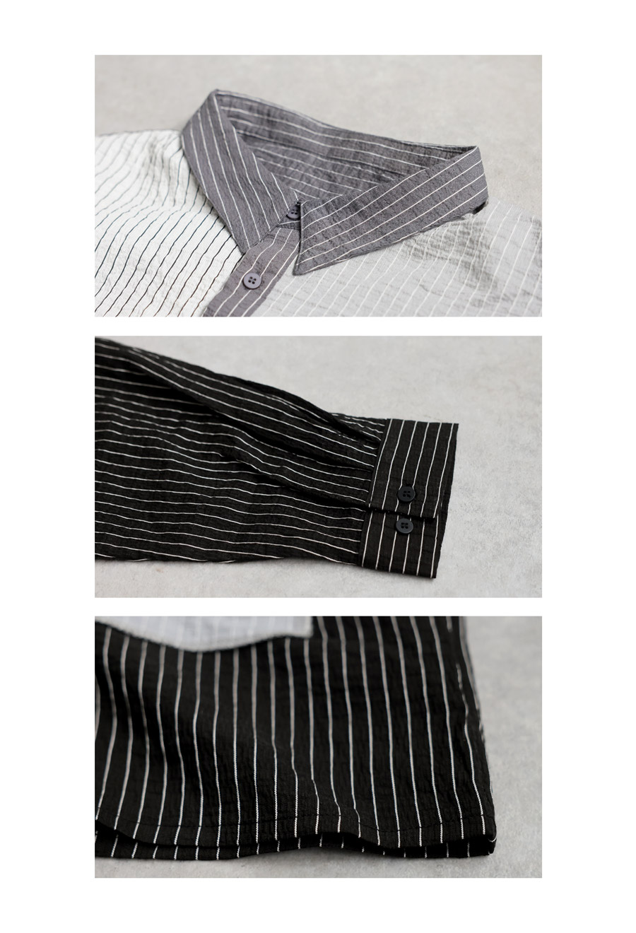 表情豊かな配色切替が印象的なストライプ柄シャツです。