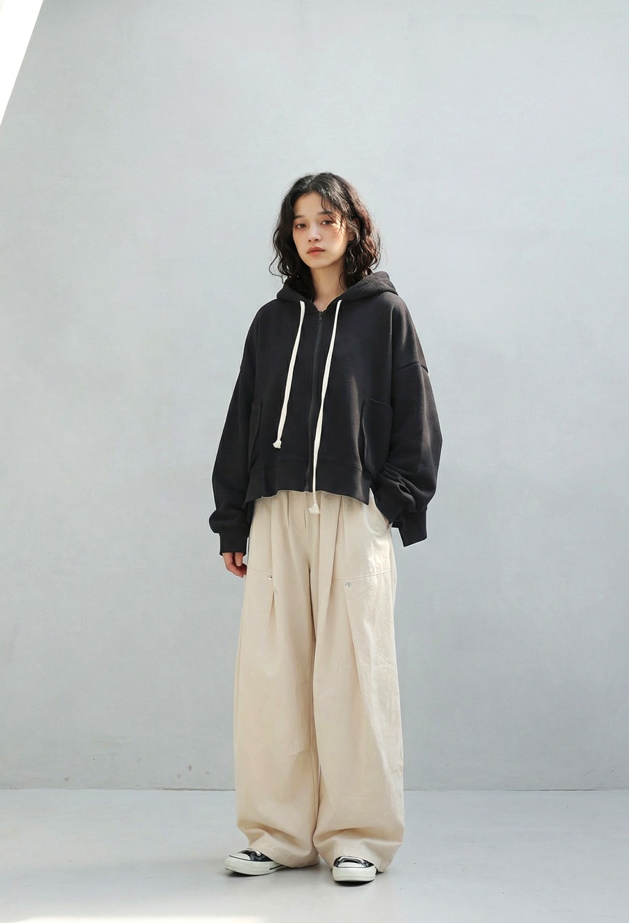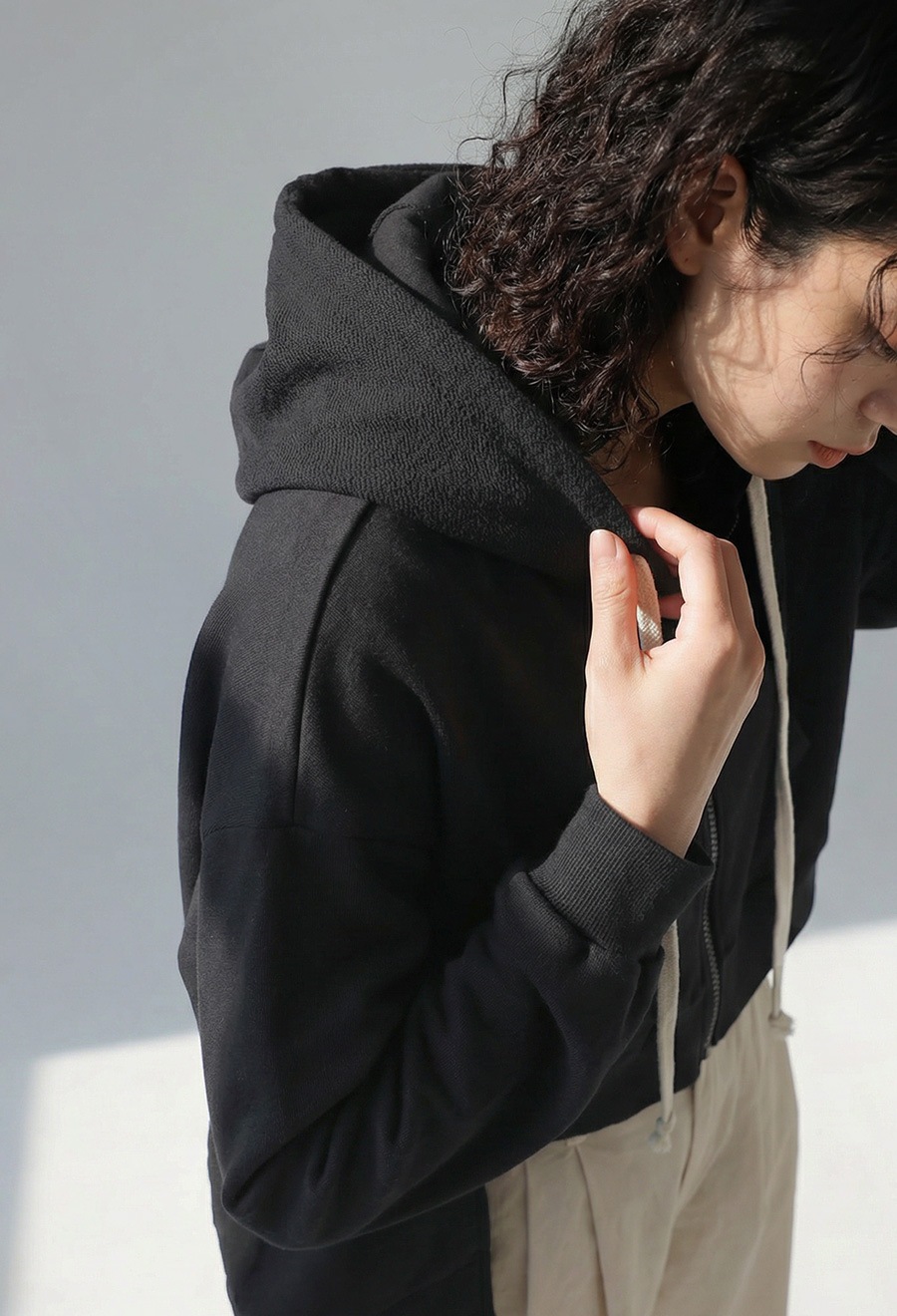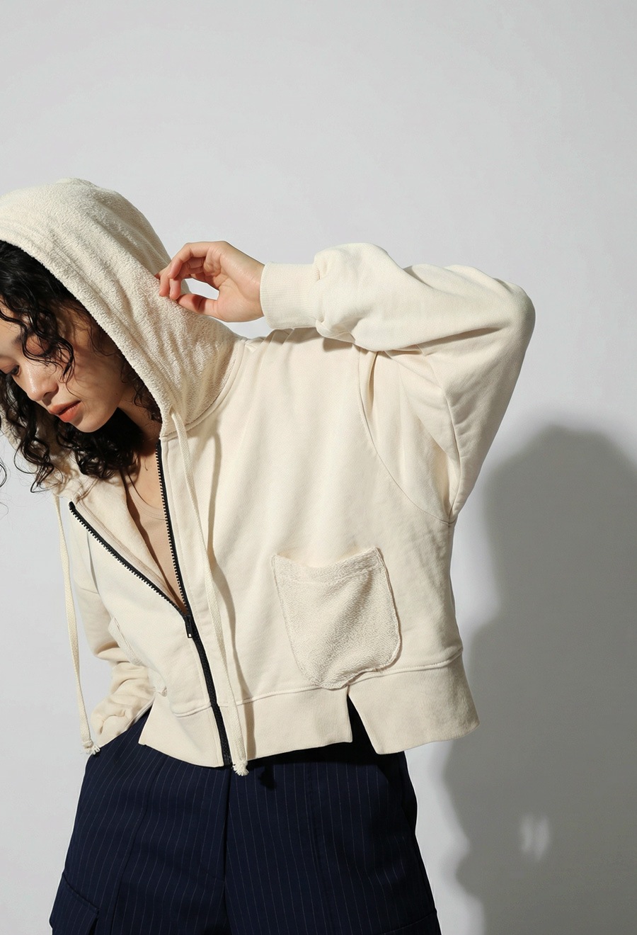 ネックラインはベーシックなフード仕様で、シーズン通して活躍します。