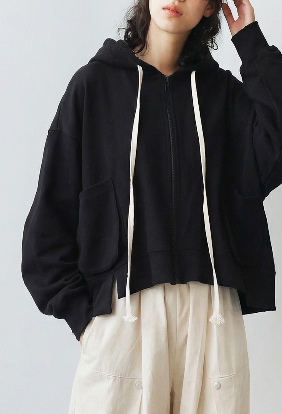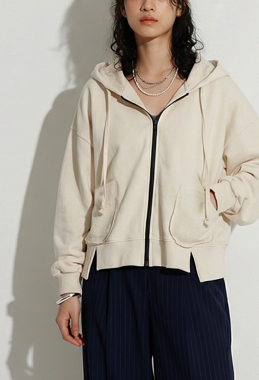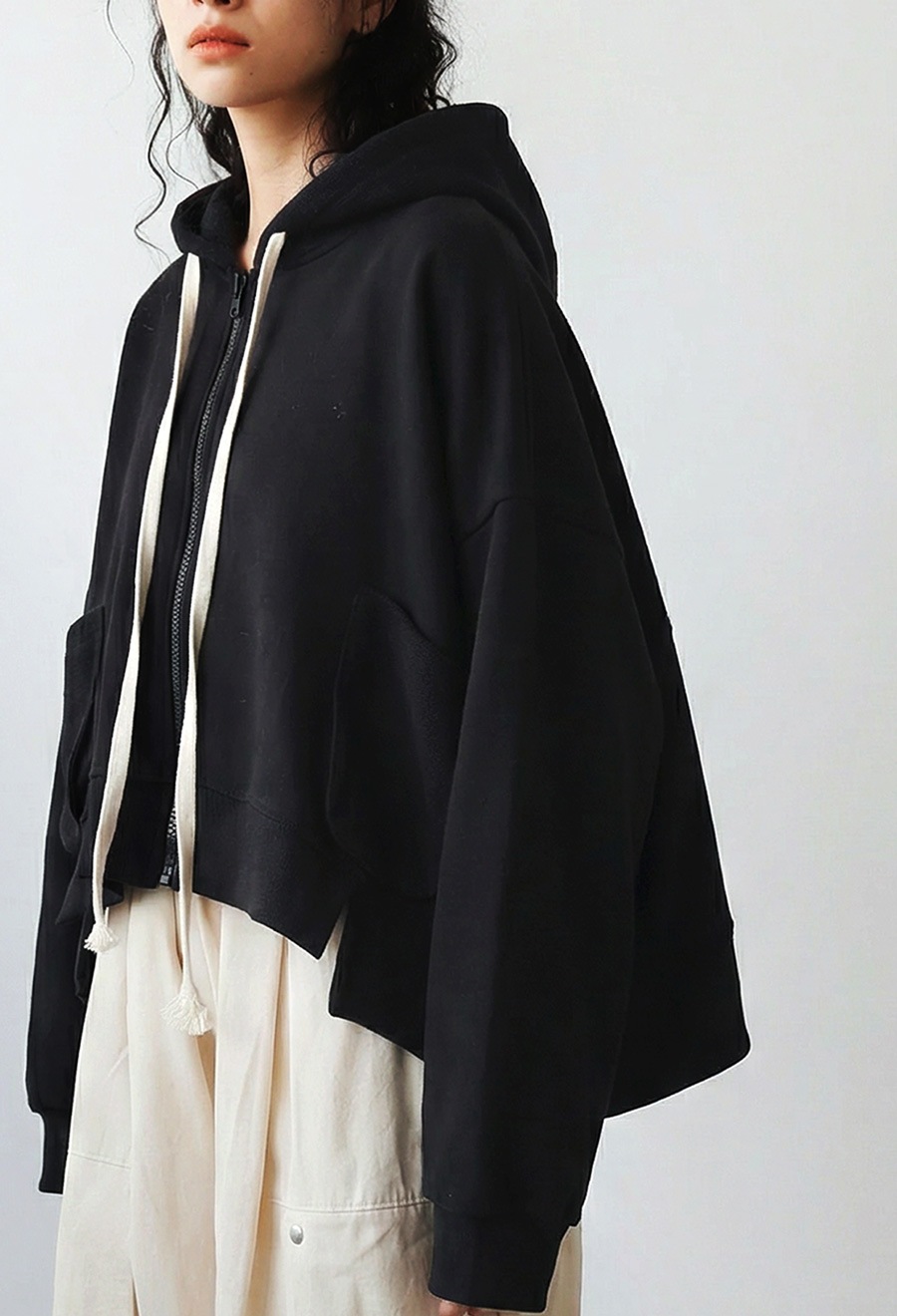 裾のさりげないドロストデザインでシルエット調整も可能。