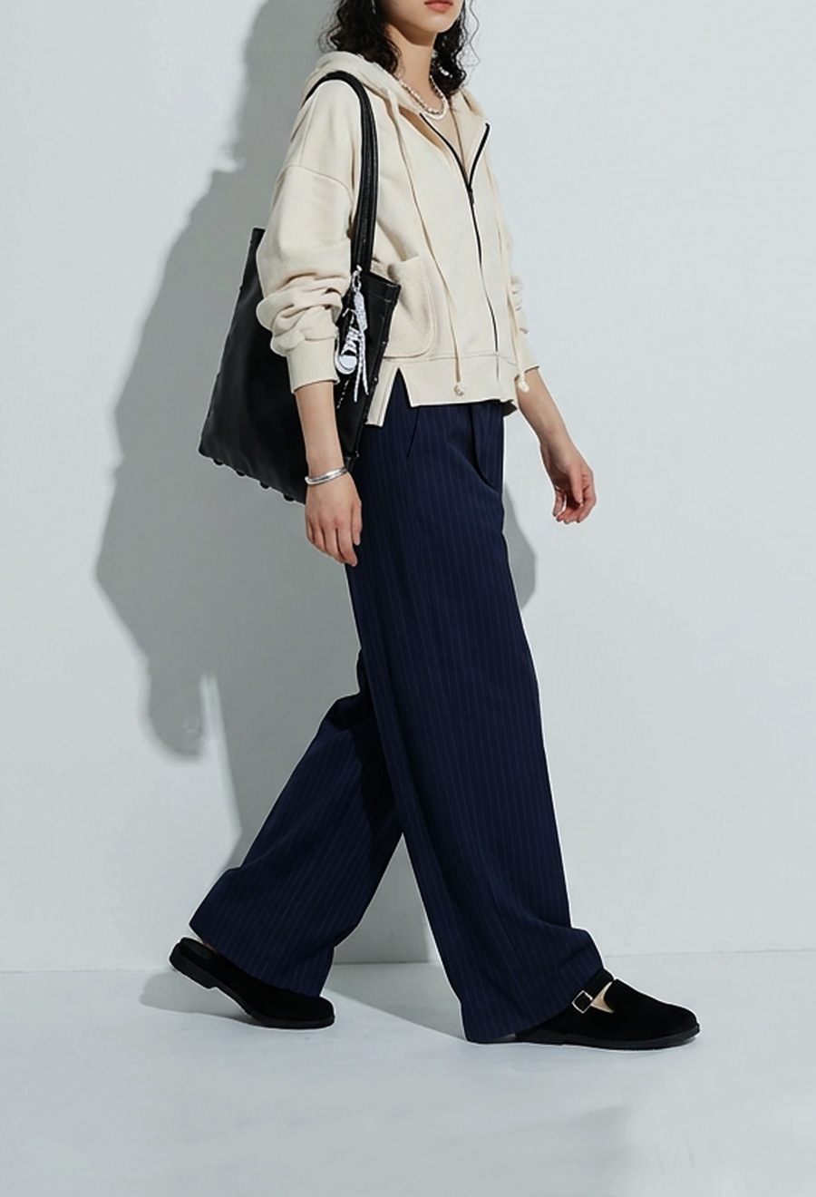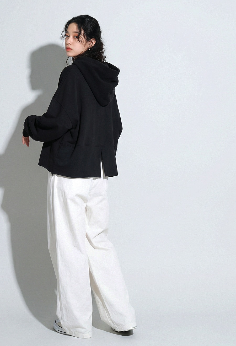 丈感はクロップドでコンパクトながらも、バックに入ったスリットで動きやすさも確保。