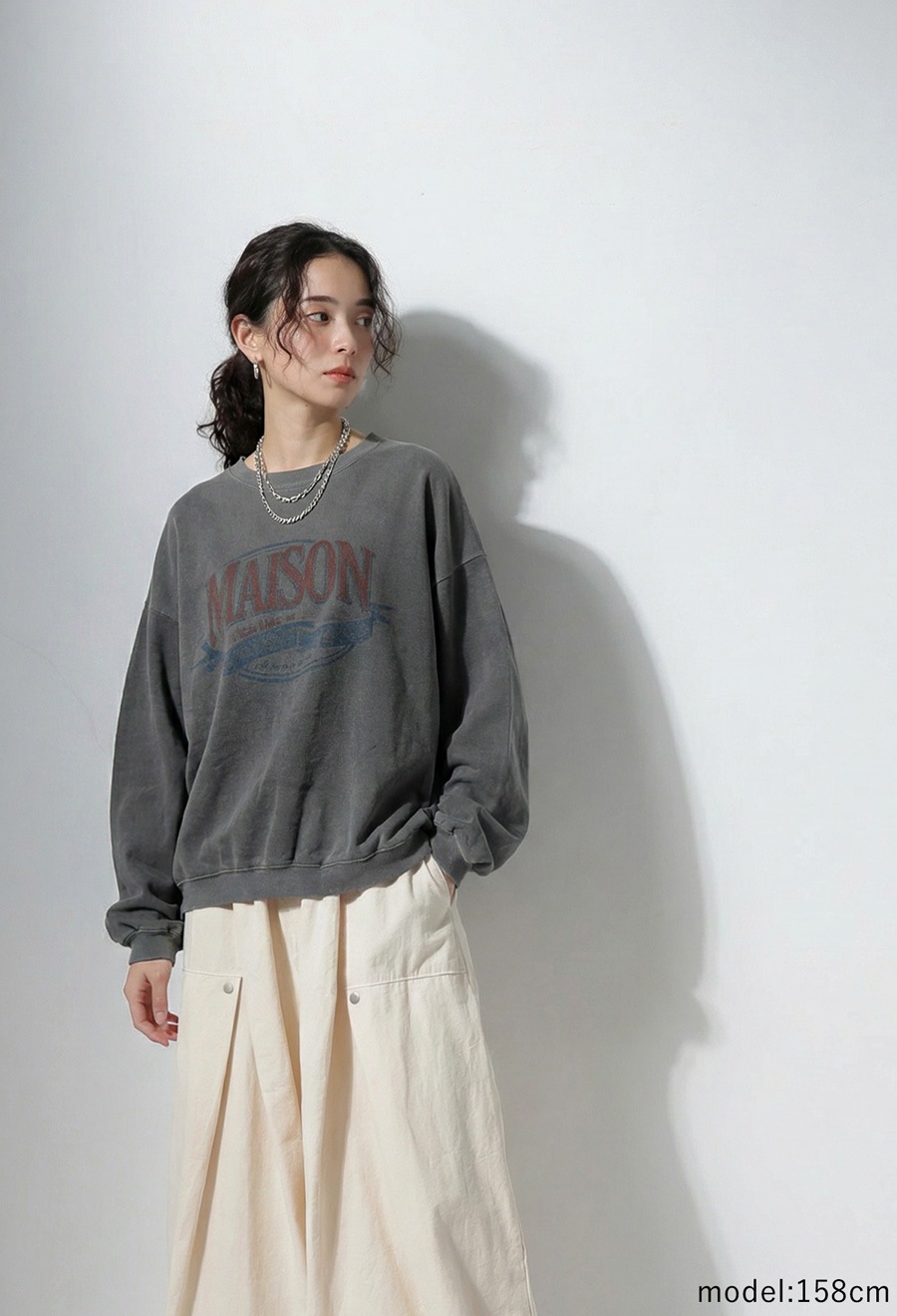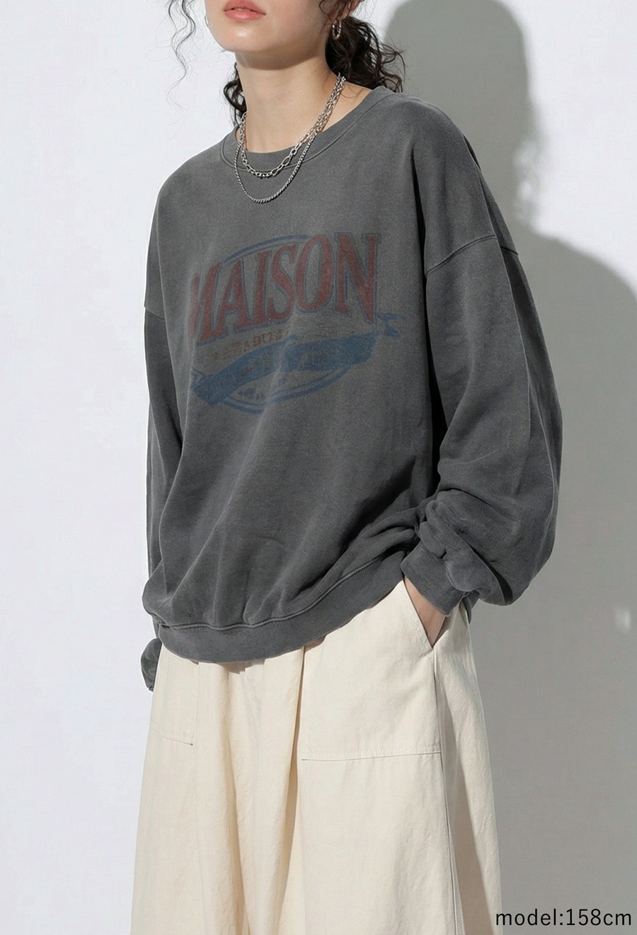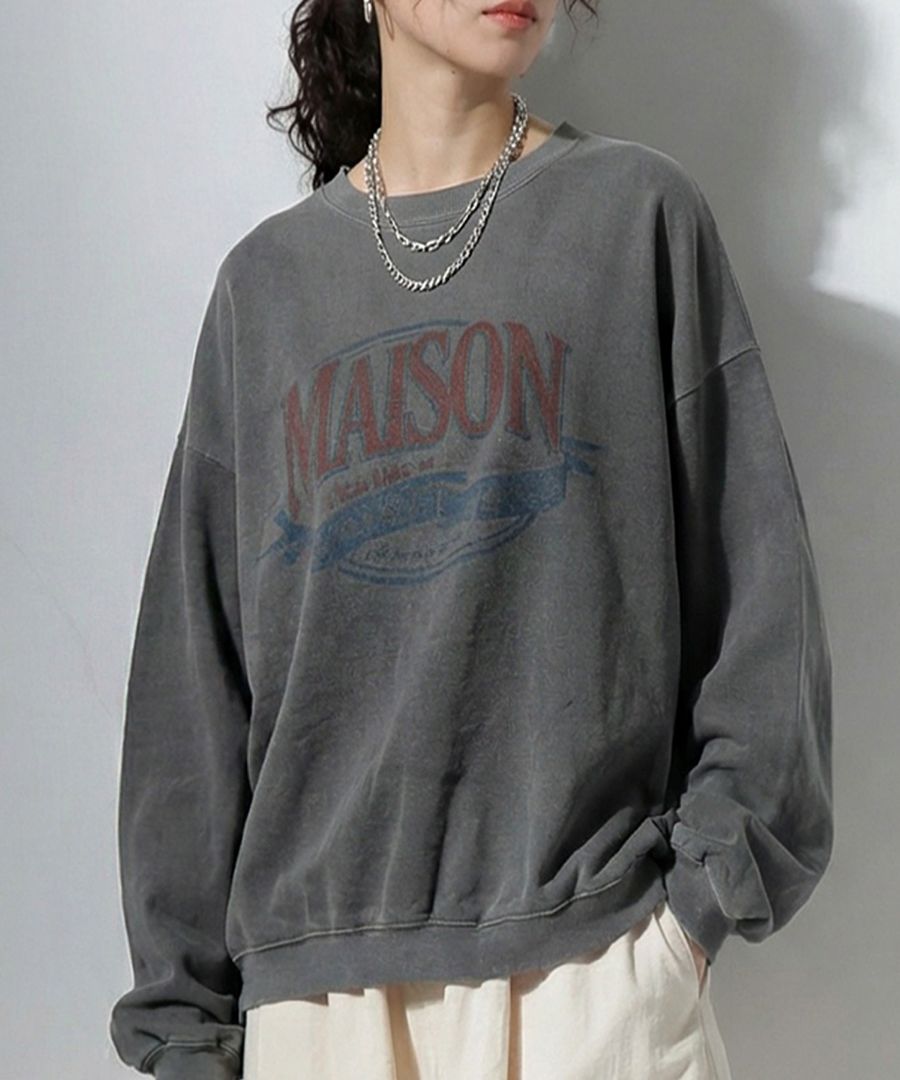 古着風のこなれ感を演出するピグメント加工が魅力のロゴ入りスウェットプルオーバーです。