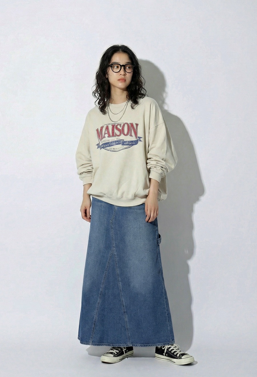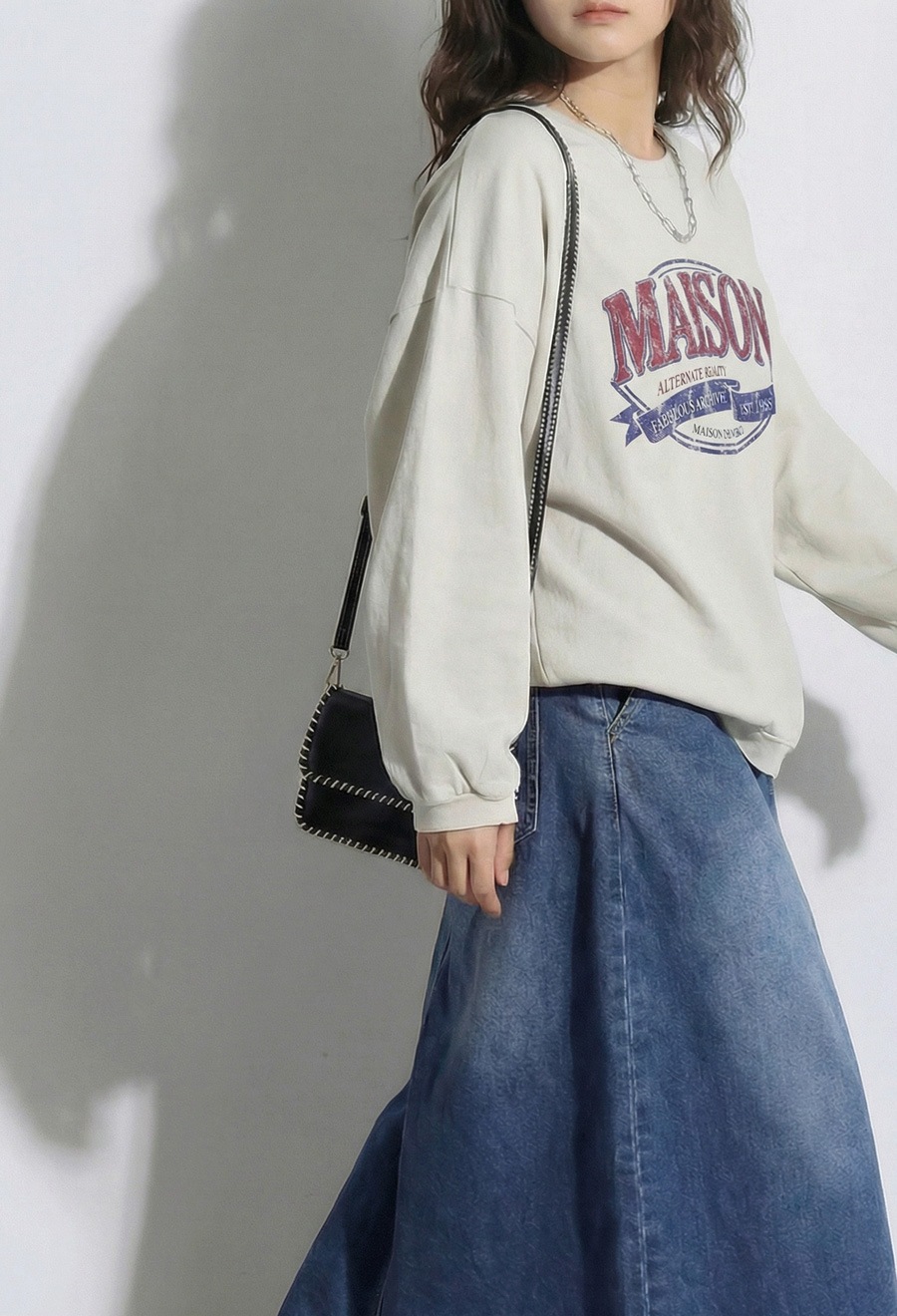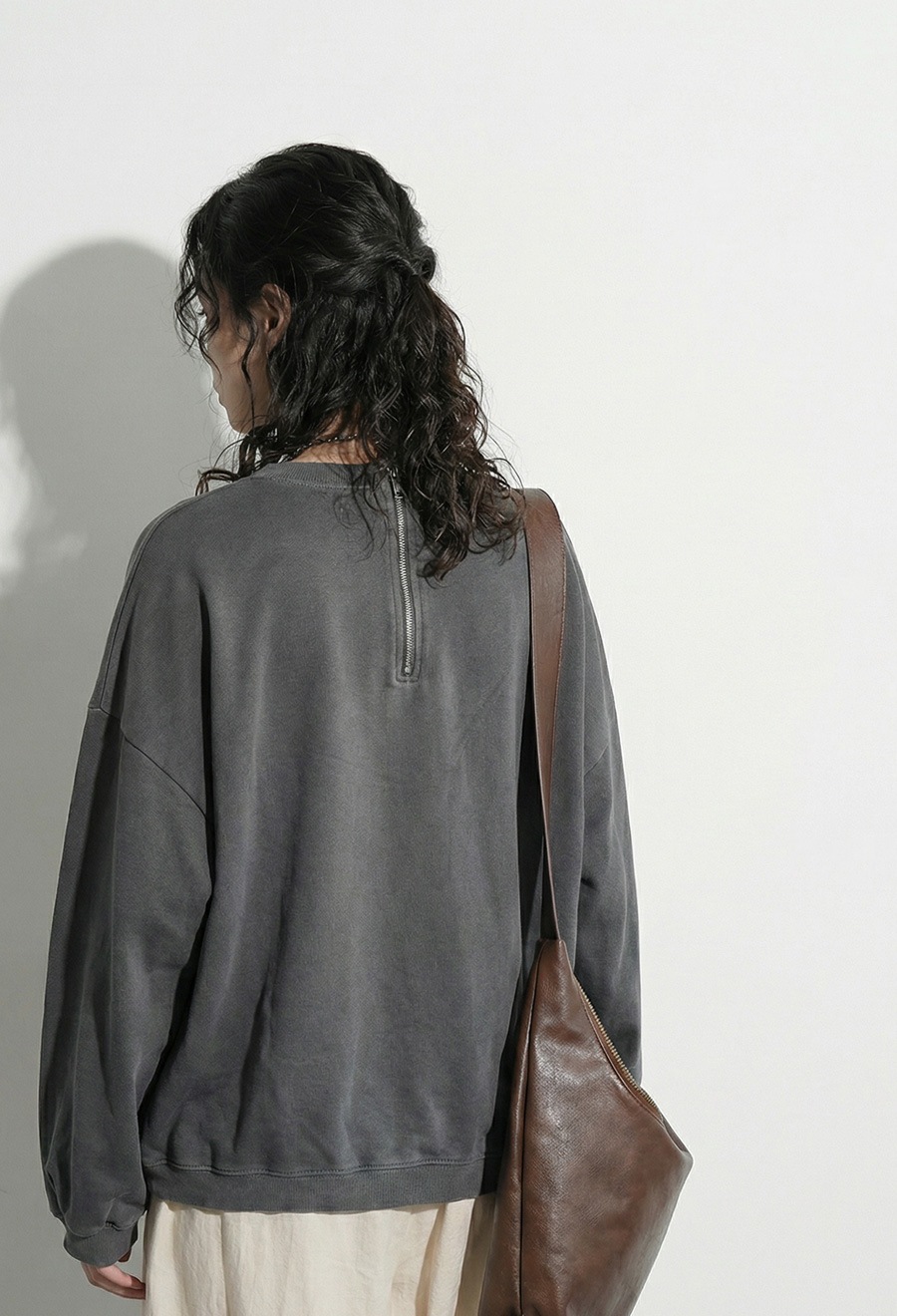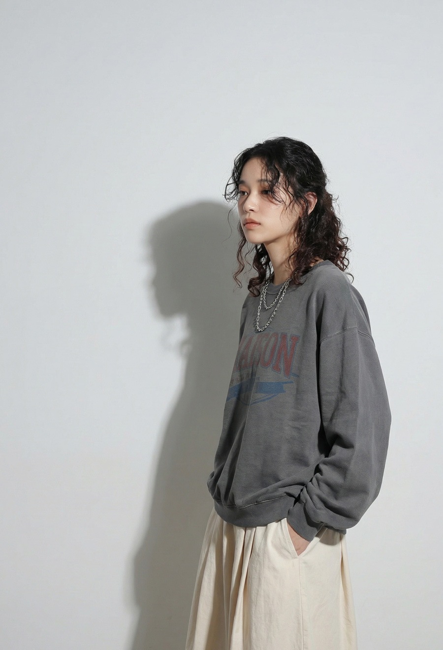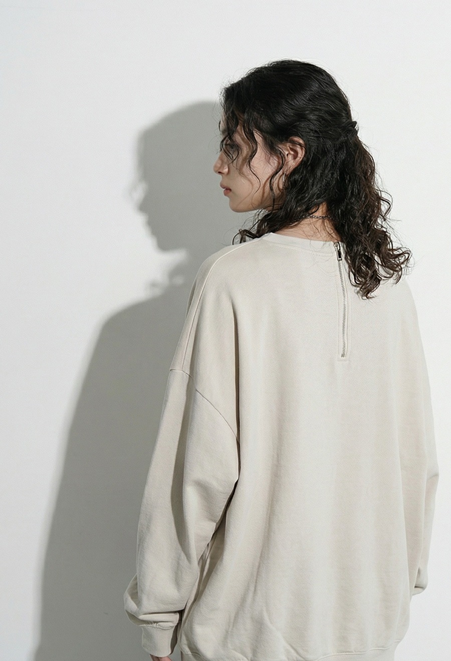 ラフな雰囲気のクルーネックに、ゆったりとしたドロップショルダーと長袖のデザインがカジュアルな抜け感をプラスします。
