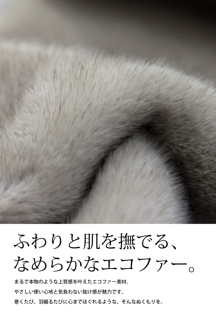 ふんわりとした肌触りが魅力のエコファー(フェイクファー)素材を贅沢に使用したストール。
