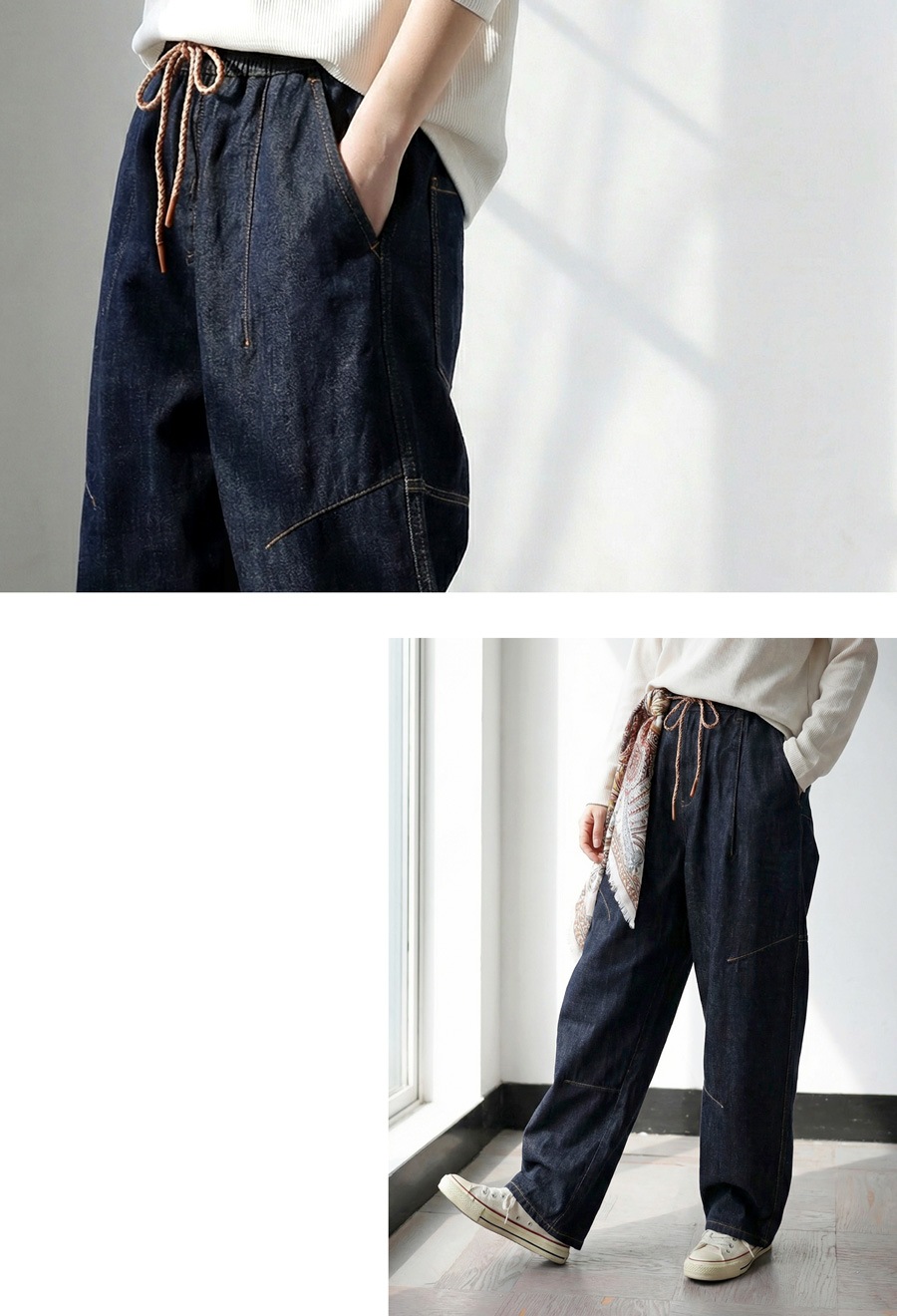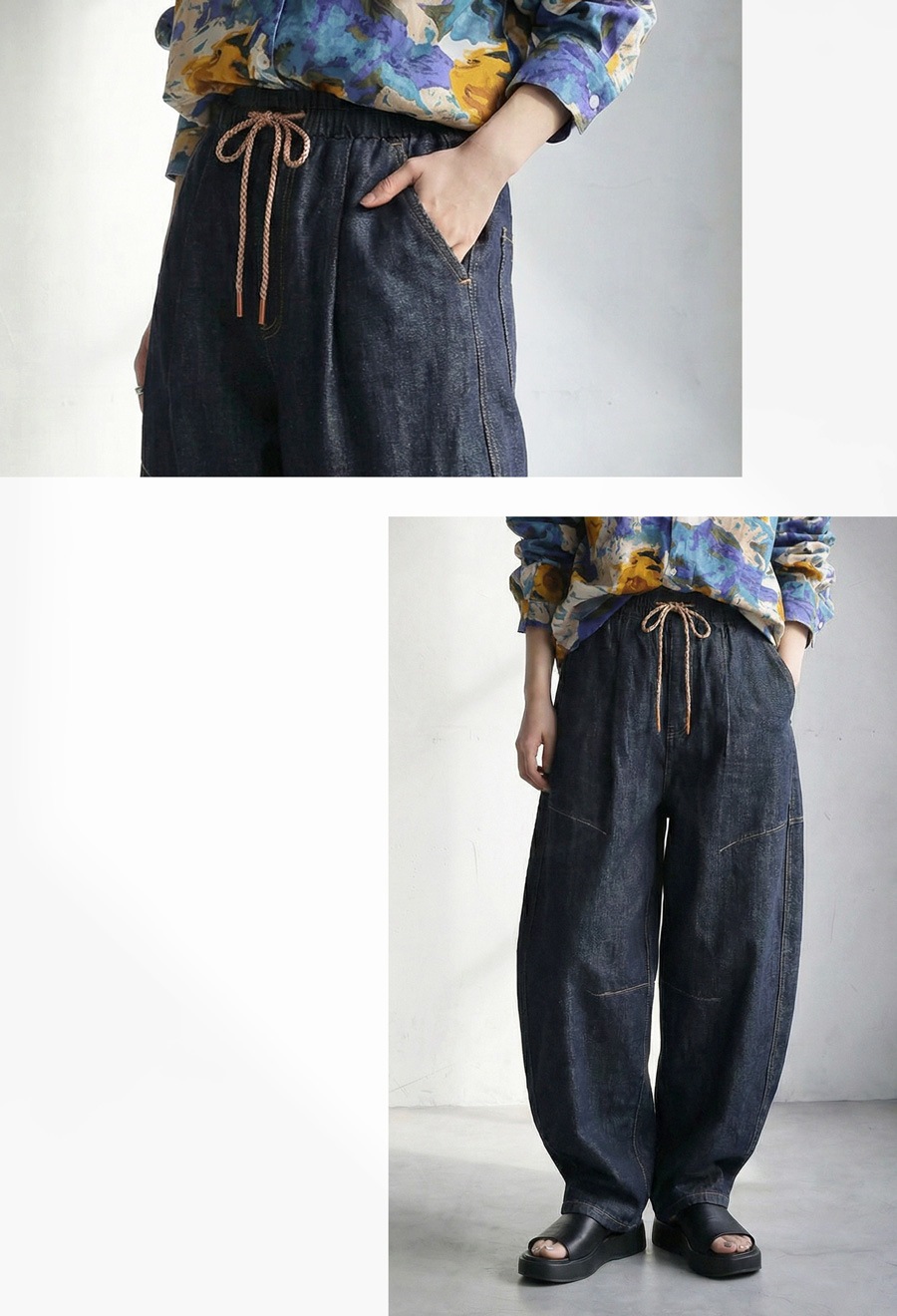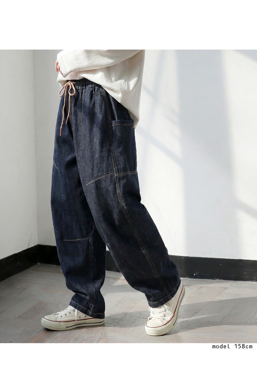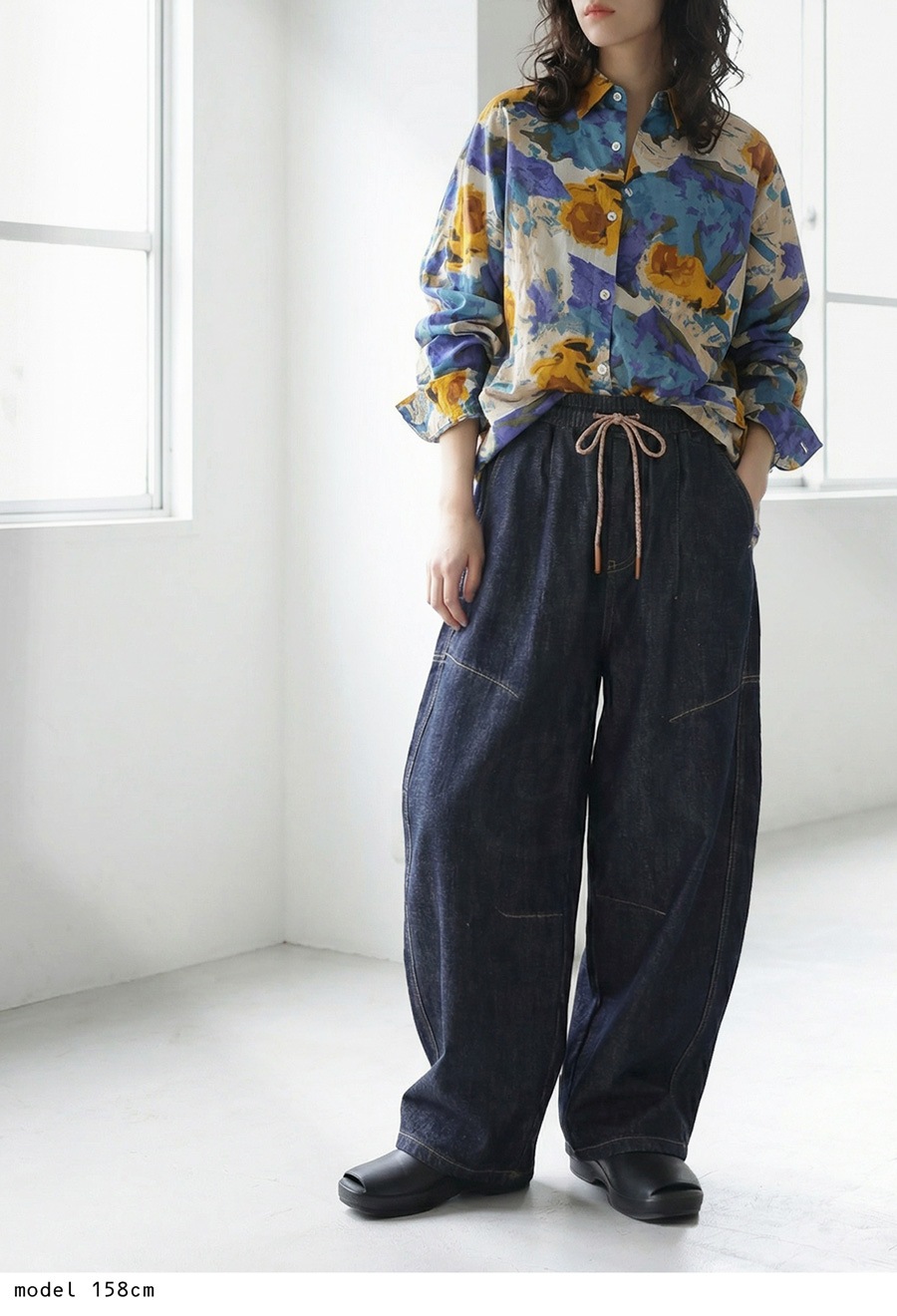 絶妙なカーブラインで立体感を引き出す、穿くだけで洒落感の出るゆったりデニムパンツです。