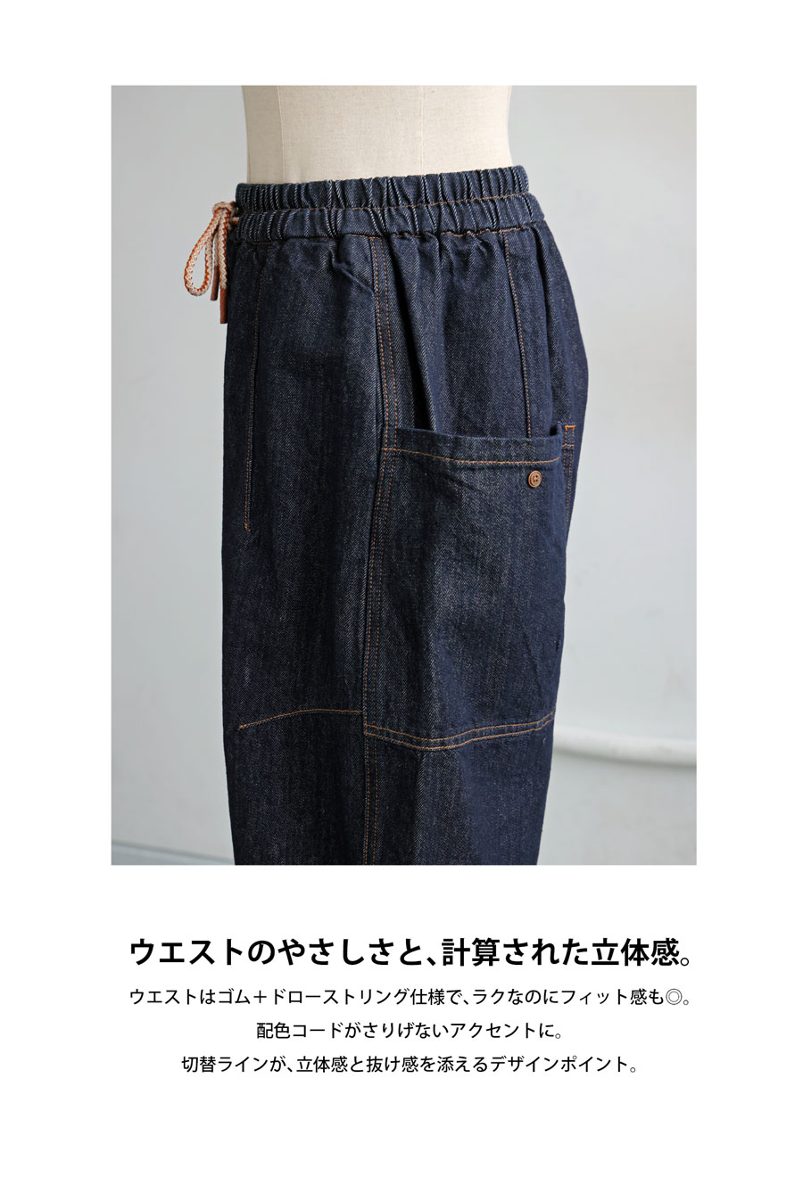 デニム レディース パンツ 立体カーブ ウエストゴム 送料無料・メール便不可