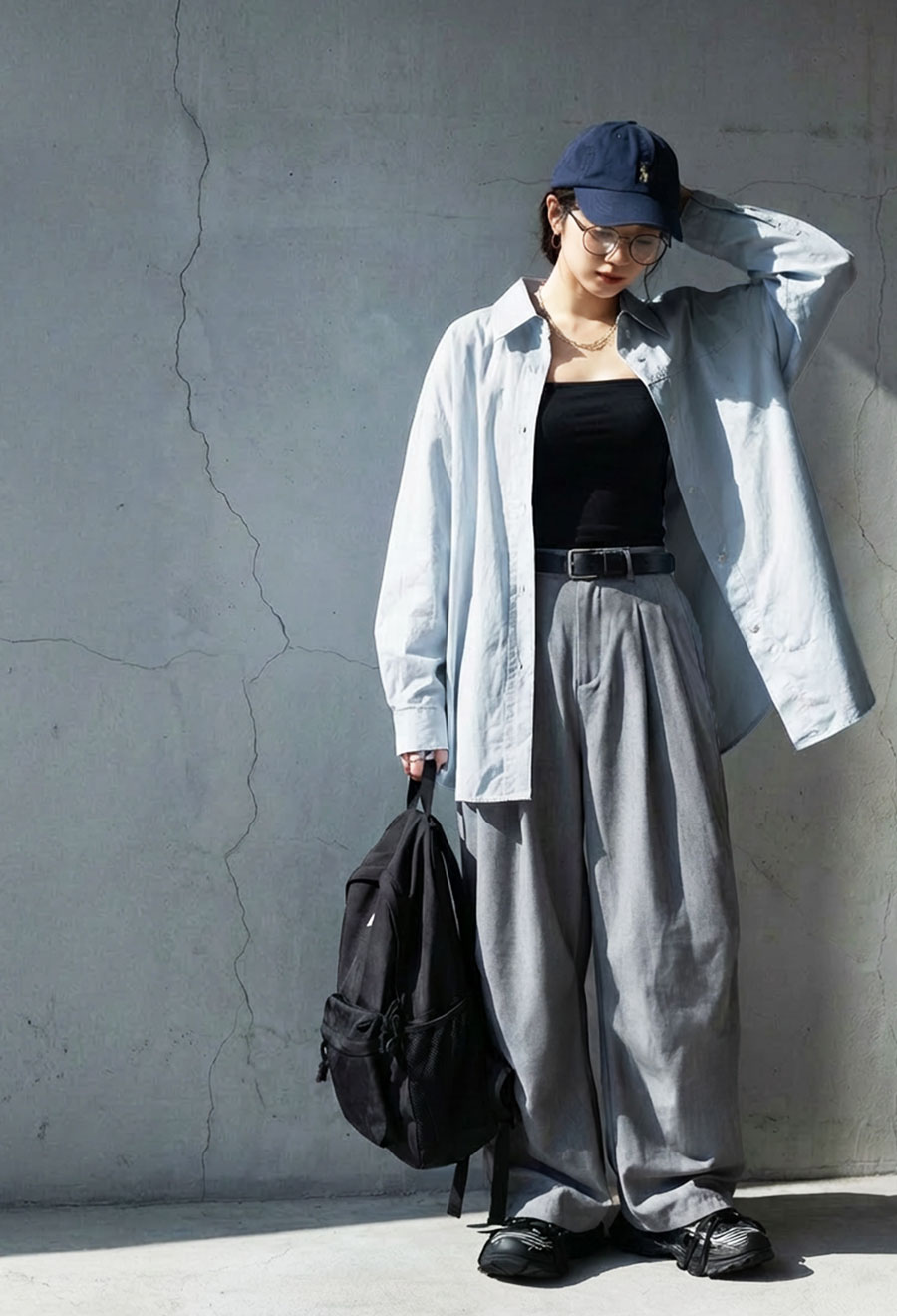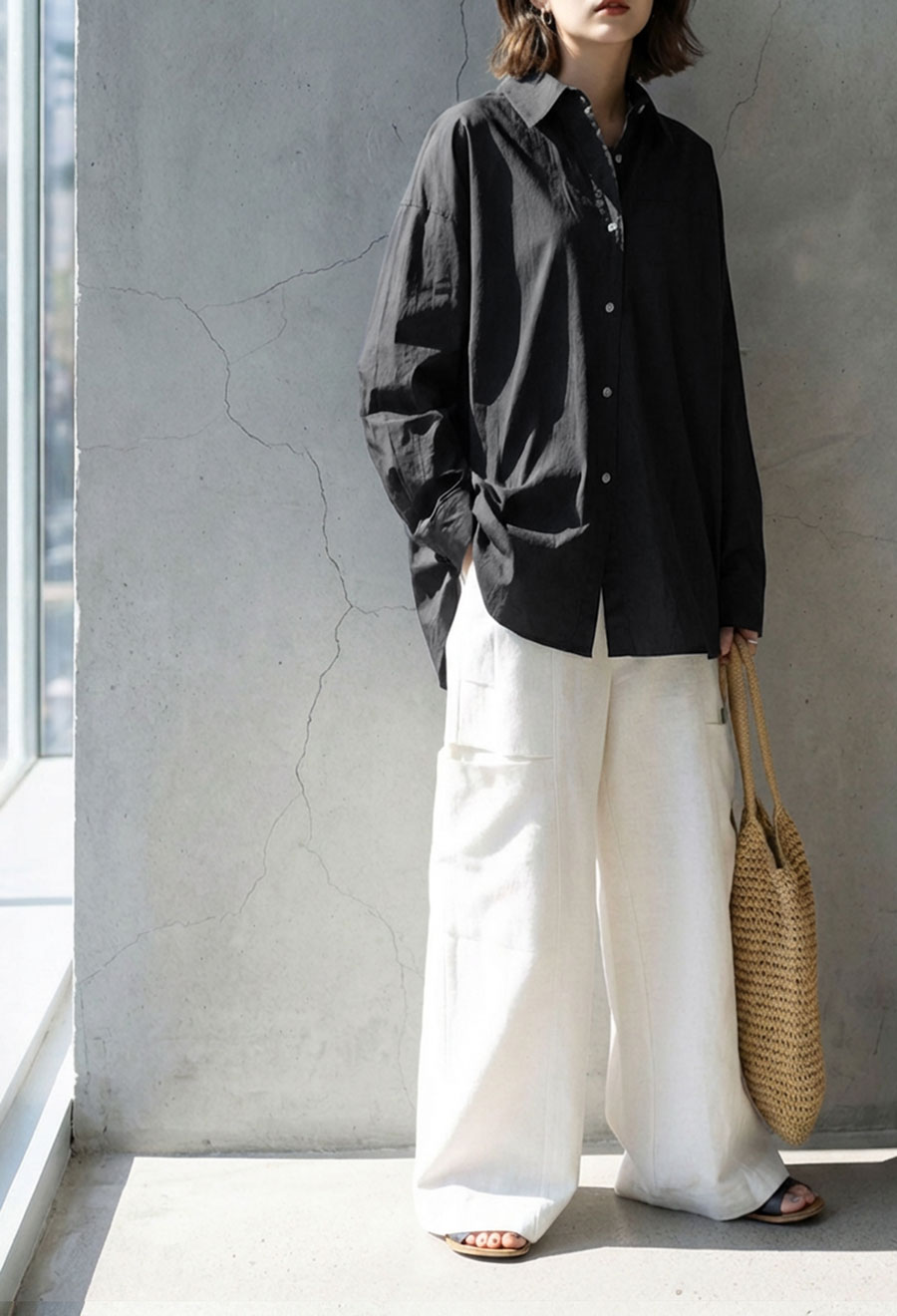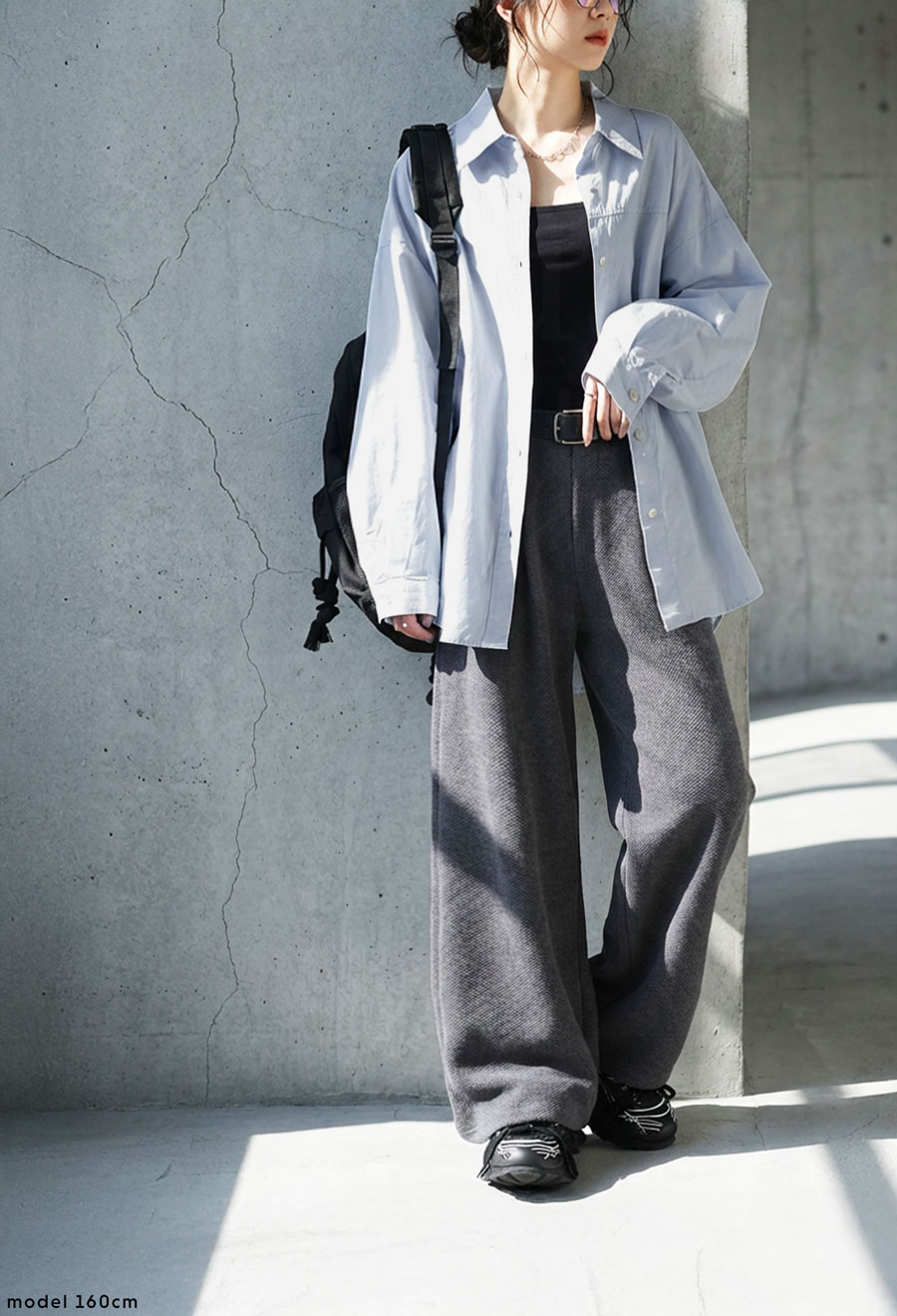 柄は無地のため合わせるアイテムを選ばず、デイリーからきちんとしたシーンまで幅広く活躍。