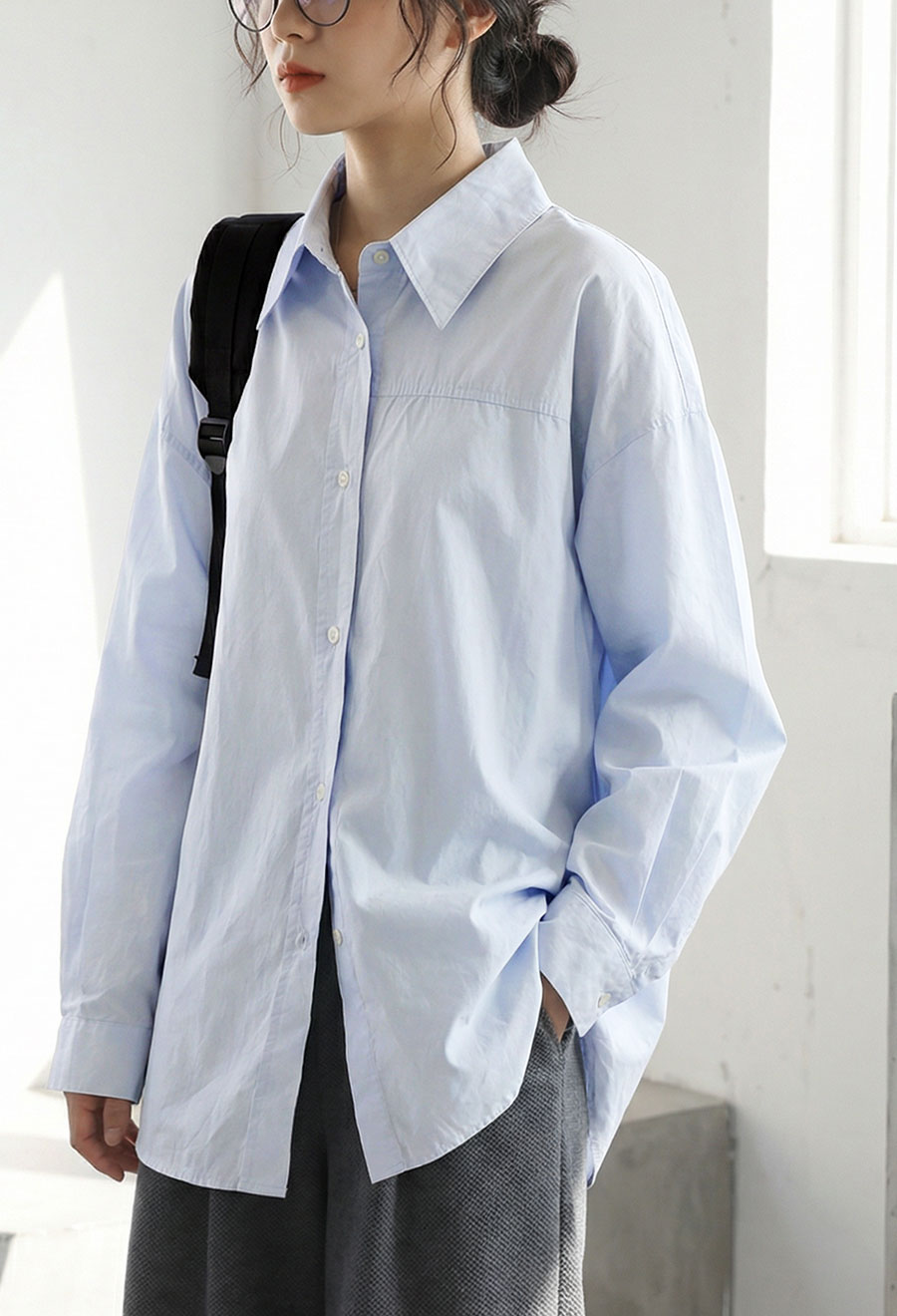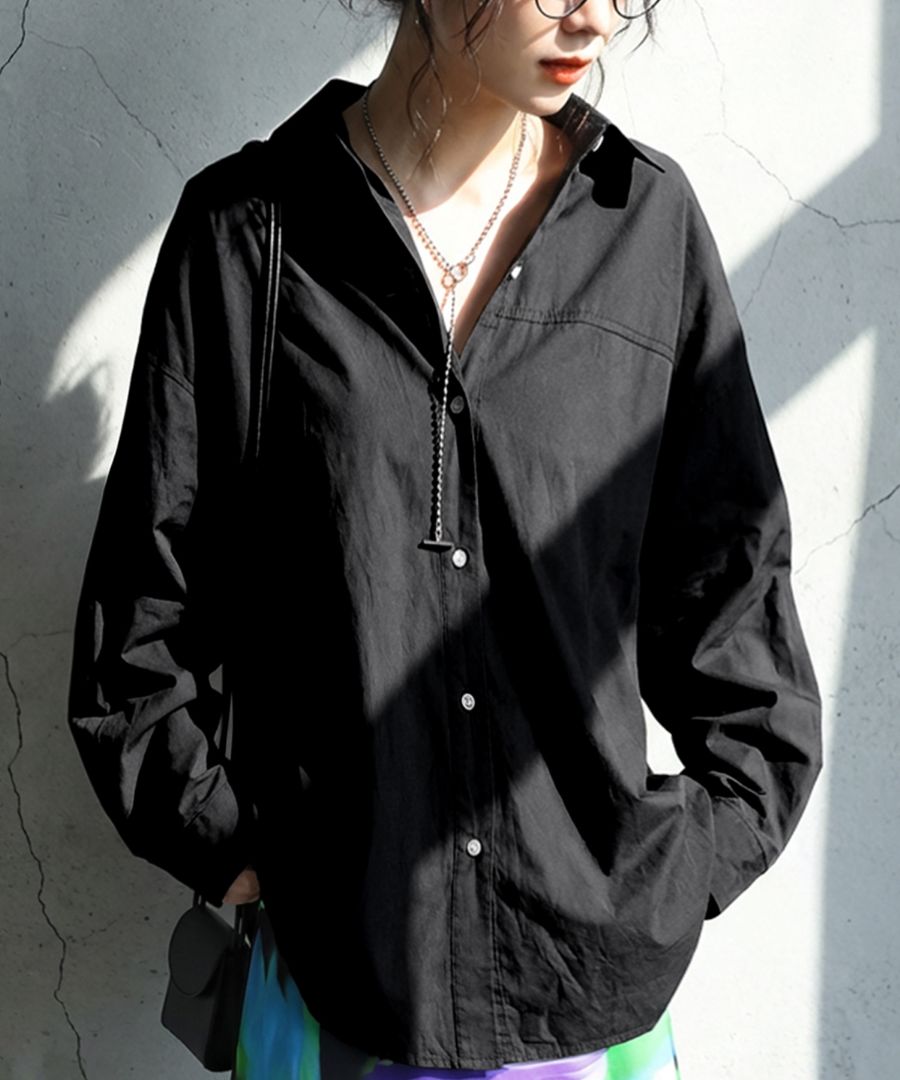 シンプルで着回しやすいデザインが魅力の長袖シャツ(ブラウス)です。
