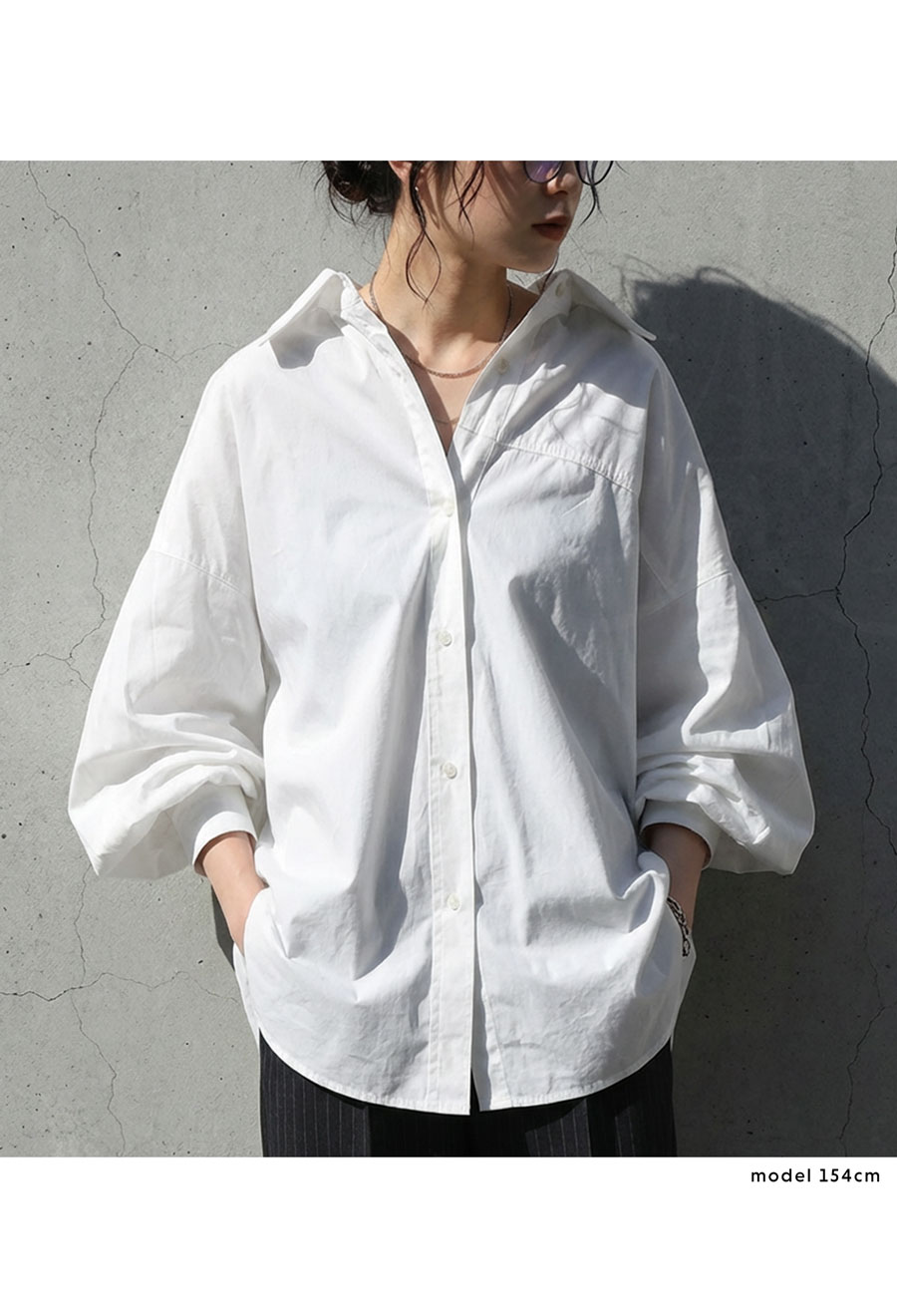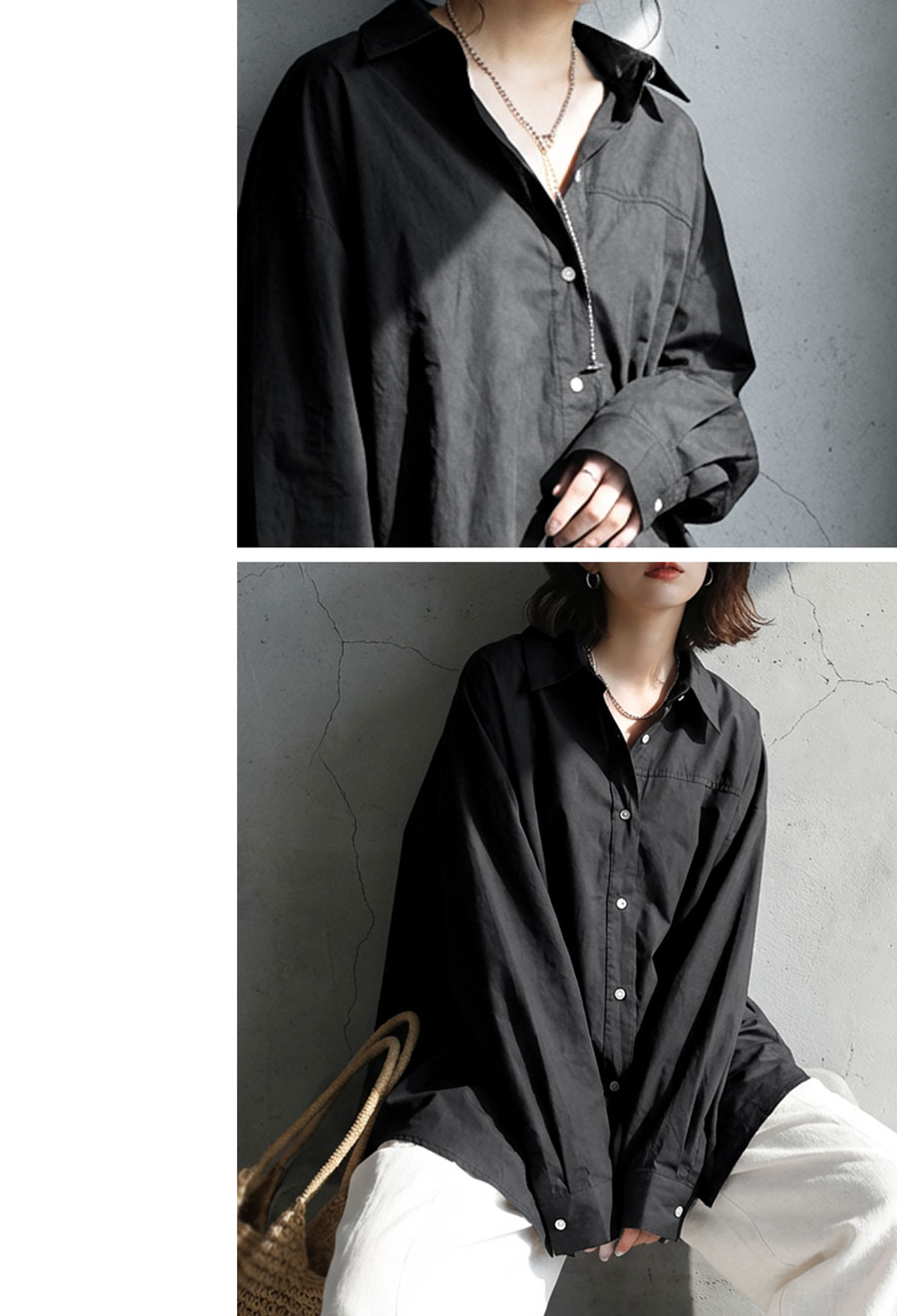 前開き仕様のため、ボタンを留めてトップスとしてはもちろん、羽織りとしても活躍します。