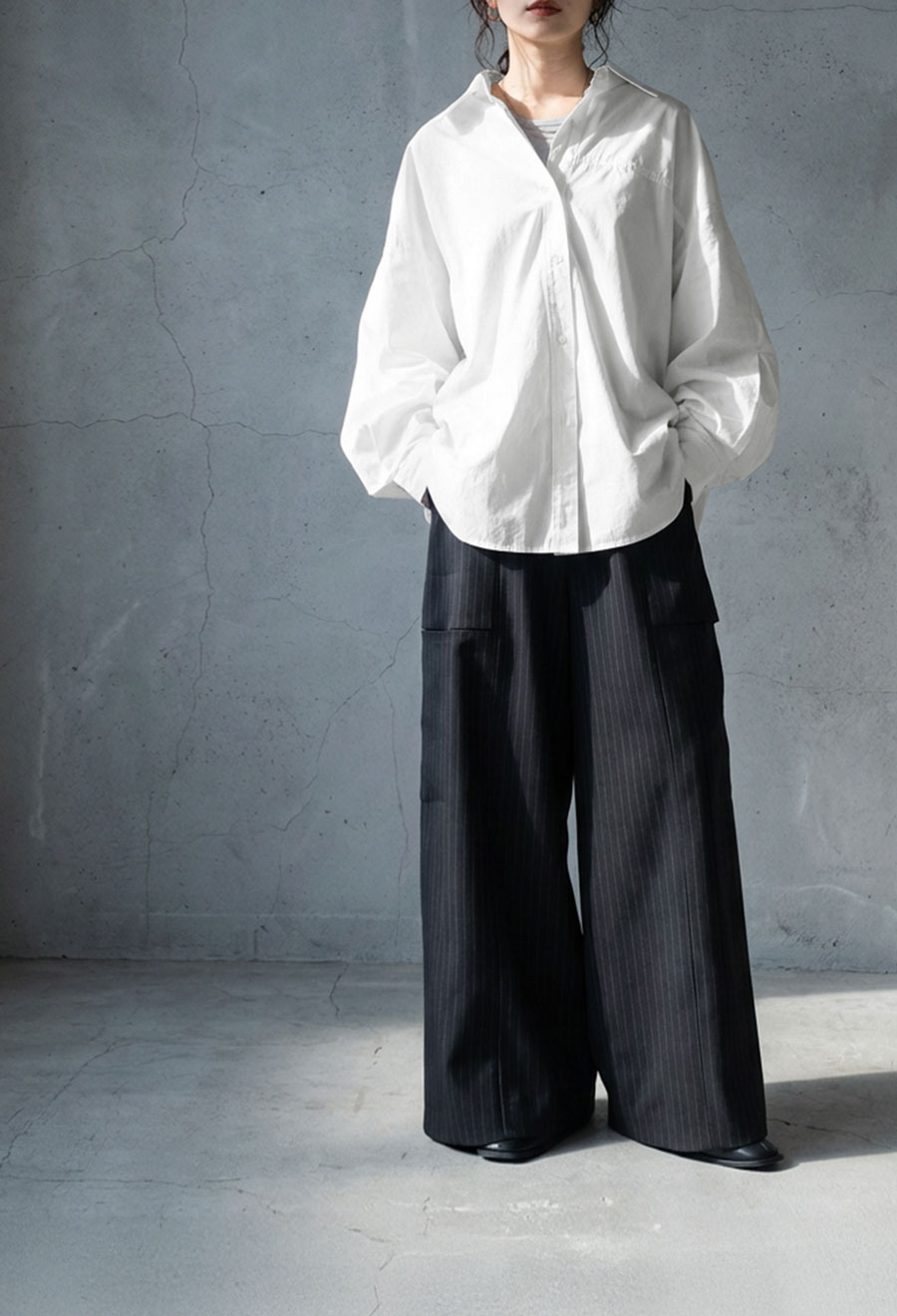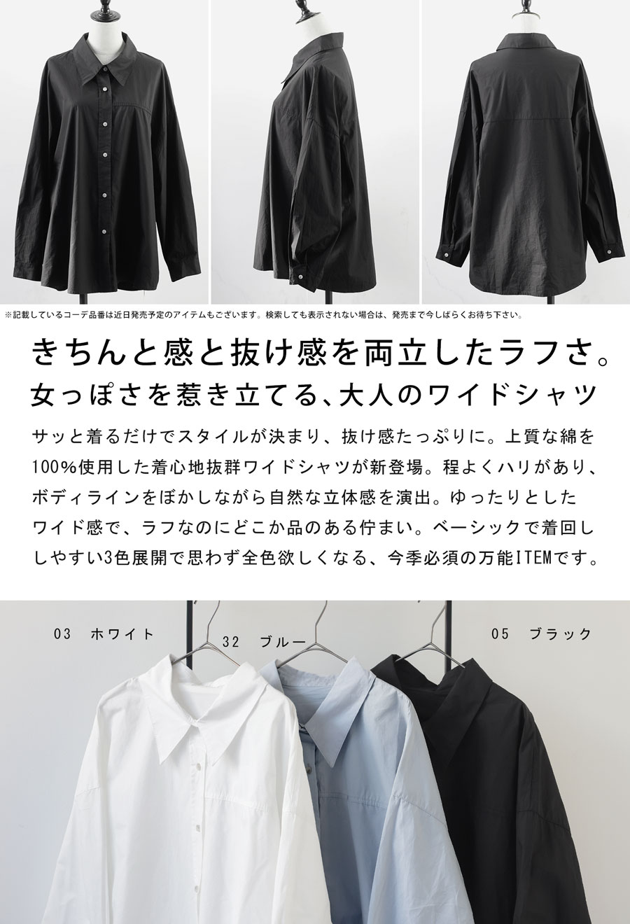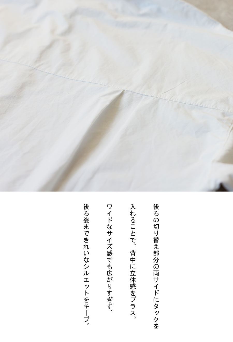身幅ワイドなオーバーサイズシルエットで、ゆったりとした着心地を叶えながら自然に体型カバー。