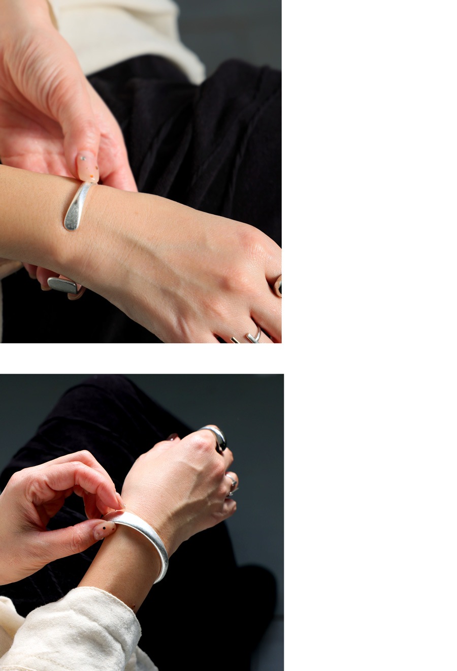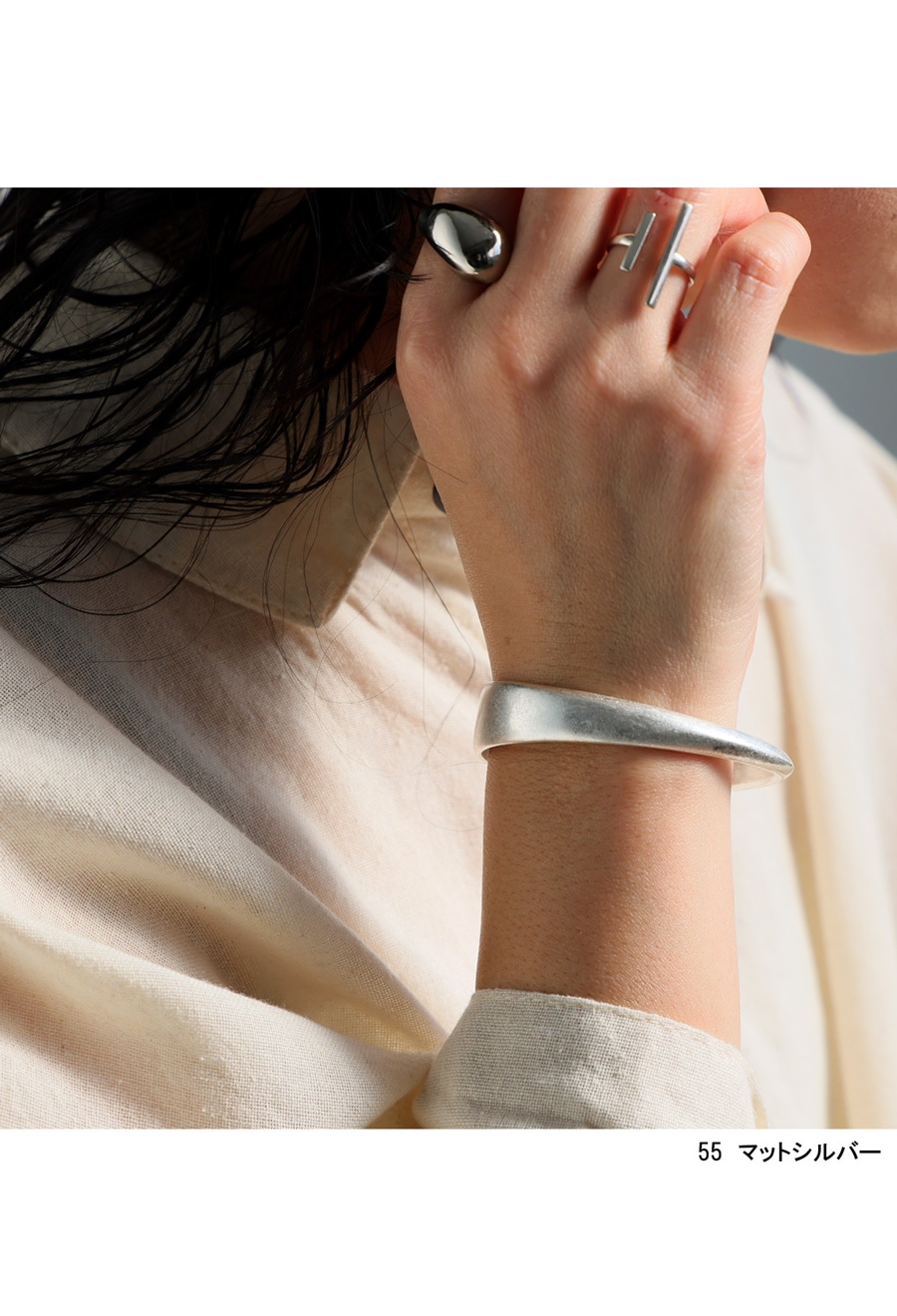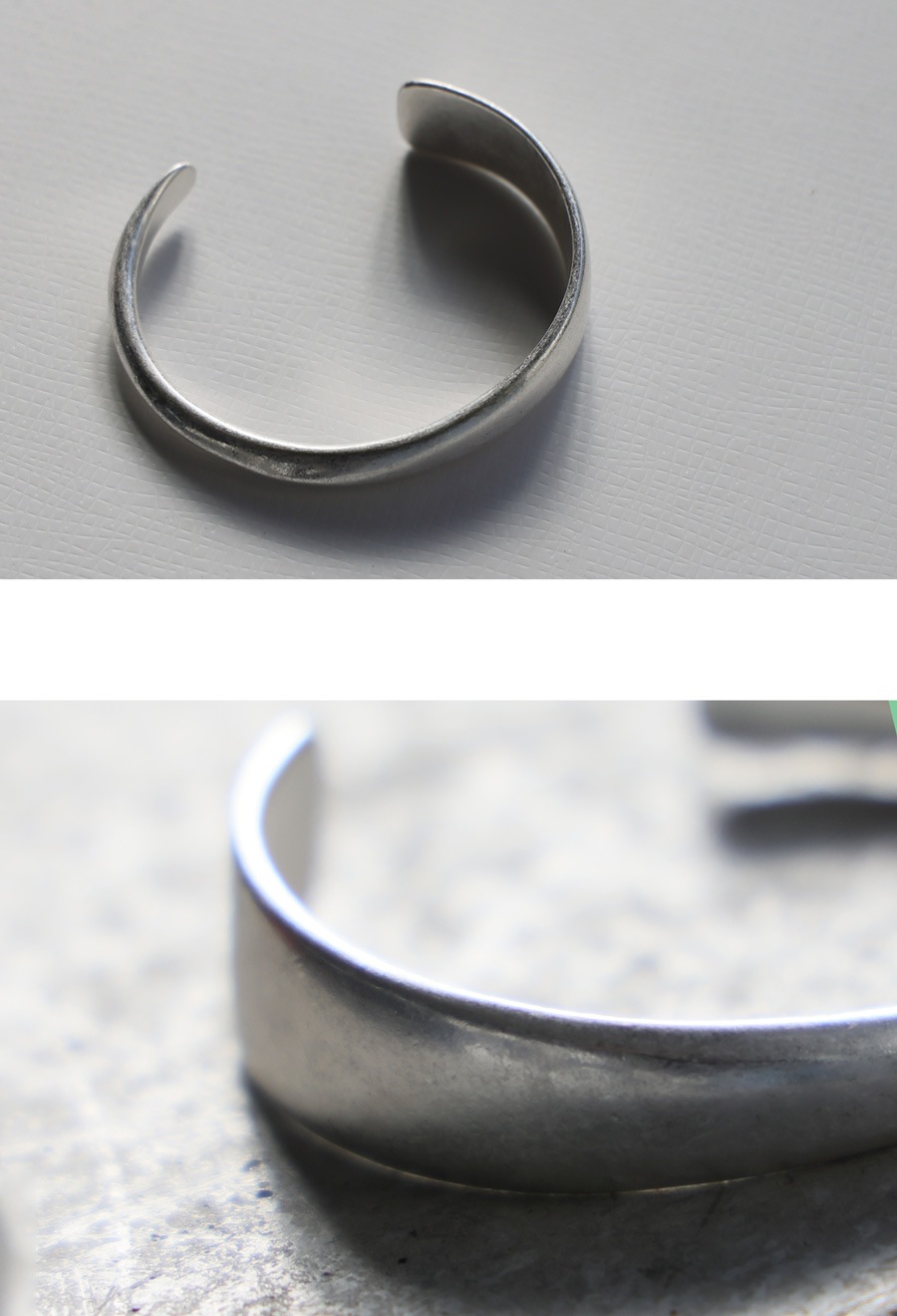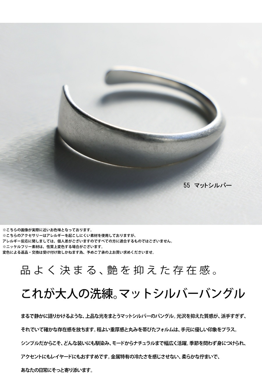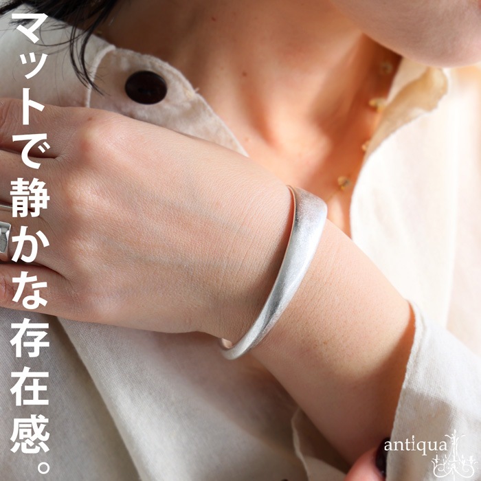 落ち着いた光沢感が美しい、マットシルバー調のバングルです。