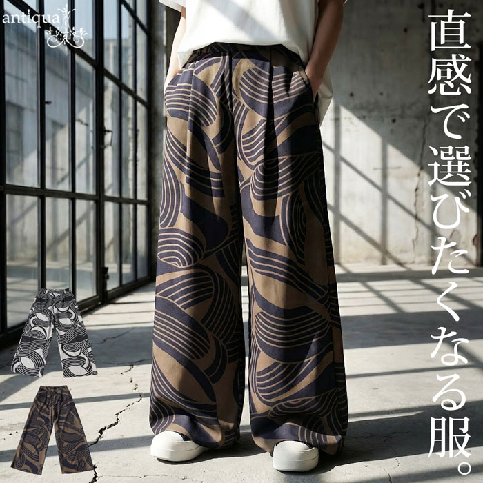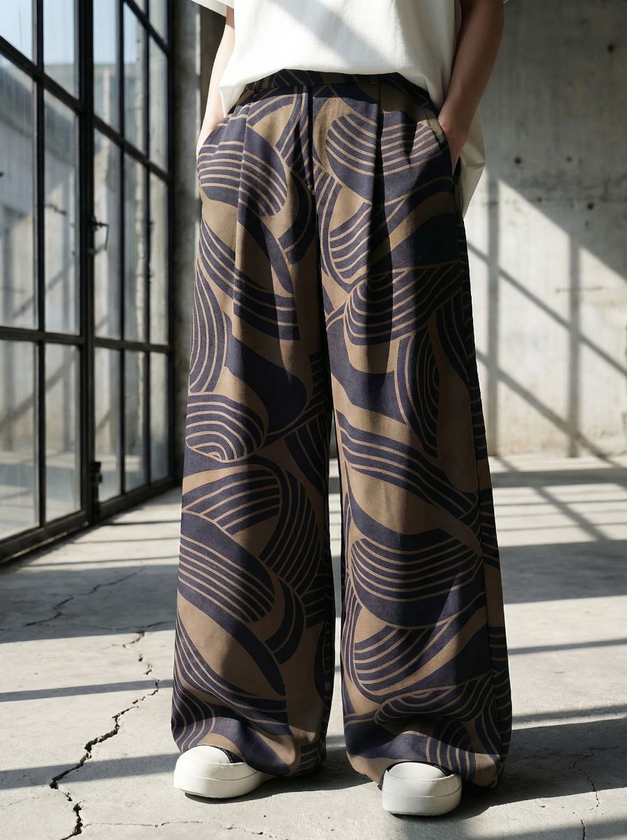 大胆な幾何学柄が視線を惹きつける、主役級のワイドパンツが登場しました。