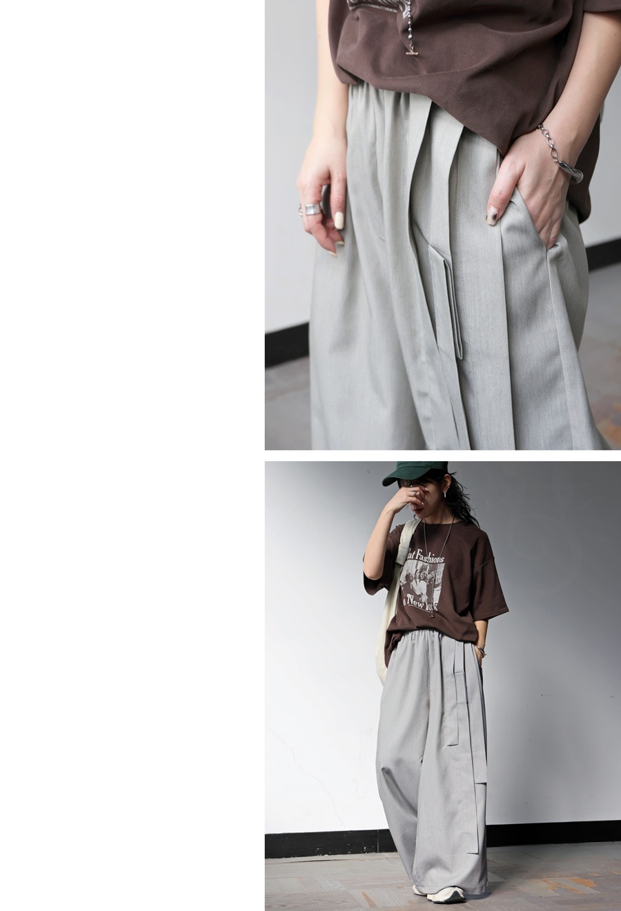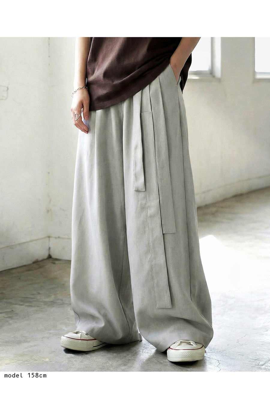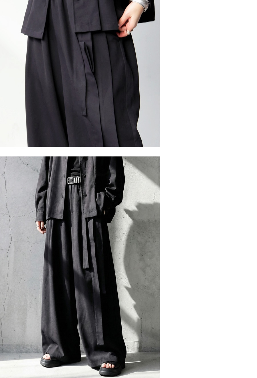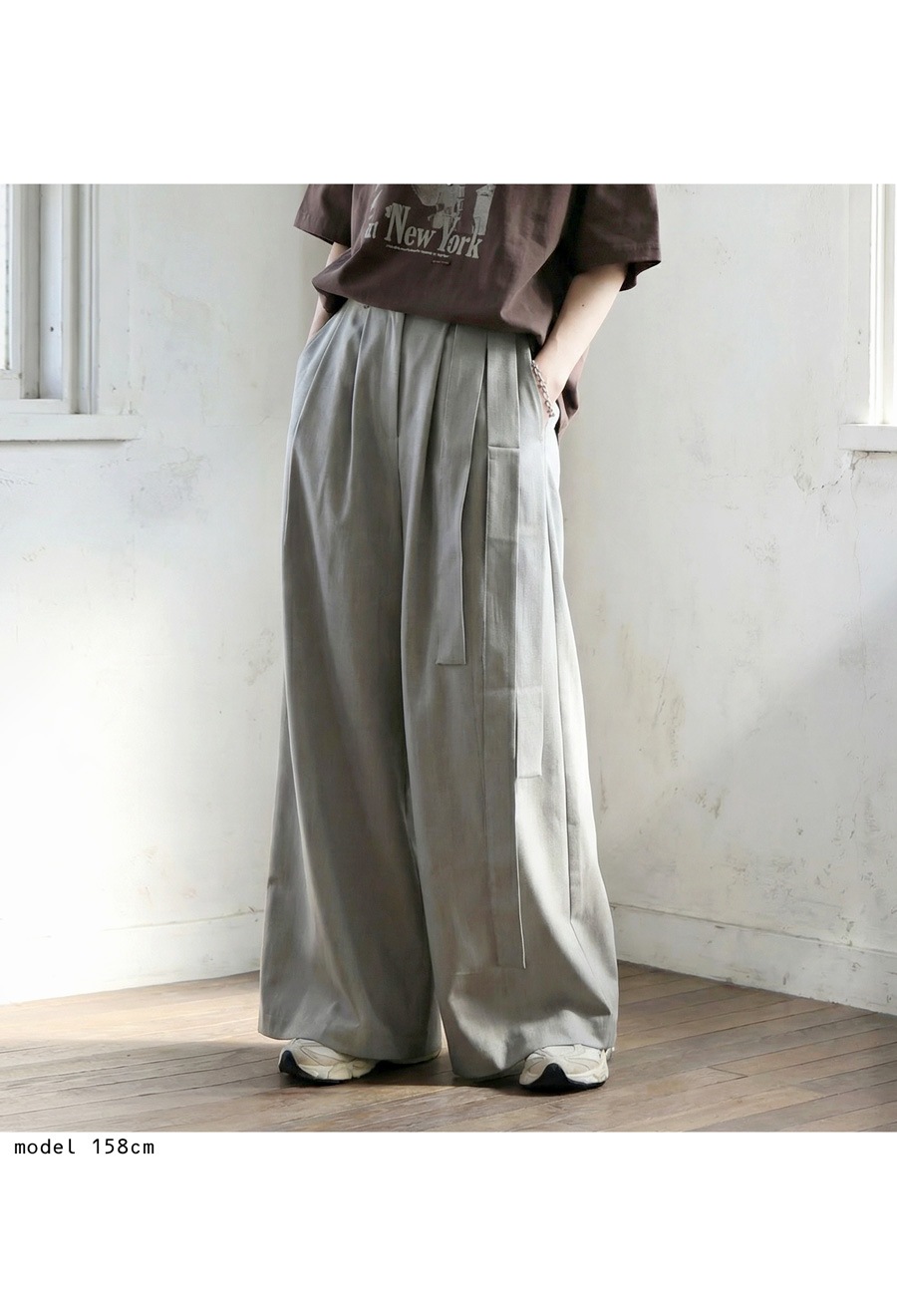 丈感はロング丈で、脚長効果が期待できるストレートなワイドシルエットが魅力です。