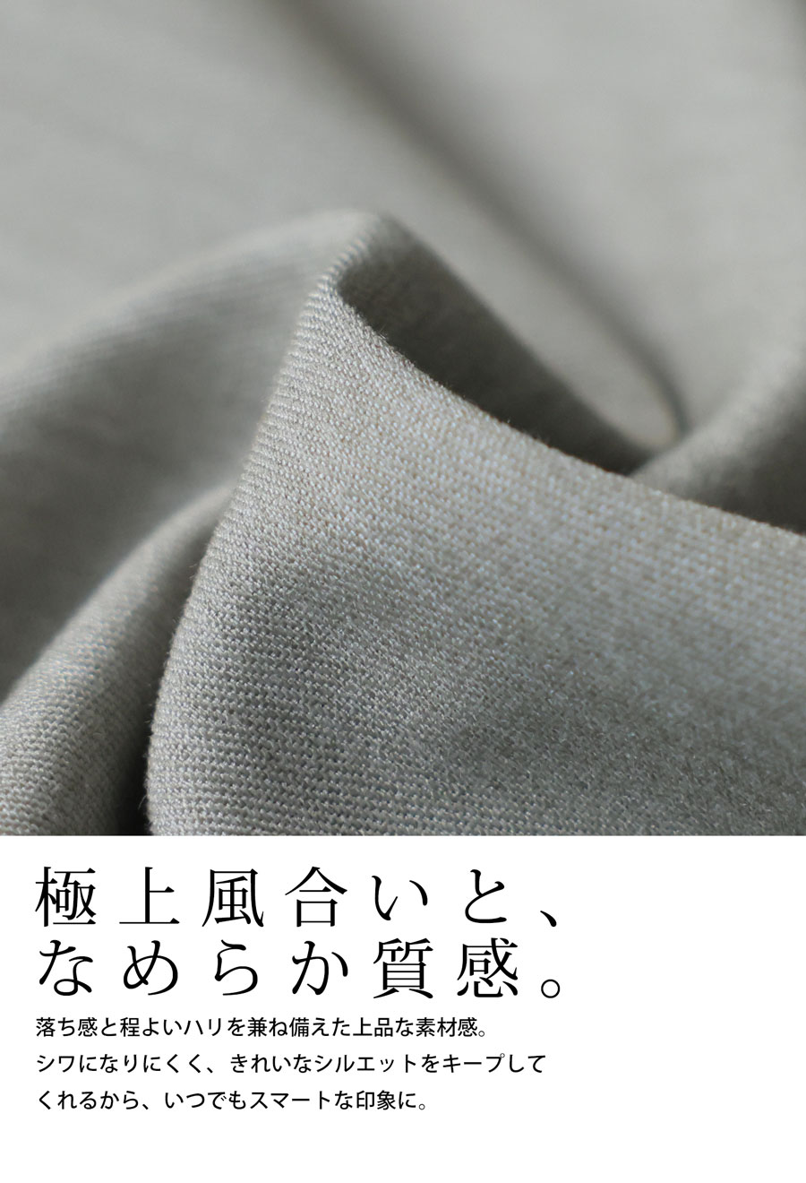 落ち感のあるなめらかなポリエステル混素材で、動くたびに上品な揺れ感が生まれます。