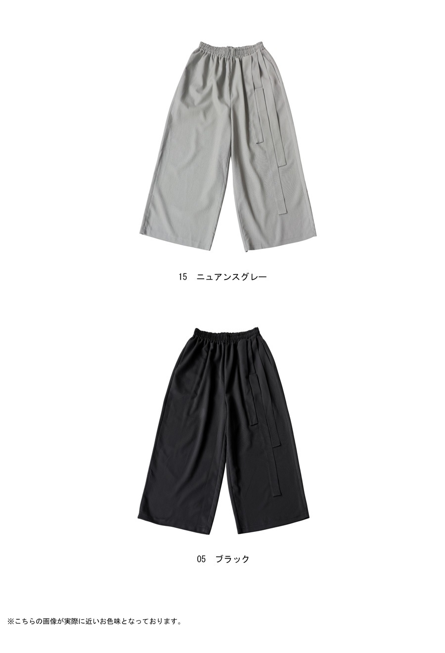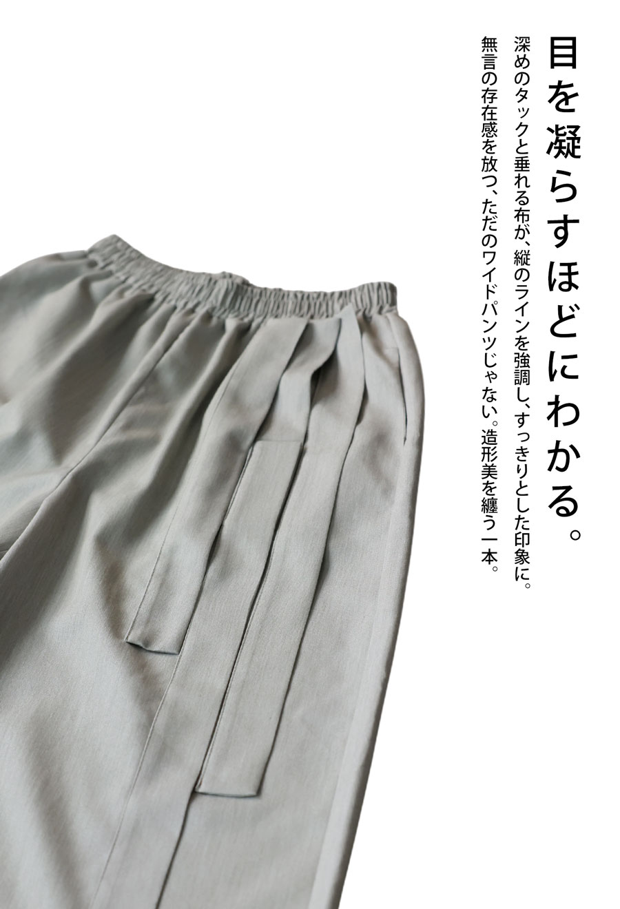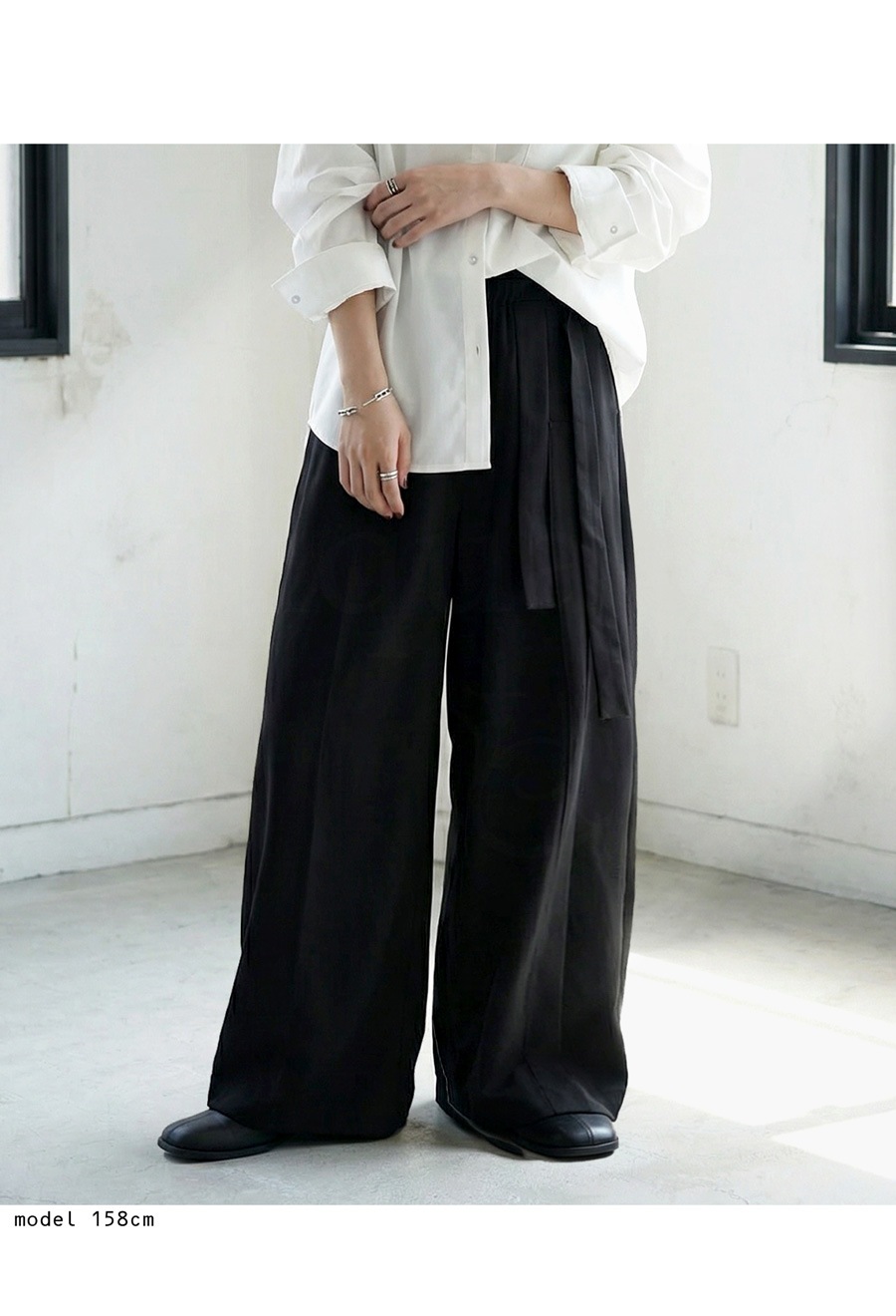 立体タックが陰影を生み出すアシンメトリーデザインのワイドパンツです。