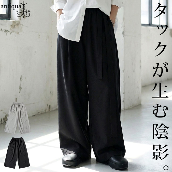 アシンメトリー ワイドパンツ レディース ロング タック 送料無料・(100)メール便可