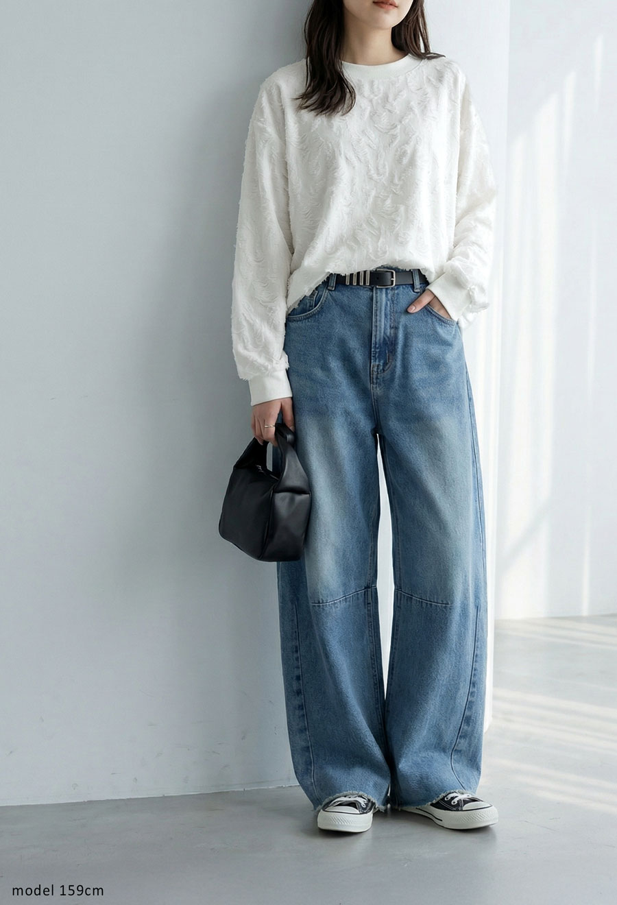 リブ仕様の袖丈と裾でメリハリがあり、ゆったりシルエットでもだらしなく見えないのが嬉しいポイントです。