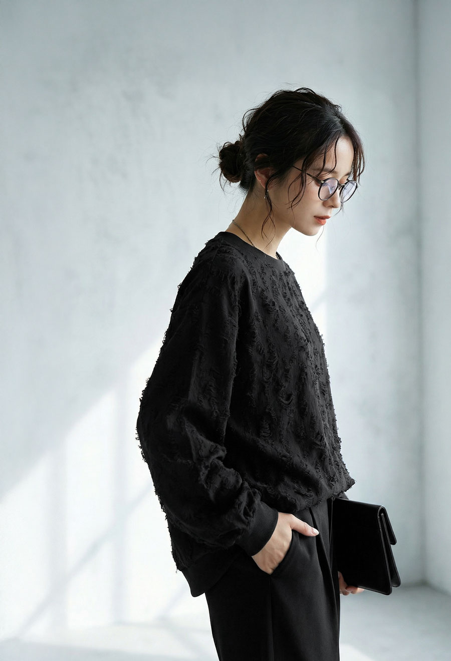 柔らかな表情と動きのある質感がこなれ感をプラスし、一枚でも重ね着でも映える存在感。