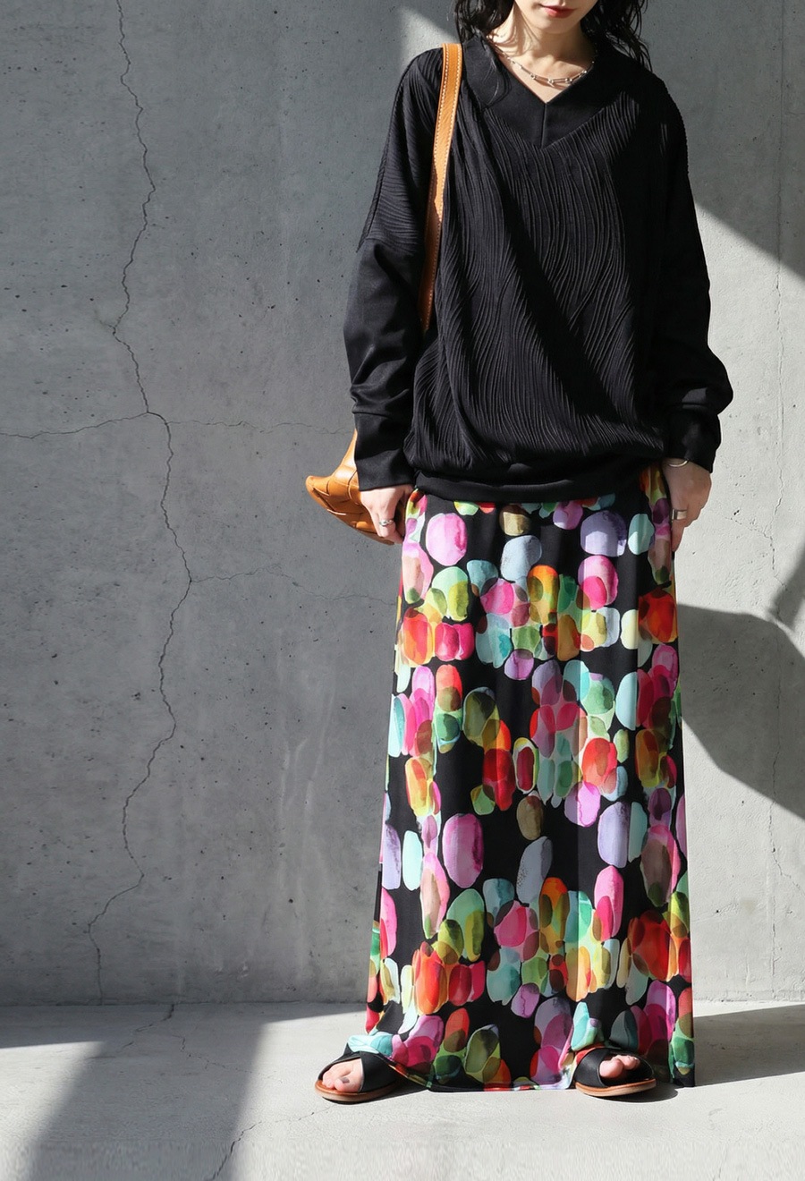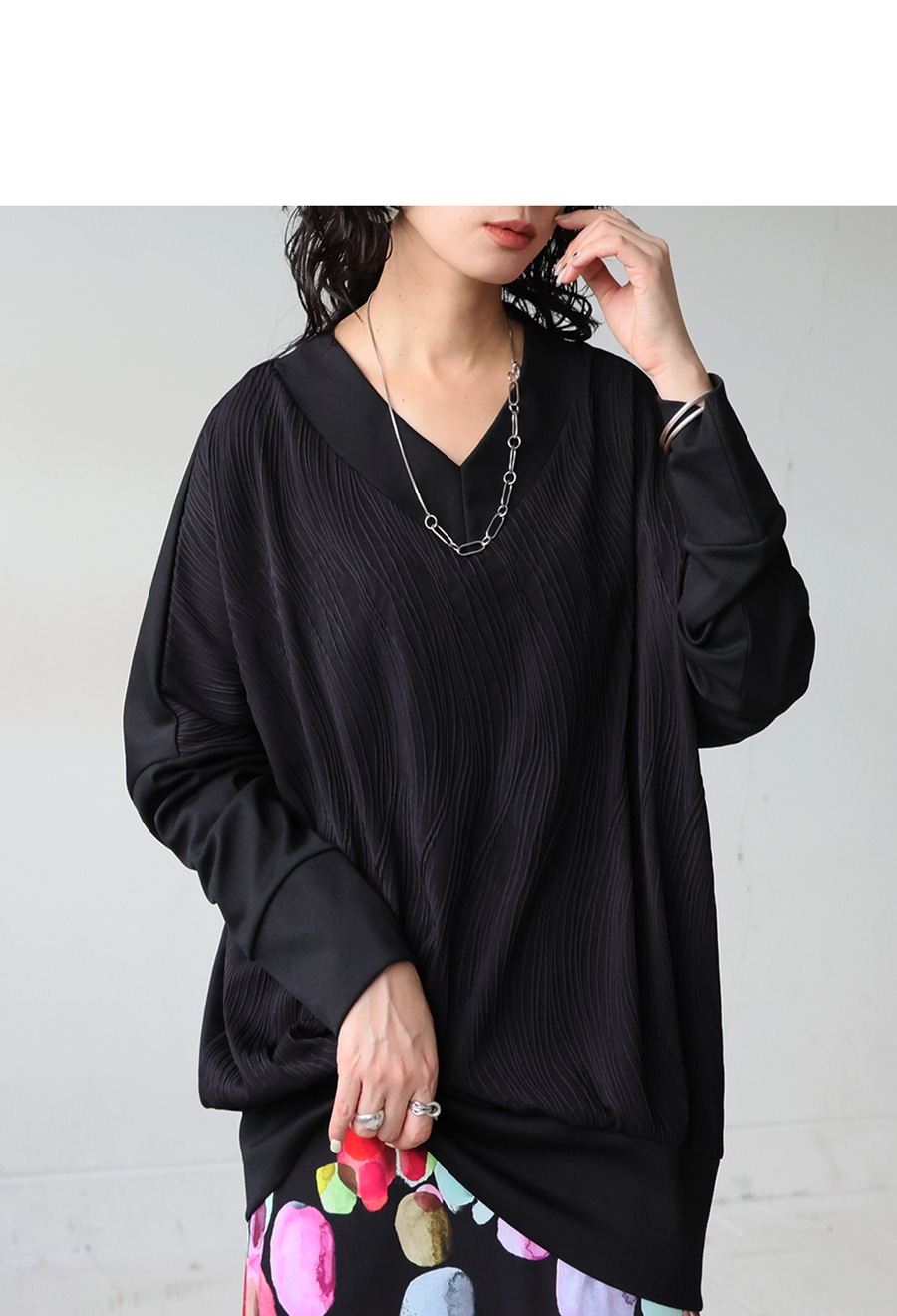 本体はゆったりとしたドルマンシルエットで、体型カバー力も抜群。