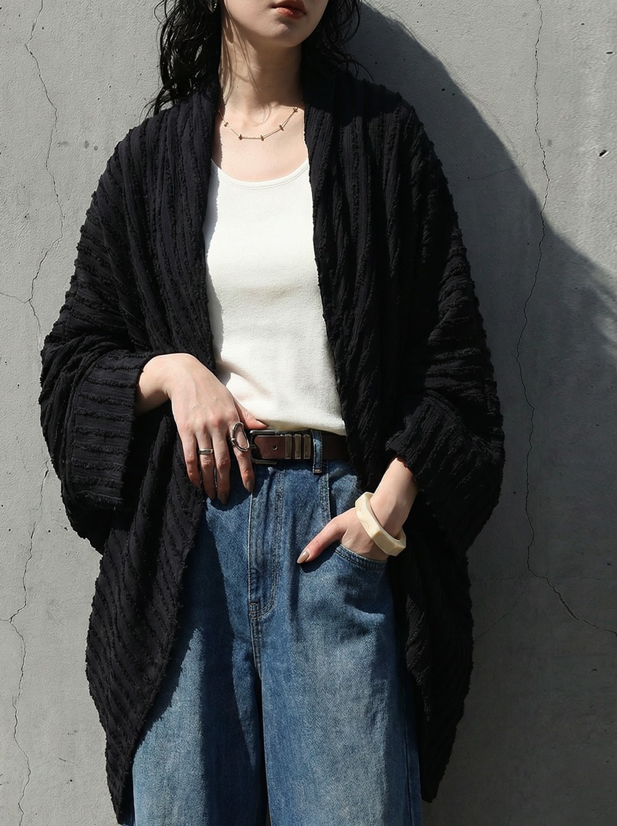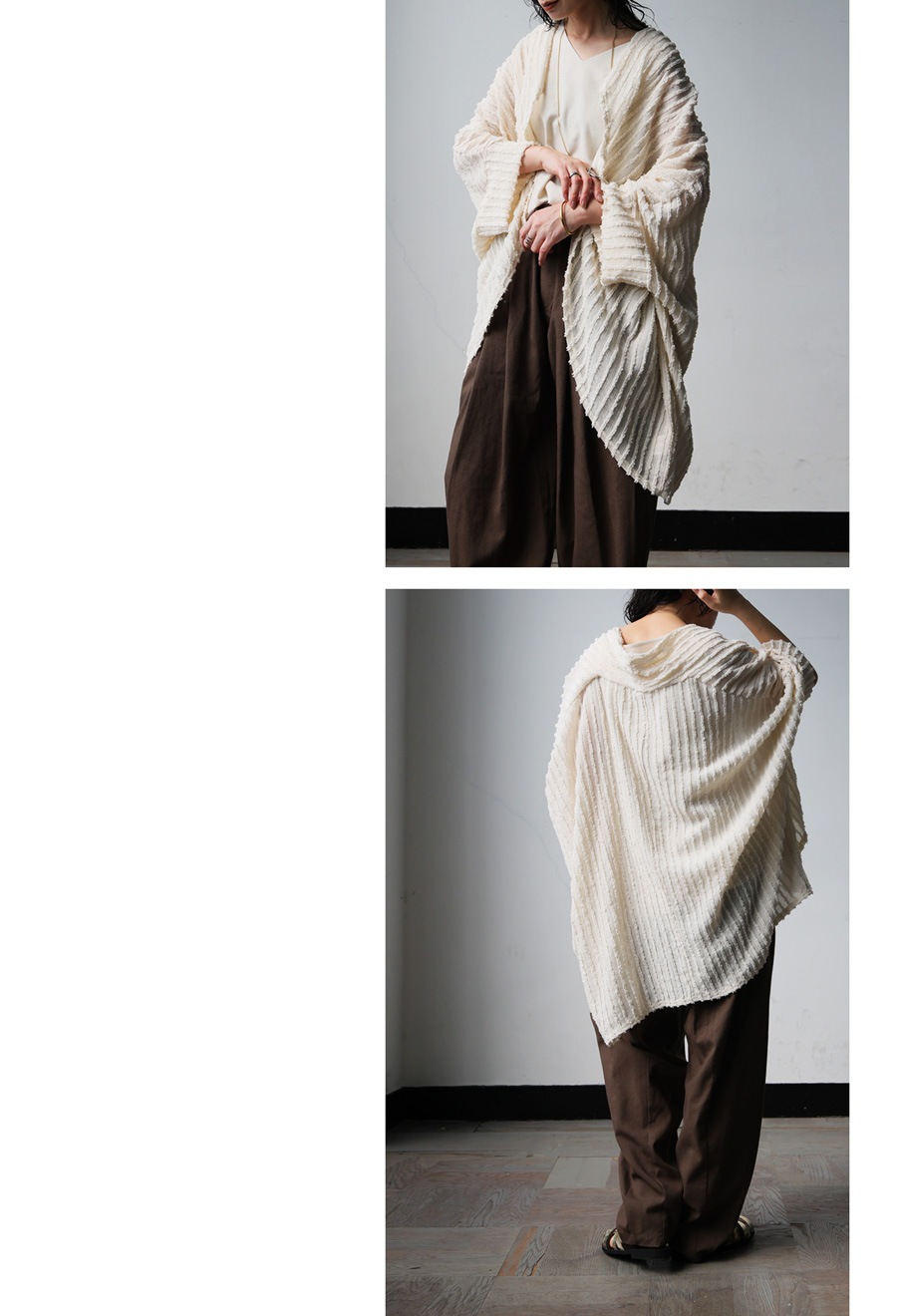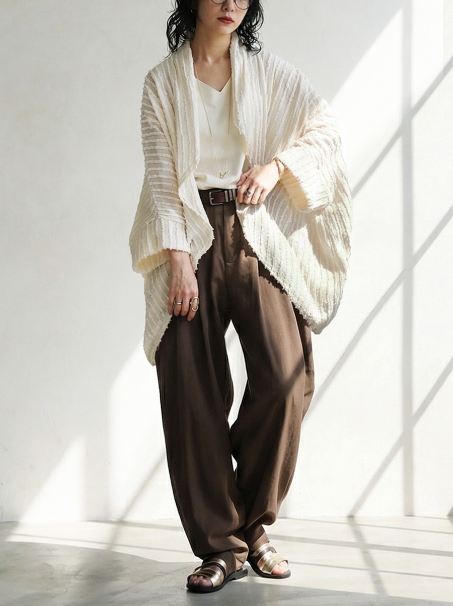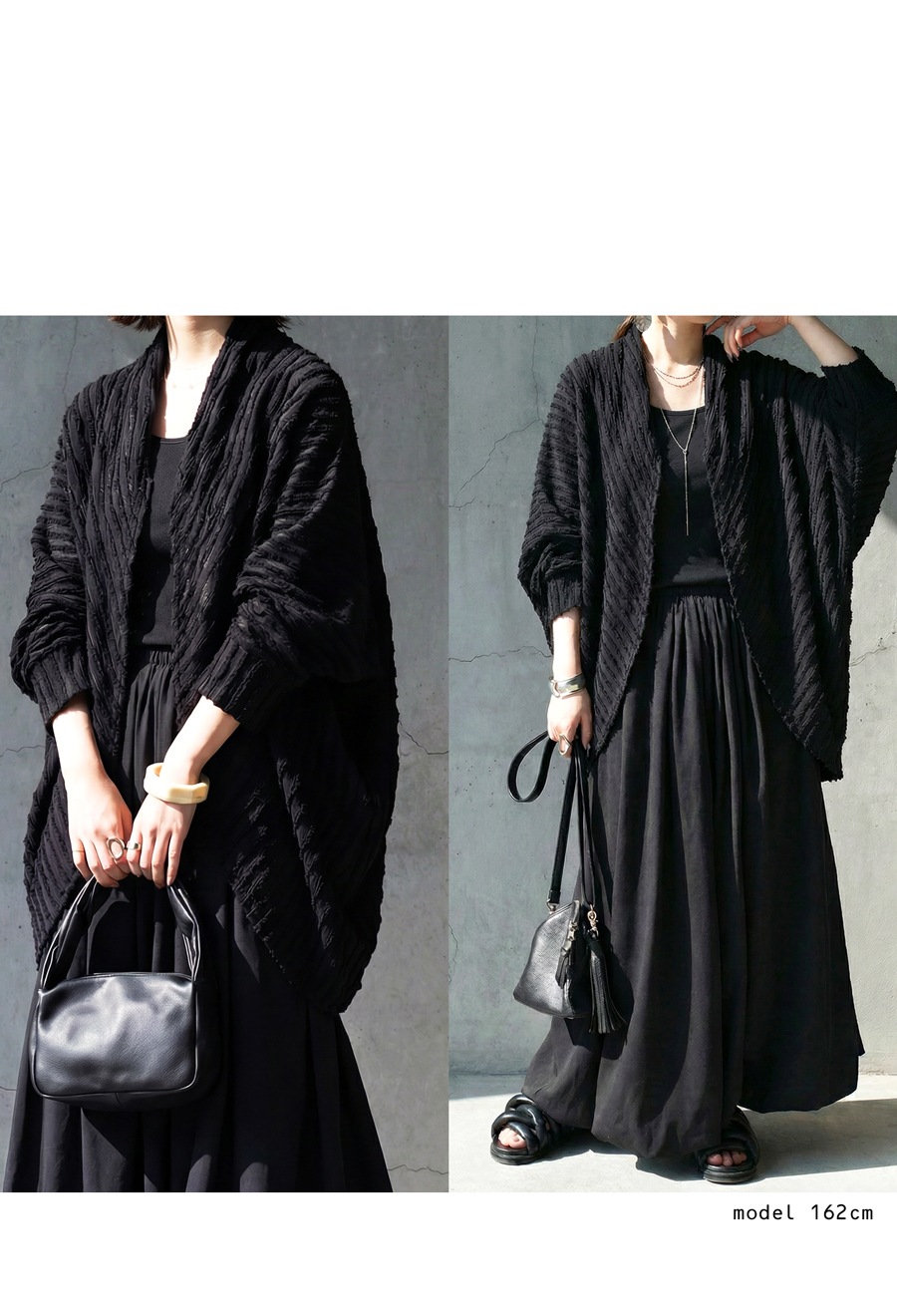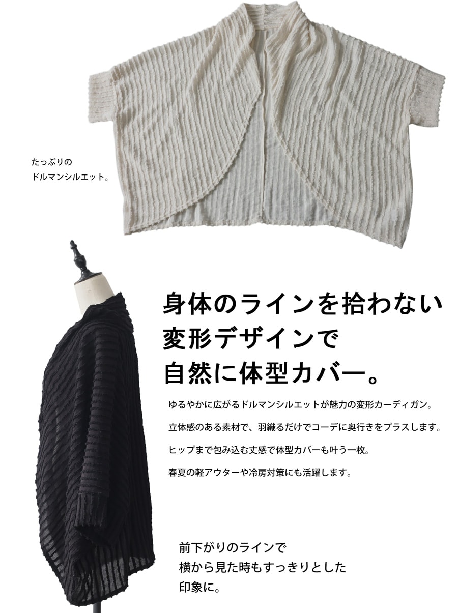 楊柳風の凹凸が美しいリネン混素材を使用した、軽やかなトップス感覚で纏えるドルマンカーディガンです。